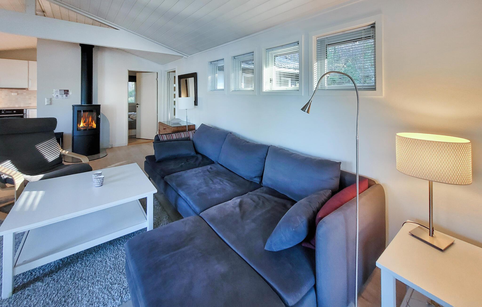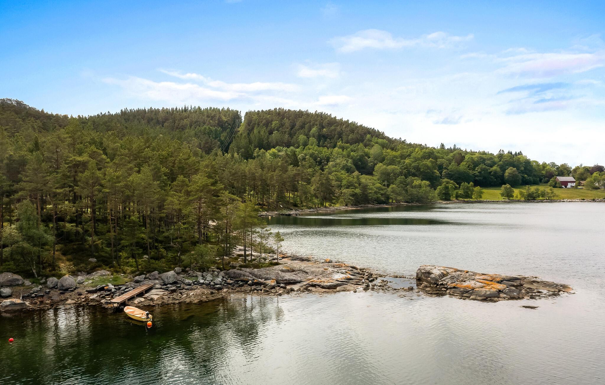 Hvis I er på udkig efter den perfekte base til en familieferie midt i naturen, er I kommet til det helt rette sted. Dette attraktive hus ligger lige ved fjorden, og udsigten er allelunde fremragende. Indretningen fremtræder lyst og indbydende med en åben planløsning, der forener køkken og stue og gør det muligt for kokkene at følge med i brætspillene ved spisebordet. Efter aftensmaden kan I tænde op i brændeovnen, slå mave i sofaerne og nyde den gode udsigt, mens I hiver brætspillene frem eller smider en god film på tv'et.