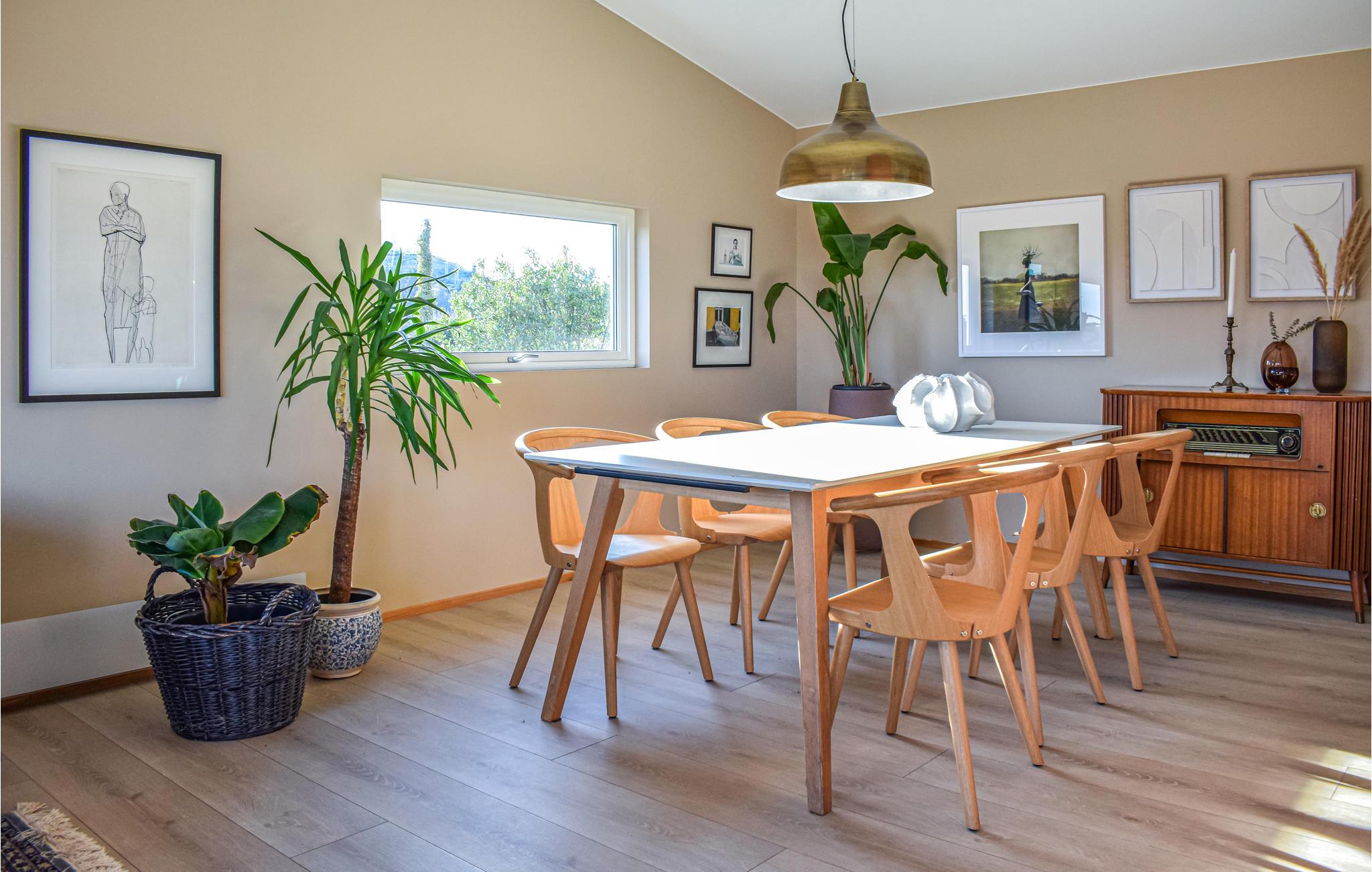Trænger I til en ferie i lystfiskerens paradis, Karmøy, i den sydnorske skærgård? Bo i dette elegant indrettede feriehus lige ved fjorden og i kort afstand fra bådhavnen. Dette hus er perfekt til en stor familie, der elsker at fiske. Inde i huset er der masser af luft og plads. De stilrene møbler, det høje loft, de varme farver, træelementerne, vinduerne fra gulv til loft og de fire hyggelige sofaområder at forelske sig i skaber en særlig atmosfære. Om aftenen kan I spille Uno og brætspil ved kisten i det farverige sofaområde og sludre om de mange fiskearter ved det lange spisebord. Grill dagens friskfangede fisk på den åbne terrasse. Tilbring glade timer ved fjorden med at bade og kaste jeres fiskeline i vandet.