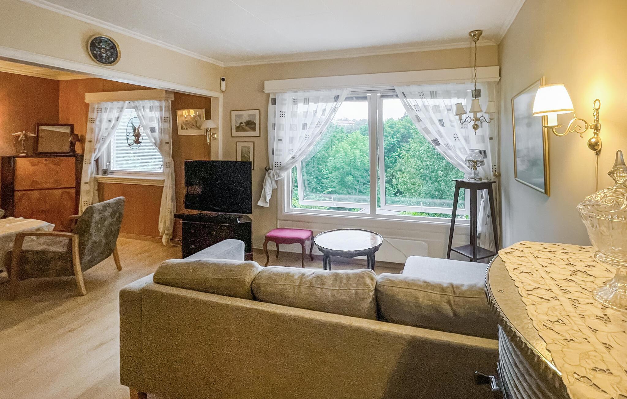 Dette hyggelige hus har alt, hvad I skal bruge til et problemfrit ophold. En hyggelig stue med komfortable sofaer og et funktionelt køkken skaber en afslappet atmosfære, hvor I hurtigt kan slappe af. Uanset om I lytter til musik, snakker eller laver mad sammen – her sætter I tempoet for dagen.