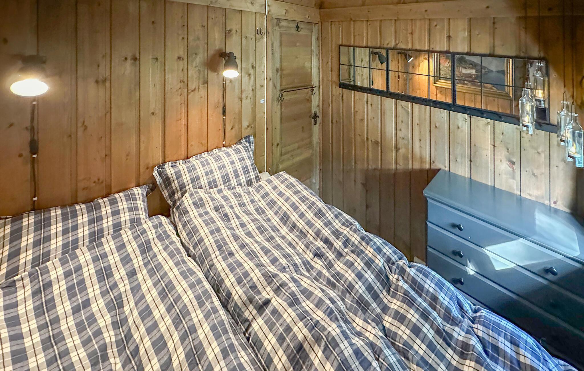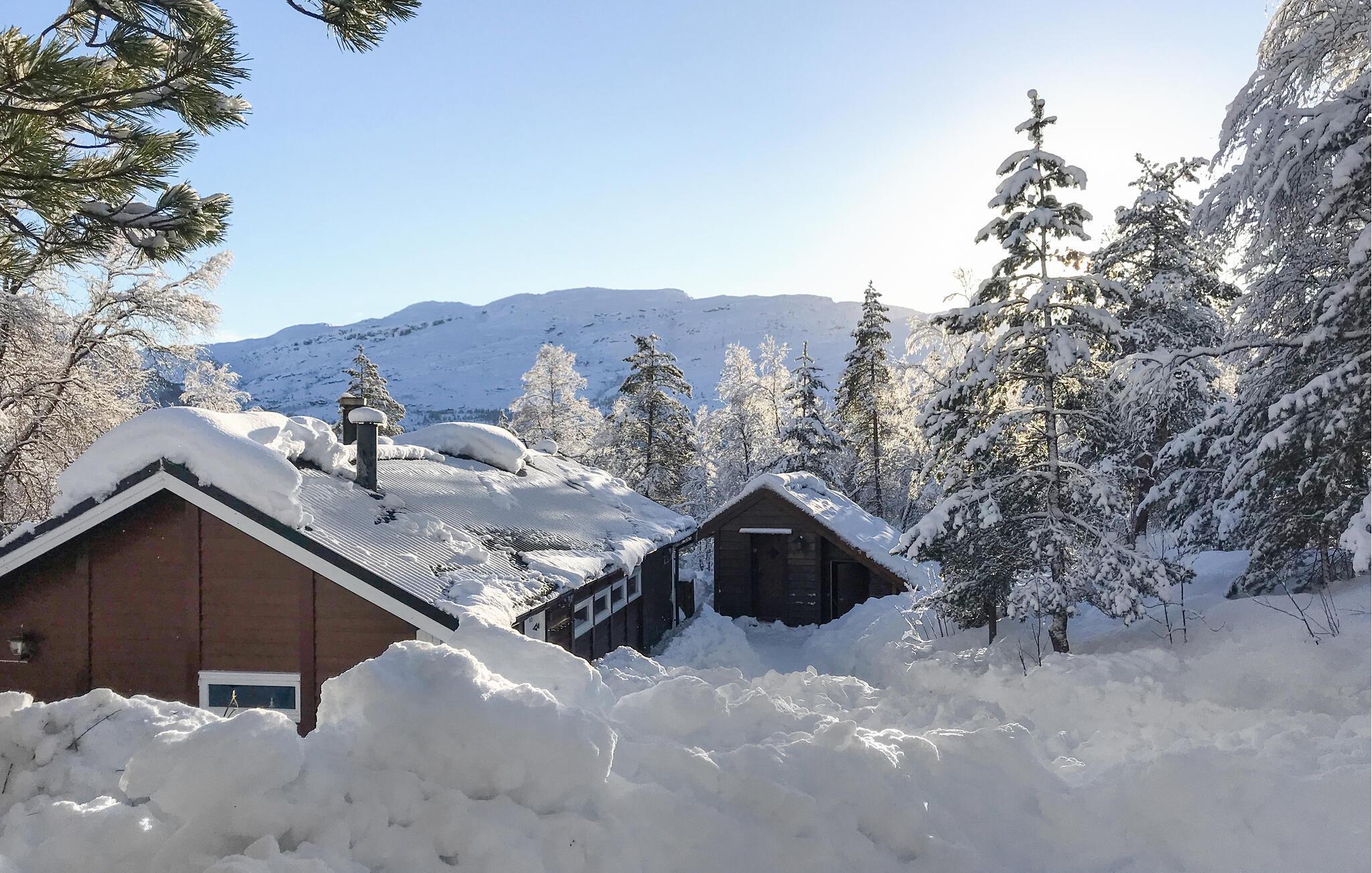 Nyd en afslappende ferie i dette hyggelige feriehus på Kvamskogen. jeres hus ligger stille og ugeneret midt i smuk natur. Det rummelige udendørsområde med terrasser, havemøbler og grill lægger op til at tilbringe afslappende timer udendørs. Lad hverdagen bag jer og gør jer godt tilpas på terrassen, mens I nyder den friske luft og de idylliske omgivelser. Feriehuset byder også på et charmerende anneks med ekstra sovepladser og en lounge, ideel til større grupper eller familier, der har brug for lidt mere plads. Udforsk de forskellige vandrestier i området, som starter lige uden for jeres dør, og oplev norsk natur tæt på. Hvis I kan lide at fiske, er der floder og ferskvandssøer i nærheden, som tilbyder rigelige muligheder for en vellykket fangst. Planlæg også ture til de omkringliggende steder. Besøg Bjørkheim for en kort tur eller tag en tur til Norheimsund og Øystese ved Hardangerfjorden. Bliv fortryllet af de imponerende fjordlandskaber og tag en dagstur til byen Bergen for at nyde kulturelle højdepunkter og byoplevelser. Om vinteren kan I drage fordel af nærheden til Eikedalen skicenter, som byder på skilifter og velpræparerede langrendsløjper på Kvamskogen.