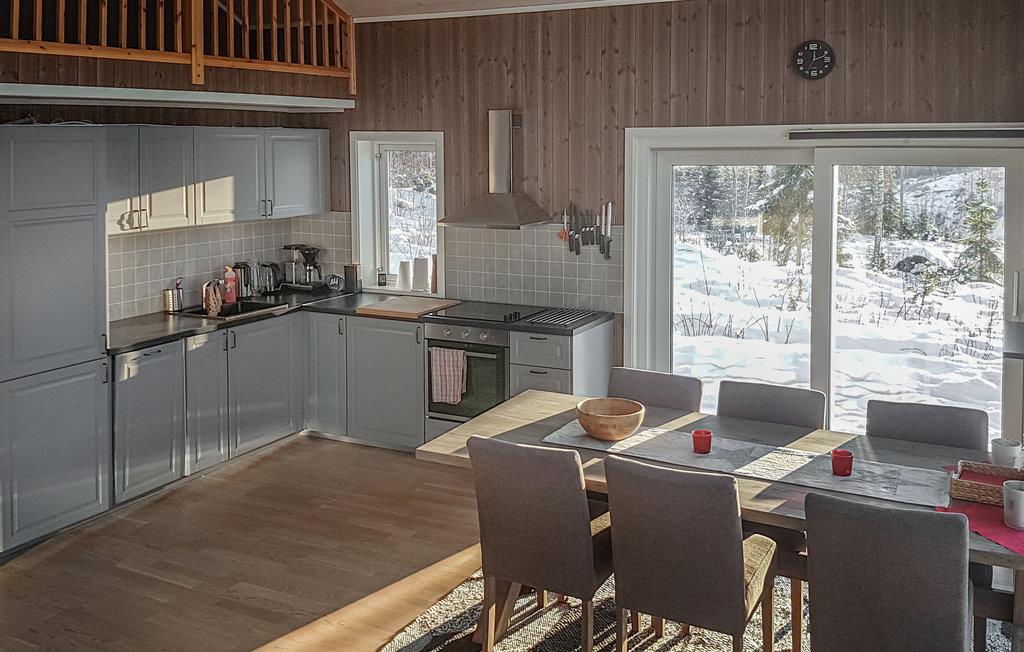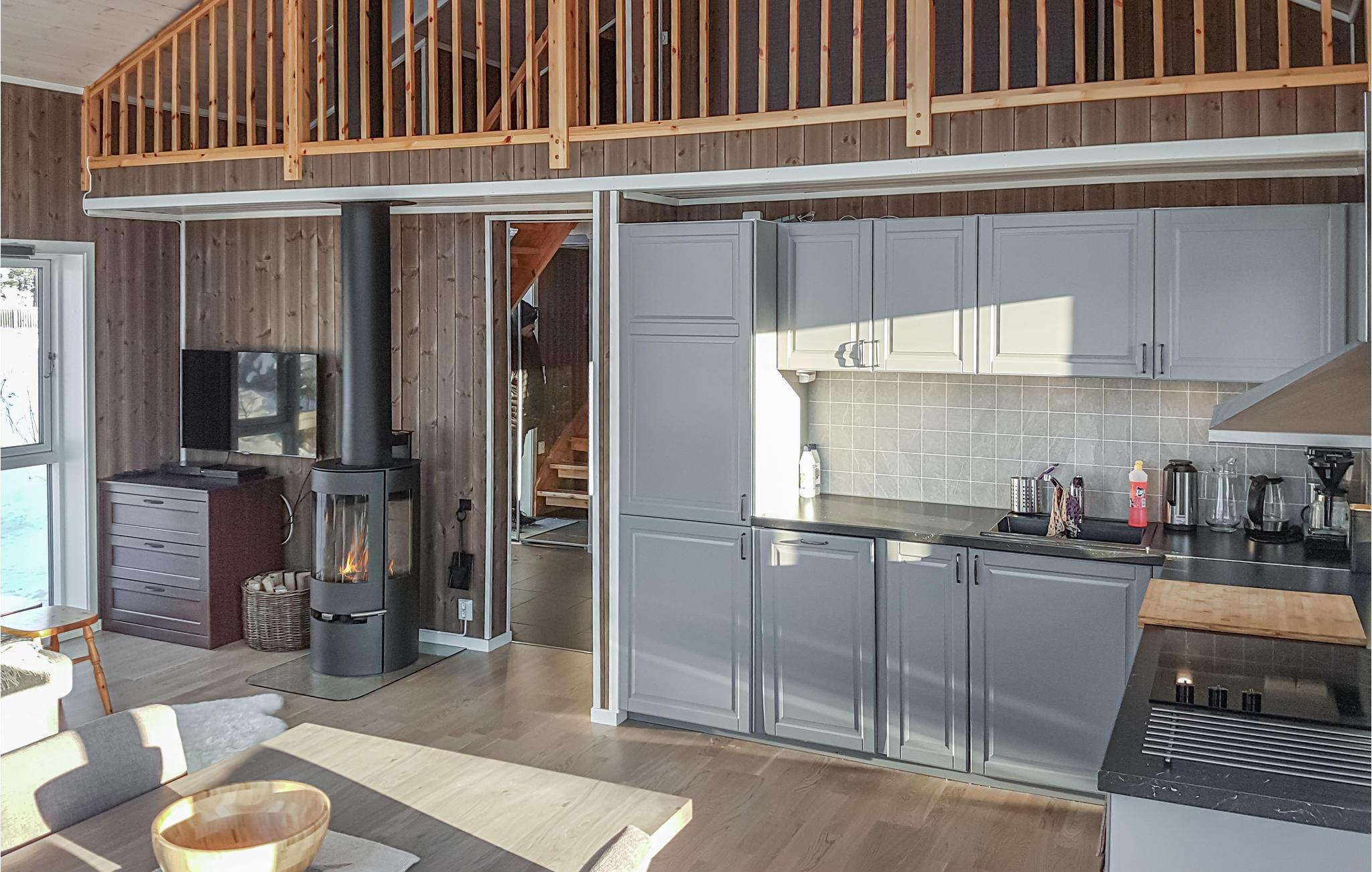 Velkommen til dette skønne feriehus, som kun ligger 400 meter fra Kvitsands badeområde og lystbådehavn. I kommer hurtigt til at føle jer godt modtaget af boligen, som er flot indrettet og har store vinduespartier, hvilket sørger for et dejligt lysindfald i rummene. Her kan I slappe af efter en lang dag på farten og hygge jer indendørs med ild i brændeovnen, brætspil ved spisebordet og en god film i fjernsynet. Om sommeren kan I begynde jeres feriedage med morgenmad på terrassen, mens I nyder udsigten til søen.
