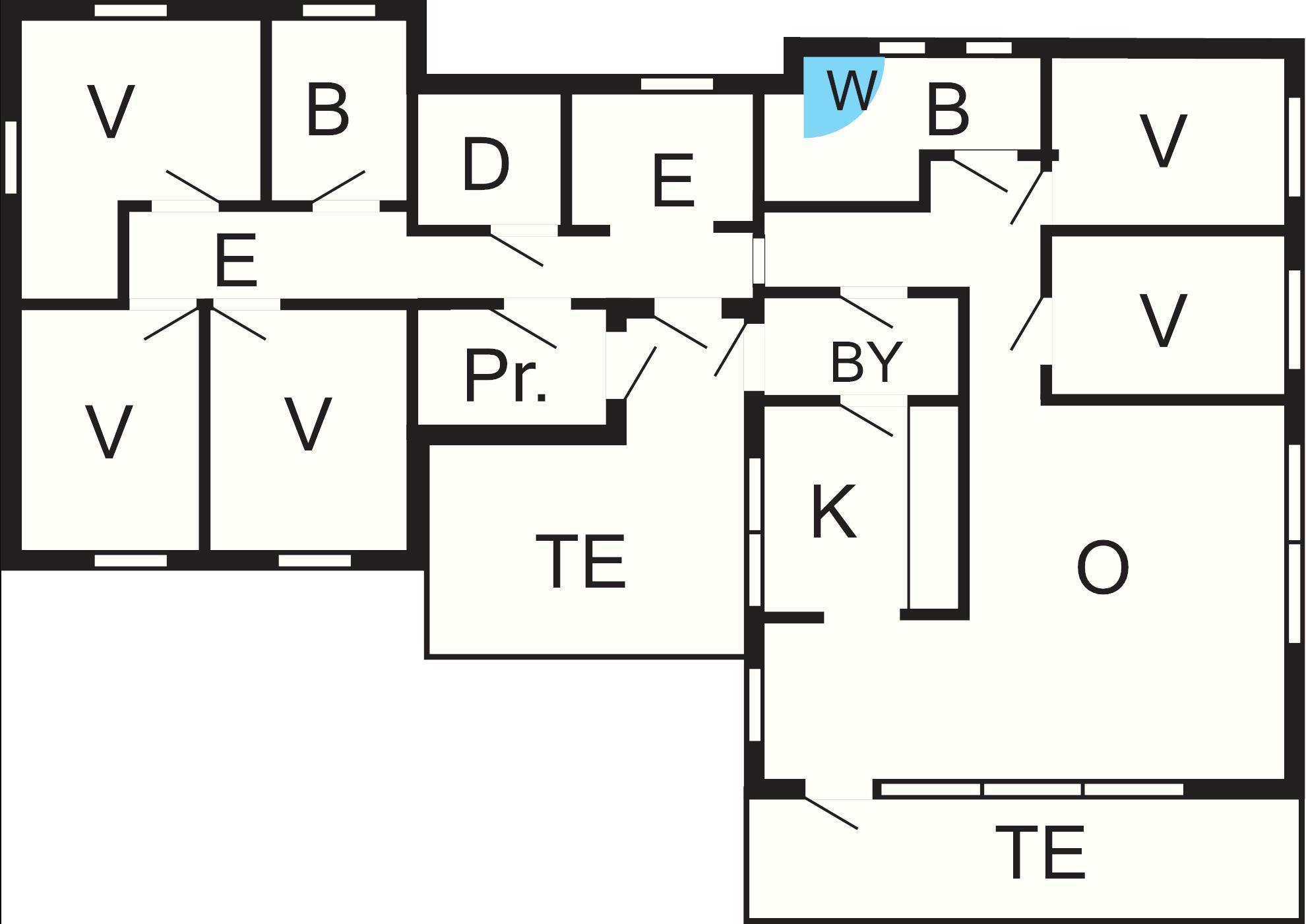 5 Soveværelser: (1DS)+(1DS)+(1S+2K)+(1S+2K)+(1DO)