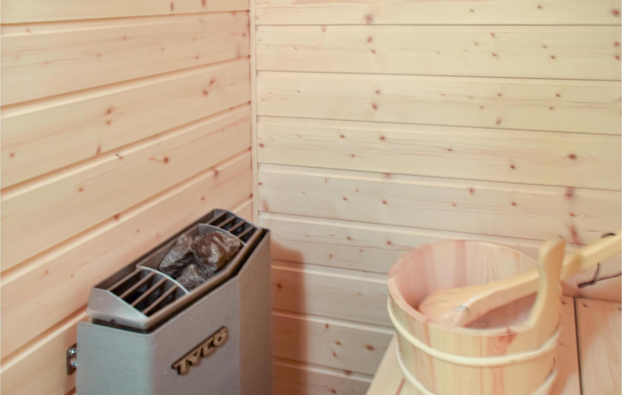 Huset er komfortabelt indrettet med en pejs og komfortable møbler med plads til hele familien eller en gruppe venner. Efter en lang og aktiv dag med udendørs aktiviteter, kan I samles rundt om pejsen med brætspil og en varm drink. Huset har også en vidunderlig sauna, perfekt til lidt wellness på ferie.