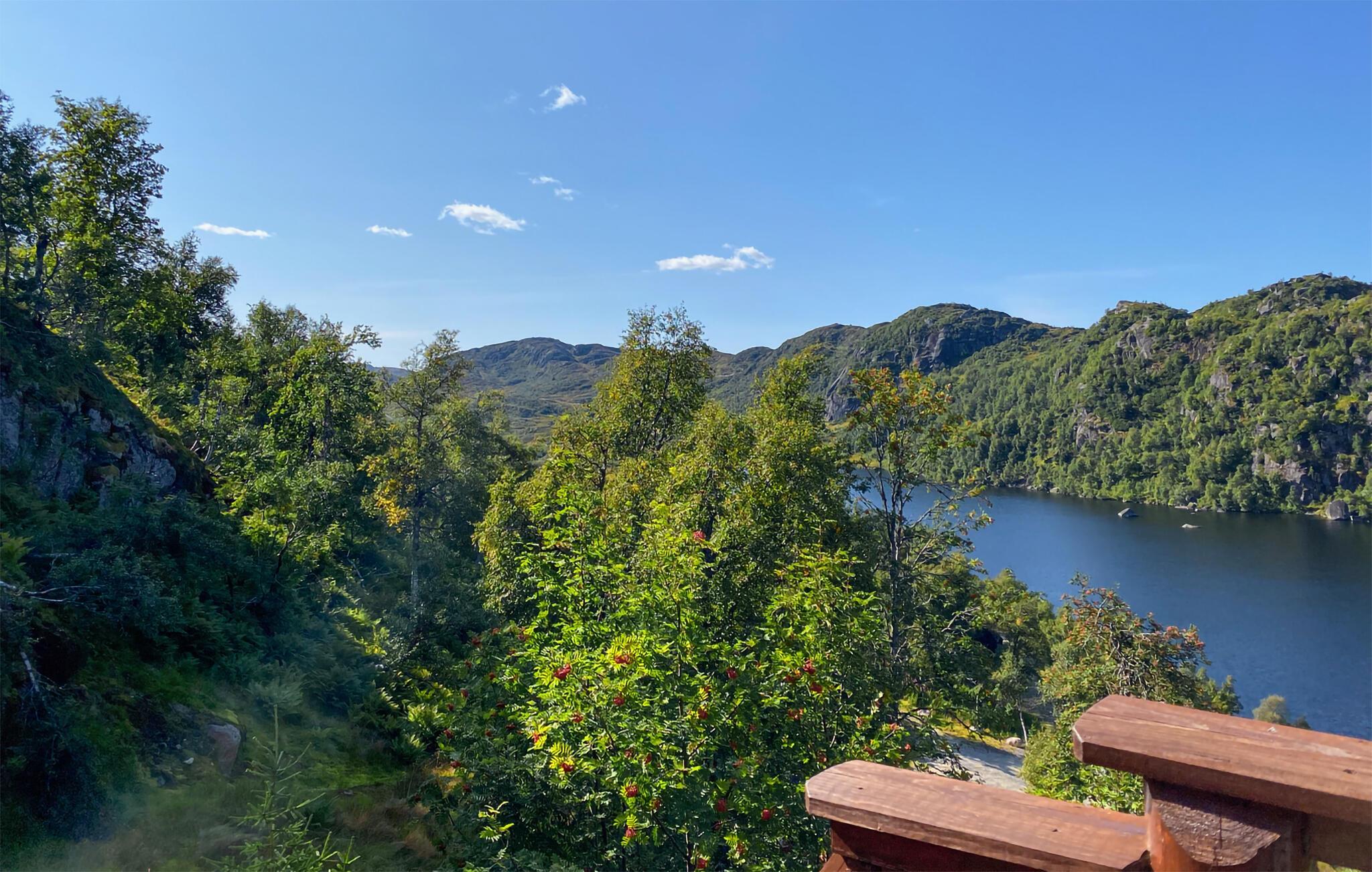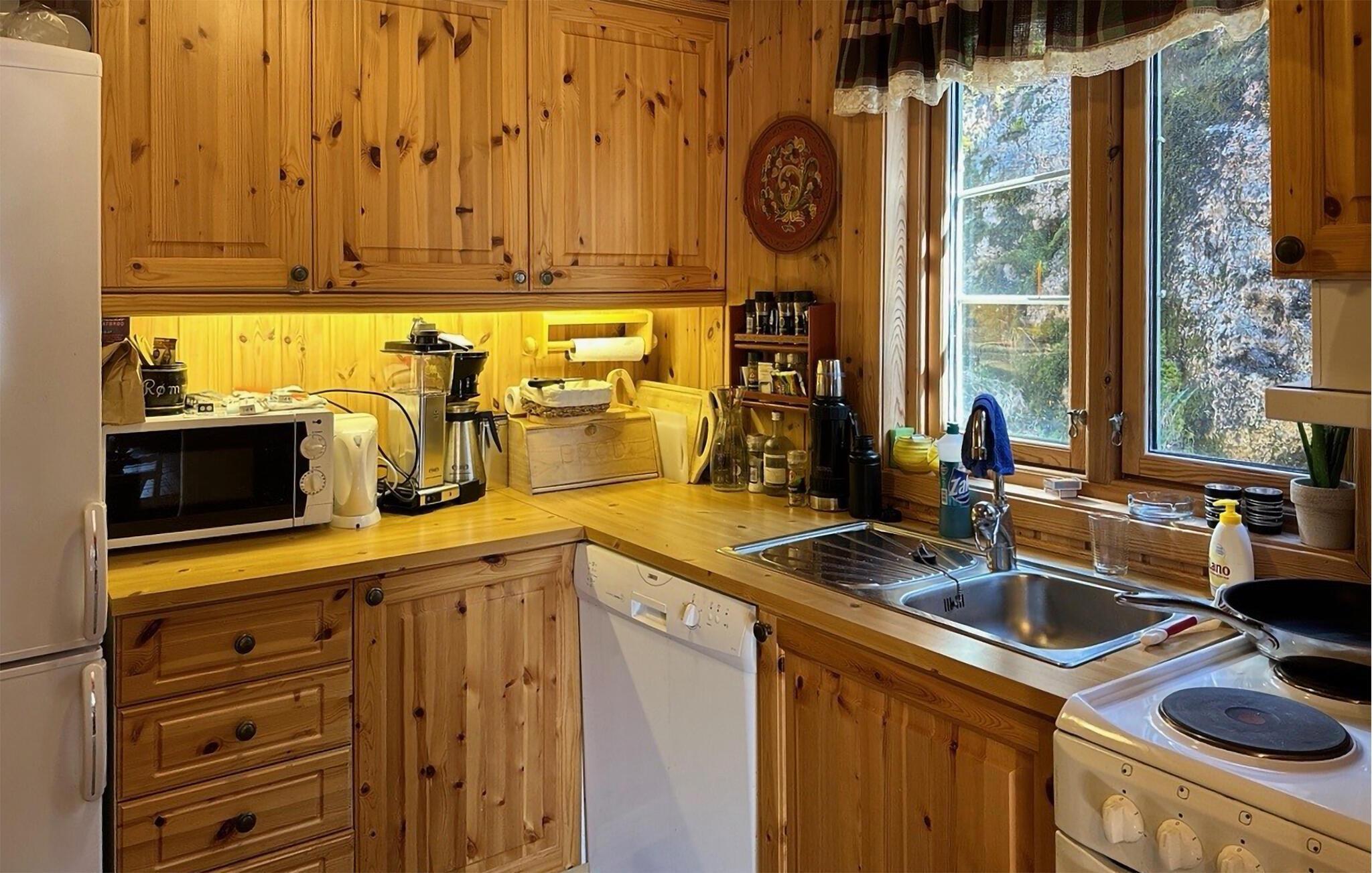 Velkommen til dette fantastisk beliggende træhus midt i naturens kuperede terræn og kun en stenkast fra Farevatn. Her kan I opleve naturen helt tæt på og nyde et unikt panoramaudsigt på samme tid. Trævæggene og -lofterne og de antikke møbler giver en autentisk norsk hygge, som er helt ideelt til en rolig ferie. I kan slænge jer i sofaren eller de bløde lændestole og finde jeres yndlingsbrætspil frem. I køkkenet kan I forberede snacksskåle til filmaftnerne, og kreere lækre middage, som I kan nyde på terrassen. Morgenbordet kan I rykke udenfor, så I kan nyde udsigten mens I får fuldt depoterne op.