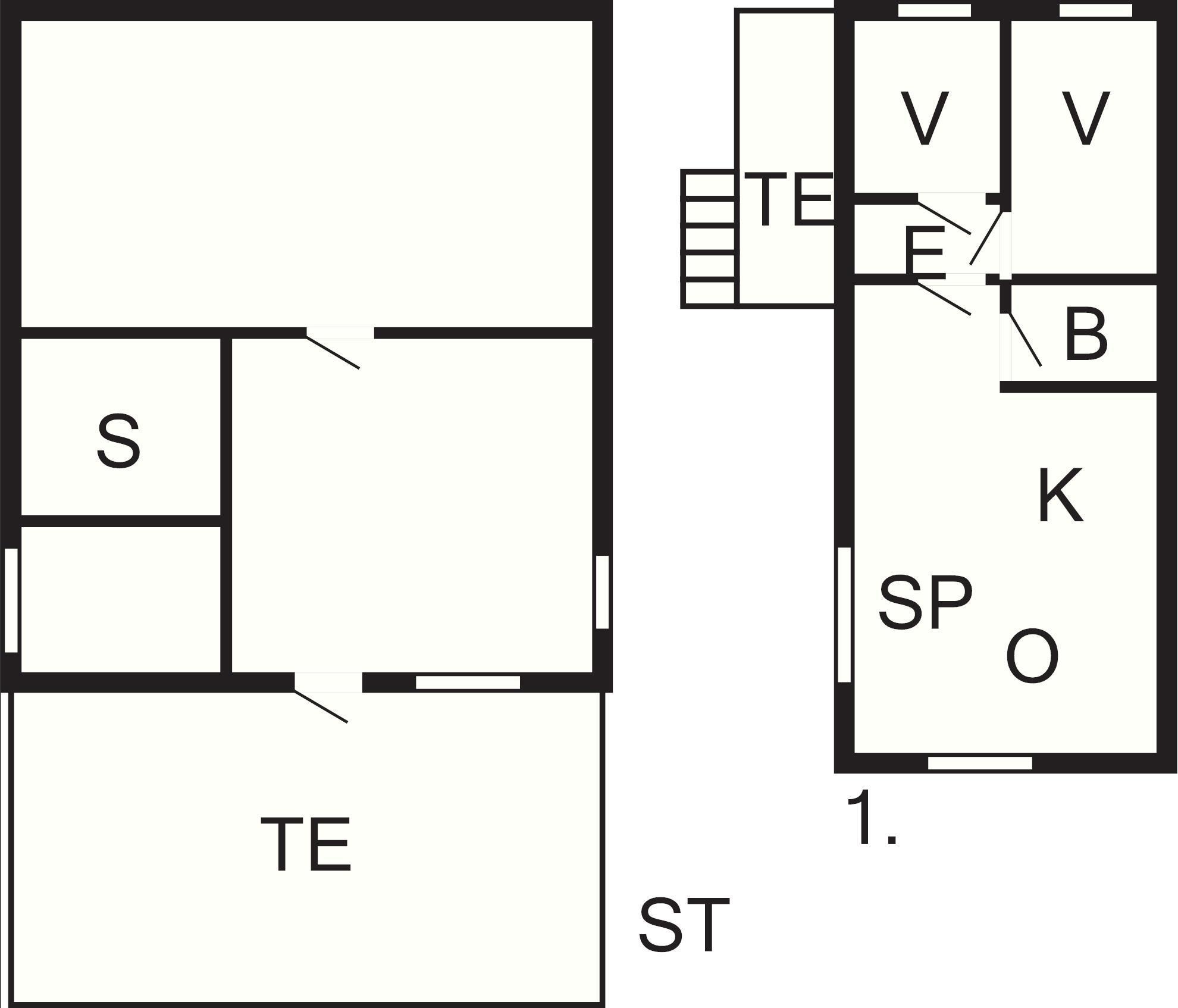 1 Opholdsstue: 35 m2, (1S), brændeovn, radio, cd-afspiller, tv, parabol