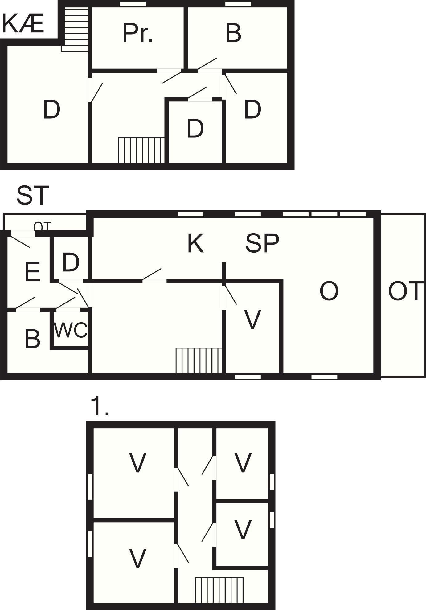 5 Soveværelser: (1DS)+(1DS)+(1DS)+(1S)+(2S)