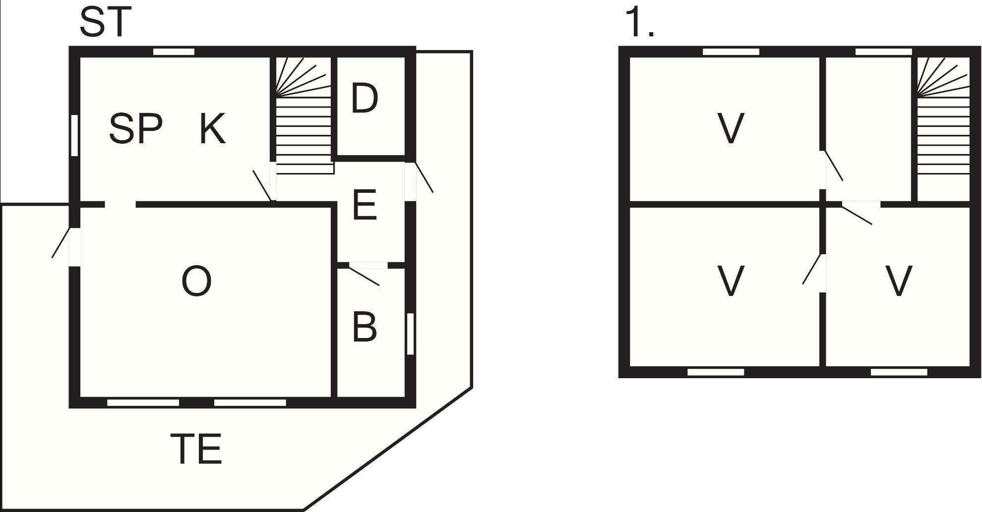 1 Opholdsstue: 20 m2, brændeovn, radio, tv
