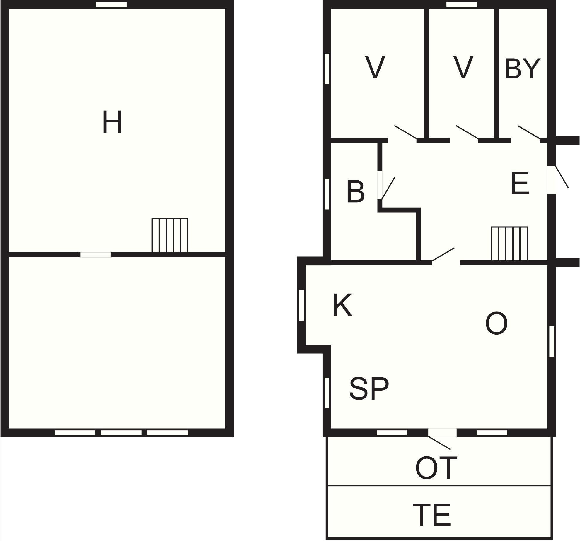 1 Opholdsstue: 28 m2, brændeovn, tv