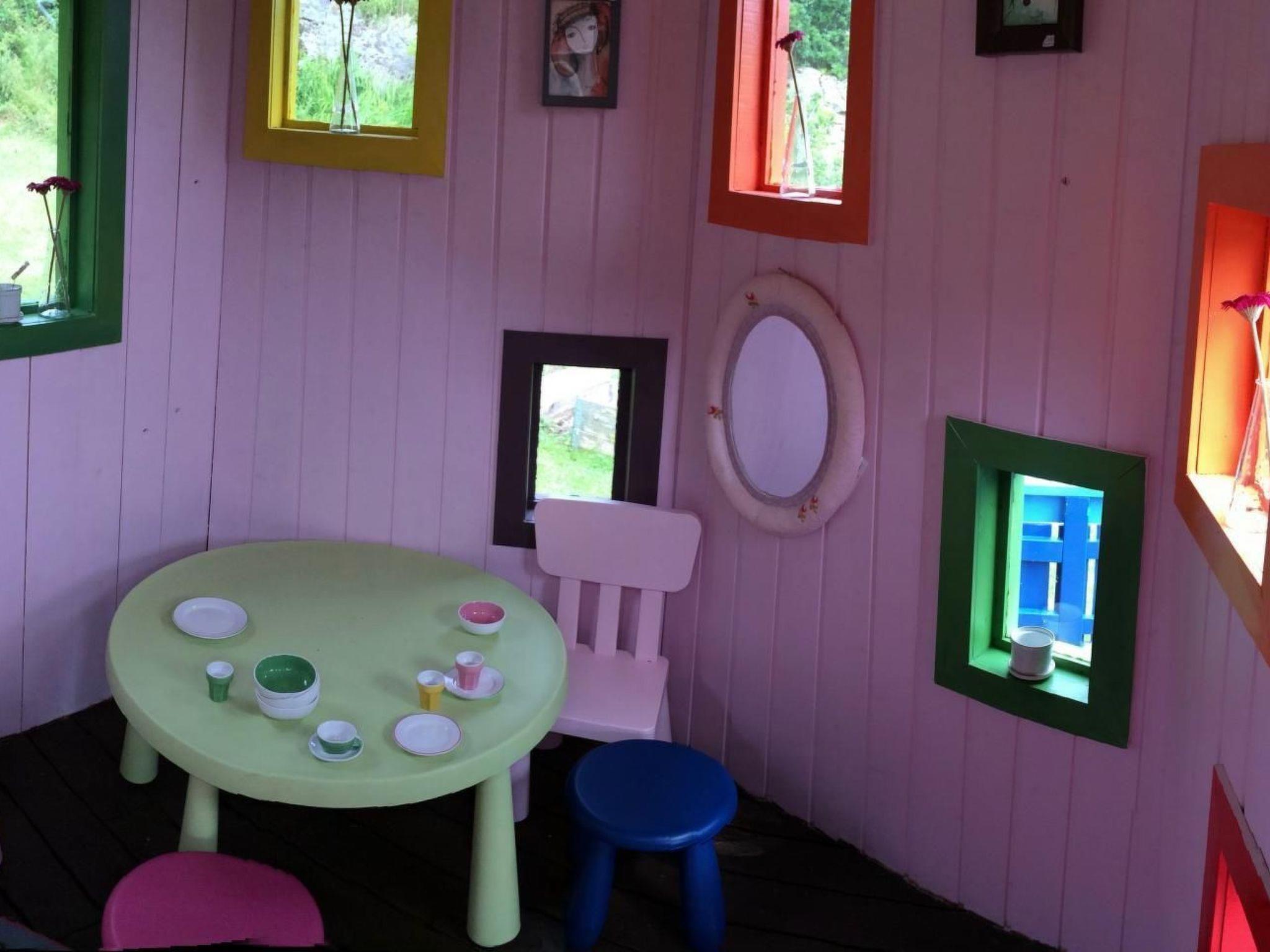 On the property you have an open garden parlour with a fireplace, wood-burning oven and garden furniture, where you can sit and relax in front of the fire in the evening. The wood-burning oven can be used by guests; firewood is available free of charge. Behind the house there is a great children's playground with a slide, children's swings and a cool playhouse, and the property is not fenced in. However, pets can still be brought along. Dogs can be kept on a lead. However, they must be sufficiently vaccinated to be allowed into Norway