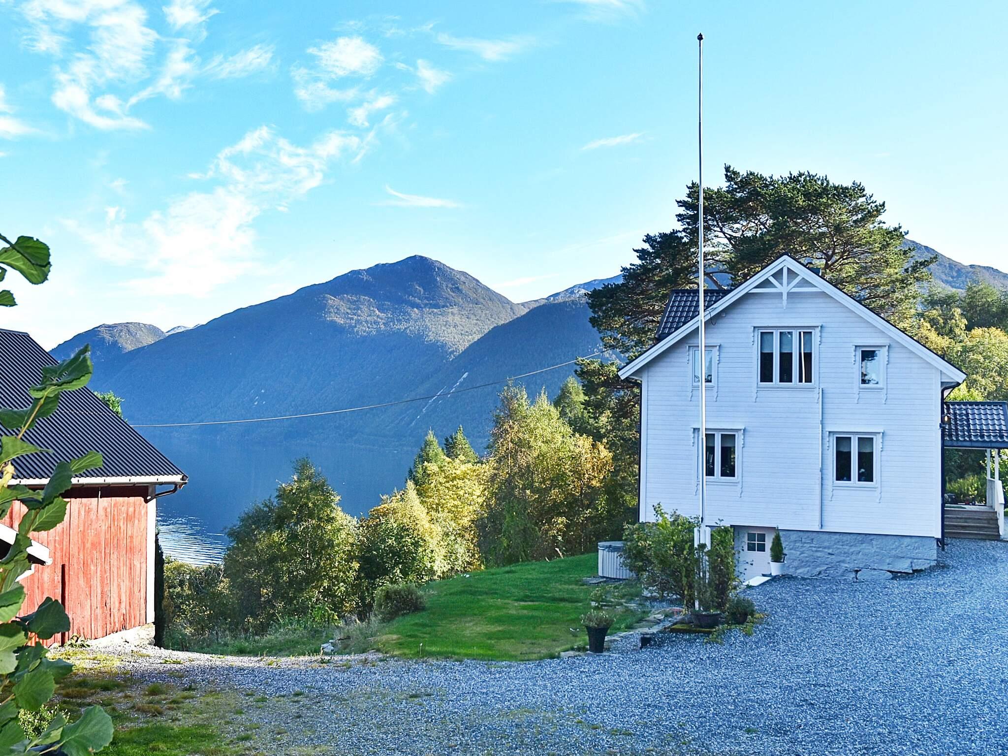 Ved feriehusets inngang er det terrasse med sittegruppe. På plenen nedenfor huset står et utendørs boblebad for 4-6 personer, her kan en nyte et varmt bad i naturskjønne omgivelser. Stor parkeringsplass rett ved huset. 200 m fra feriehuset nede ved fjorden ligger naustet.