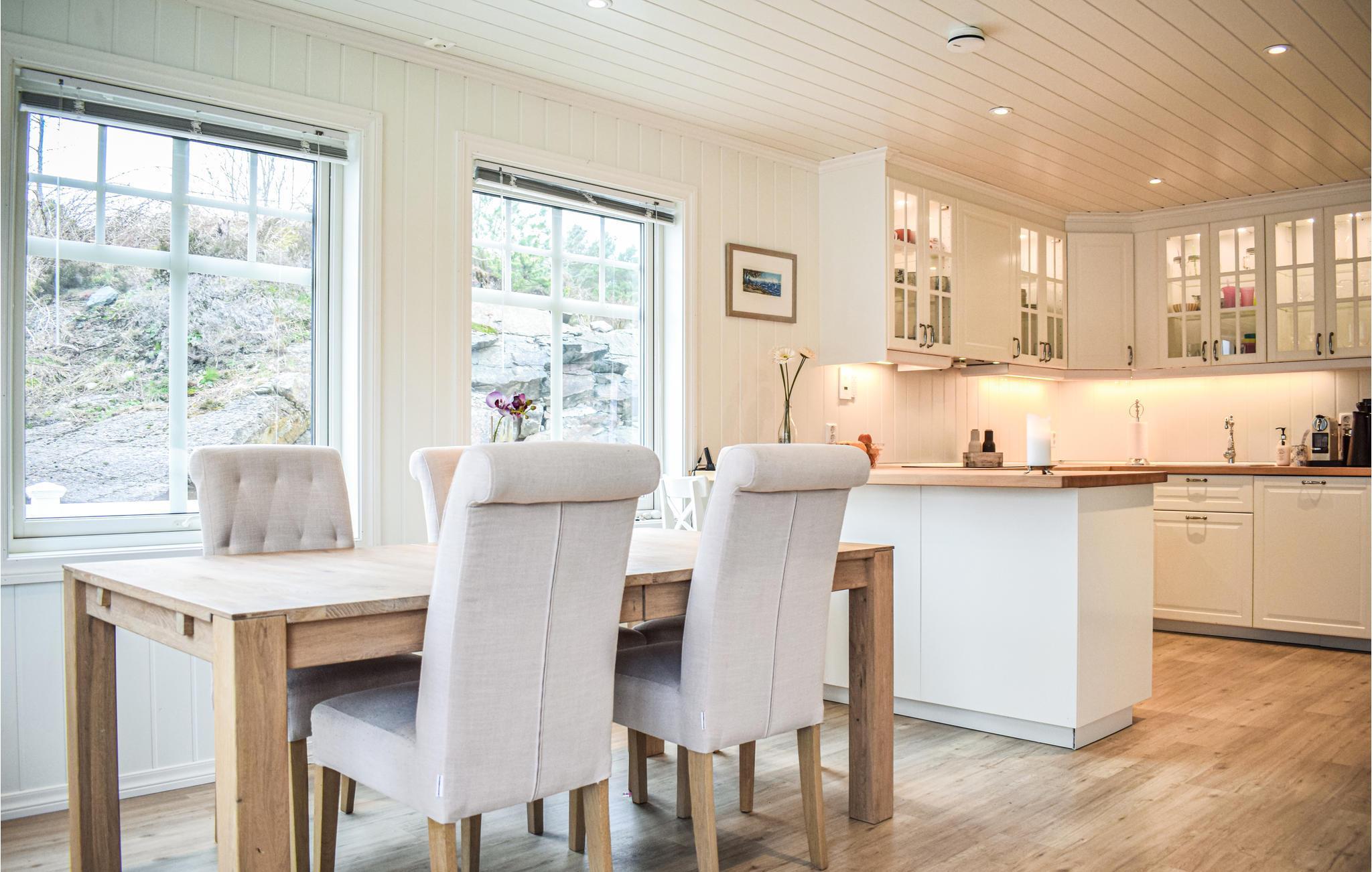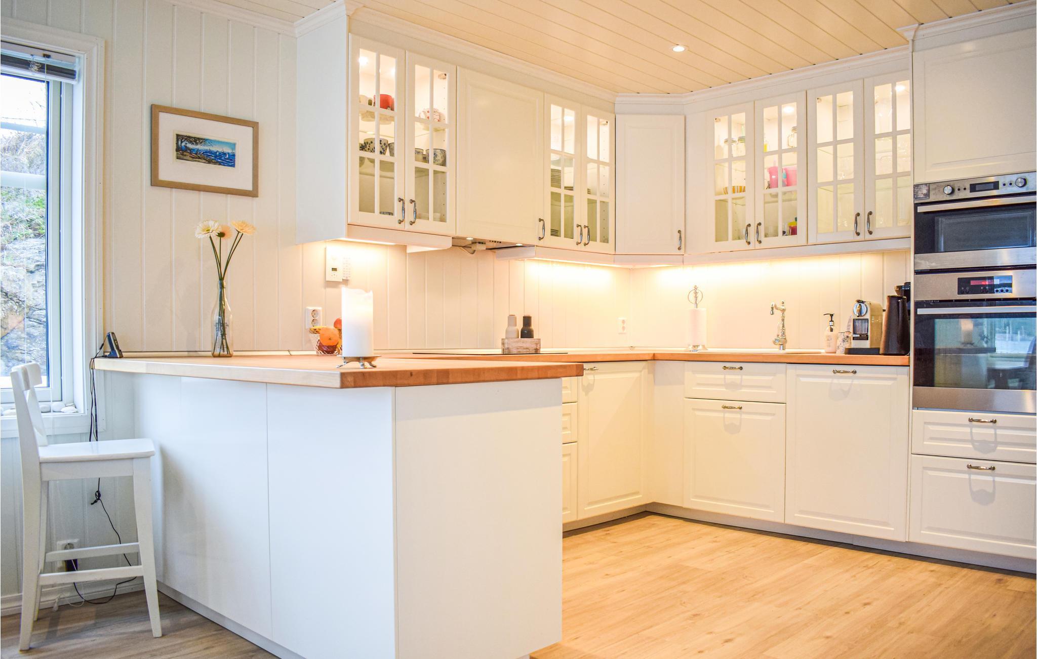 Et hyggeligt møbleret feriehus beliggende lige ved strandpromenaden i Mosterhamn. På den store terrasse kan du nyde dejlige sommerdage med smuk udsigt over skærene. Der er en levende væg mod huset ved siden af, så terrassen er afskærmet. Lige foran huset finder du dejlige svømmemuligheder med sandbund, perfekt til varme og dejlige sommerdage. Her er det også sjovt at prøve lykken ved fiskeri, og der er flere gode steder lige uden for døren.