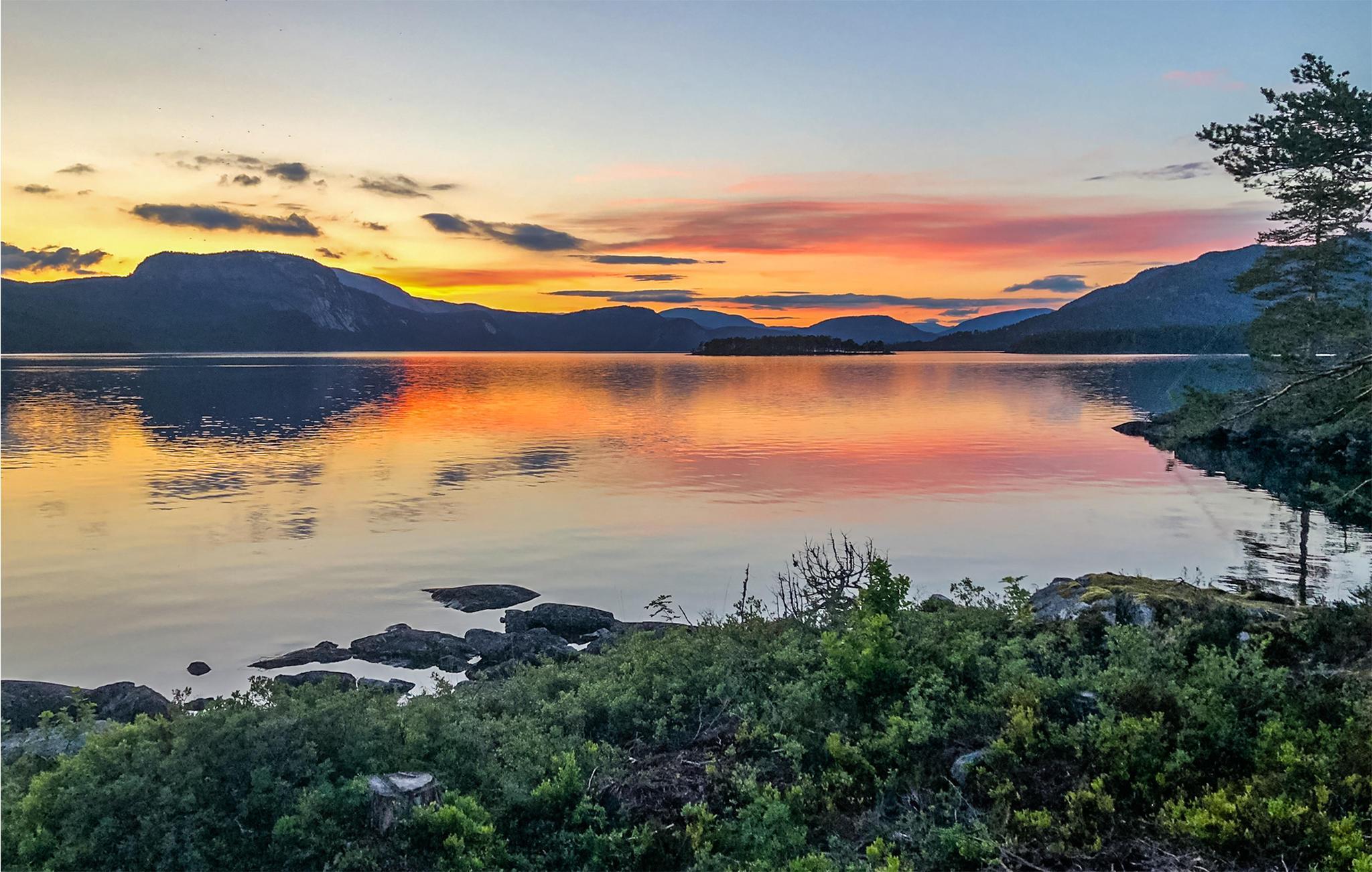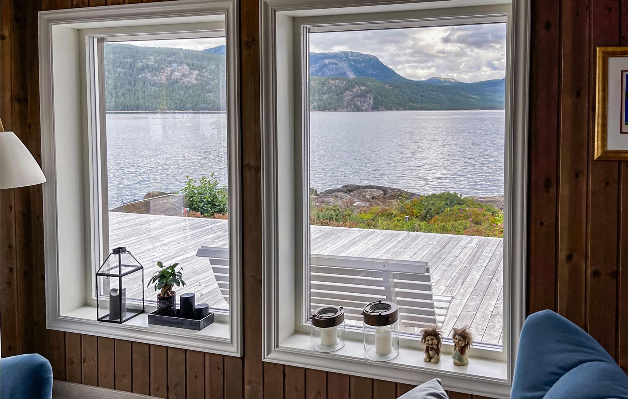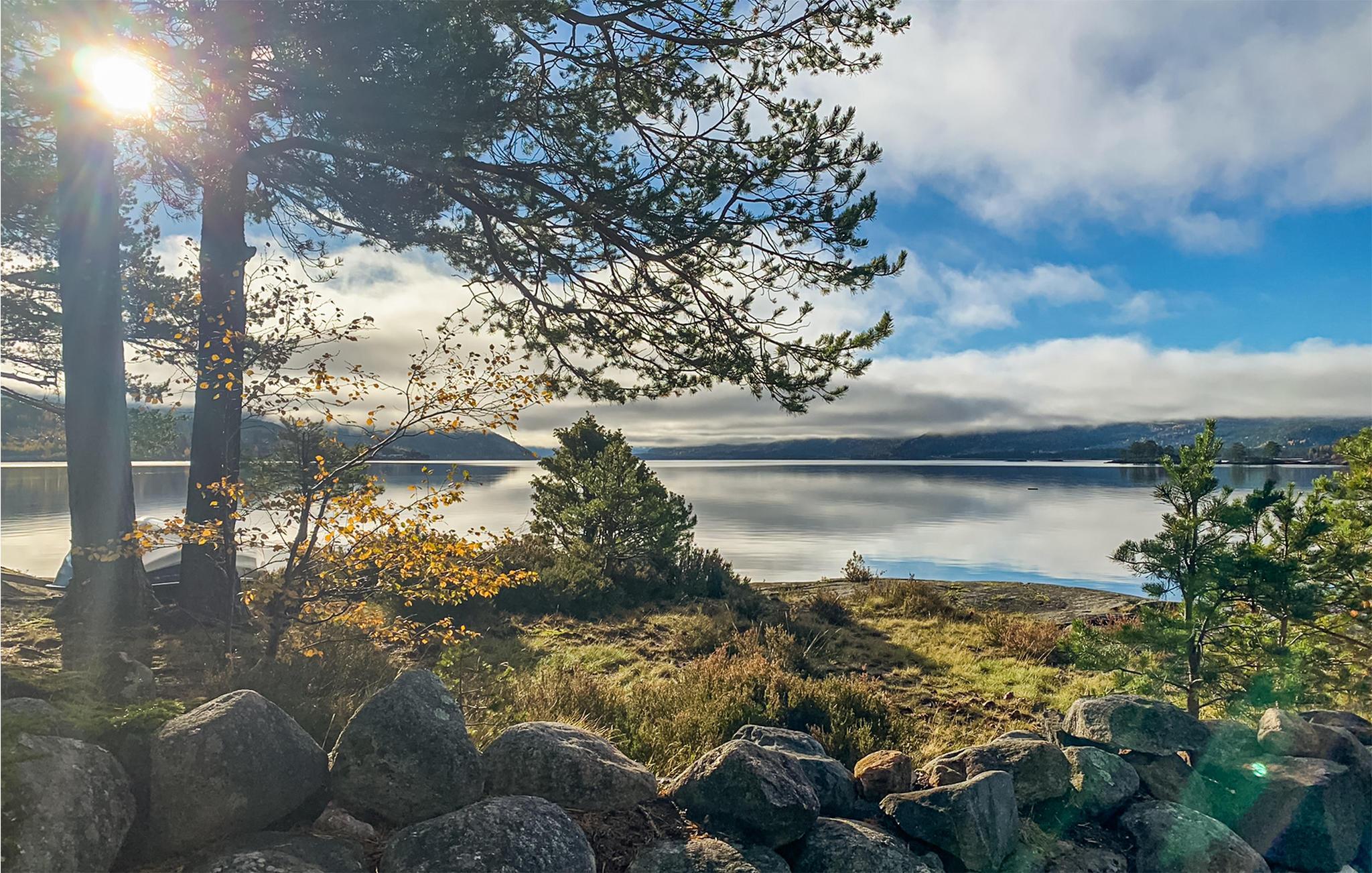 Nyd et vidunderligt panorama over en norsk sø fra dette skønne feriehus!
