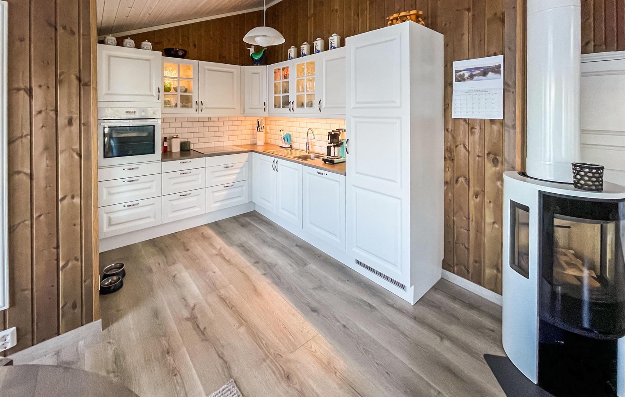 Der er rigtig gode rammer til familien på værelserne i det moderne og komfortable feriehus. Med sine hyggelige møbler er det det ideelle sted for en hyggelig pause på ethvert tidspunkt af året. Nyd den fantastiske udsigt gennem gulv til loft-vinduer, nyd måltiderne sammen foran en skøn kulisse, læn jer tilbage i den indbydende sofa efter en begivenhedsrig dag i naturen og slap af med flammernes hyggelige knitren i pejsen.