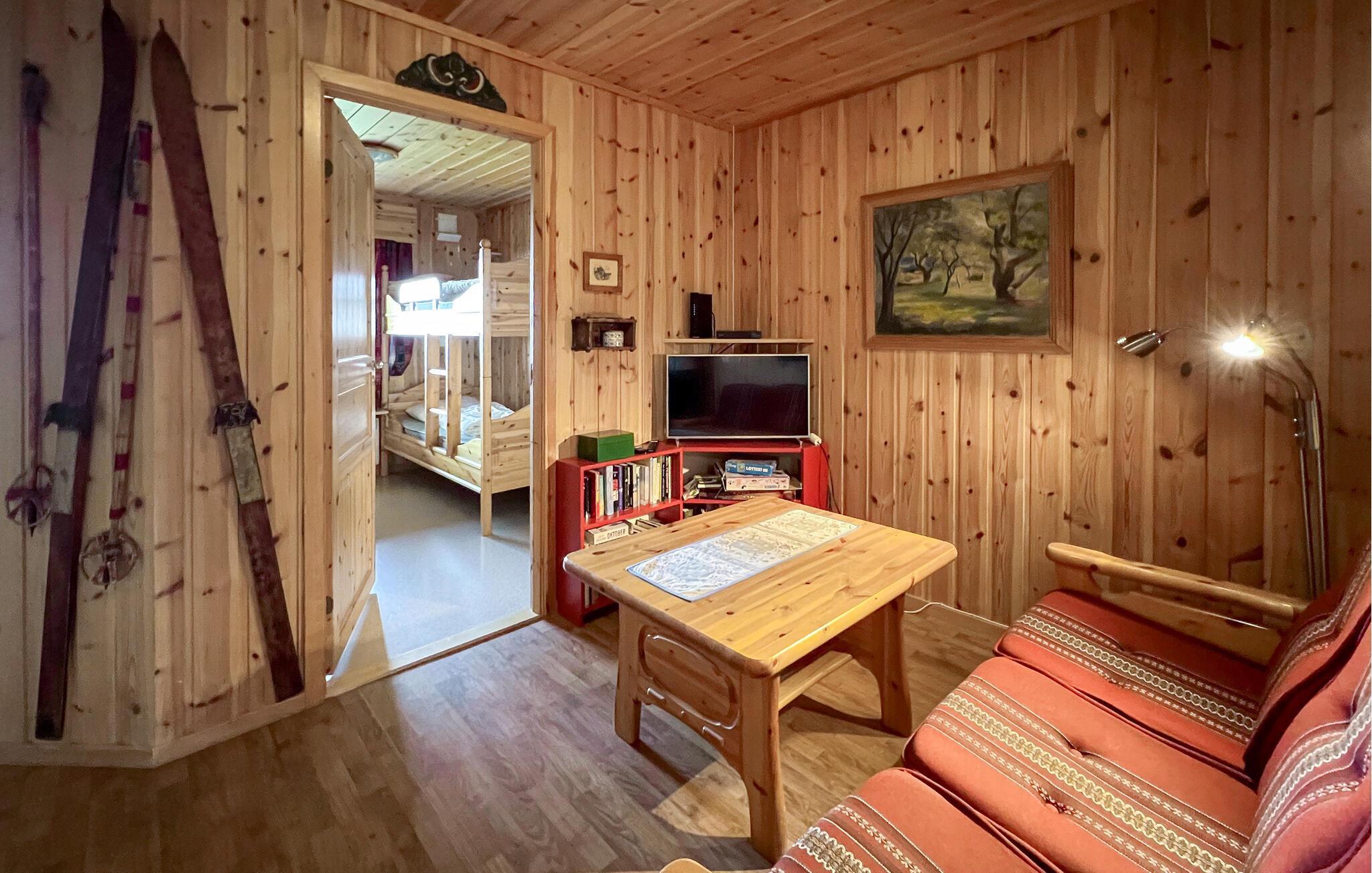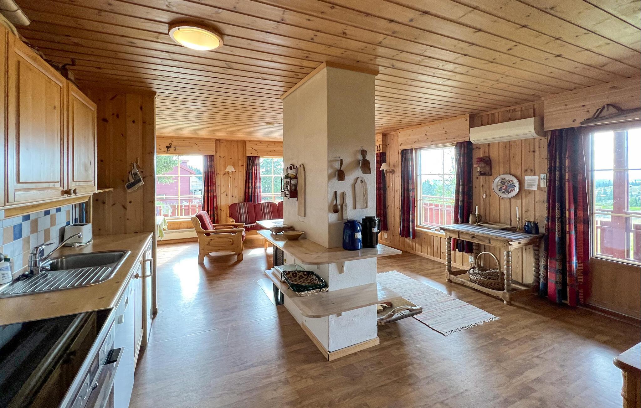 Glæd jer til en afslappende ferie tæt på naturen i dette indbydende feriehus. Dette charmerende, rustikke feriehus i Nordseter indbyder til hyggelige timer foran den knitrende brændeovn. Med sine varme træmøbler og kærlige detaljer udstråler huset familiecharme, ideelt til afslappende dage med dine kære. Efter en aktiv dag kan I nyde den interne sauna, som tilbyder jer behagelig afslapning. Værelserne er lyse og venlige med adskillige vinIer, der bringer det fascinerende bjerglandskab indenfor. I denne oase af velvære finder I fred og tryghed, omgivet af Norges uforlignelige natur. Nordseter er et paradis for natur- og friluftselskere. I kan fiske aborre og søørred i de fiskerige farvande, mens Mellsjøen, regionens bedste badesø, også byder på ideelle forhold for børn. Om vinteren venter et af Norges bedste langrendsløjpenetværk på jer, kun få meter fra dit feriehus. Skiturene er varierede, fra korte ruter til krævende ruter, såsom stigningen til Nevelfjell med en fantastisk udsigt. Om sommeren er vandreture gennem det maleriske landskab fristende - en oplevelse for store og små!