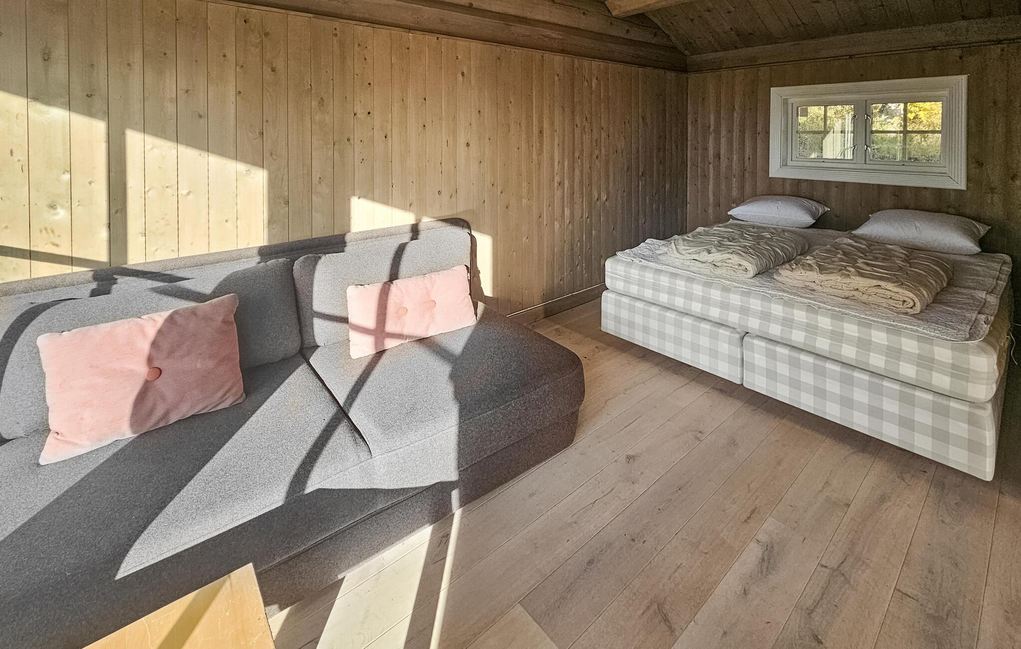 Tilbring en drømmeferie i dette charmerende feriehus. Denne maleriske bjælkehytte er det ideelle tilflugtssted for en ferie midt i naturen. Tunge træbjælker og rustikke møbler skaber en atmosfære, der er både hyggelig og charmerende. Slap af med en varm drik og nyd udsigten over det uspolerede landskab. Tilbered lækre måltider i køkkenet, mens jeres yndlingsmusik spiller sagte i baggrunden. Gå ud på terrassen som det første om morgenen og indånd den friske morgenluft, omgivet af høje grantræer. Nyd en afslappet morgenmad i solen, og find derefter et roligt sted at fordybe jer i jeres ferielæsning. Bjerglandsbyen Eggedal, også kendt som "Kunstnernes Dal", ligger højt over Sigdal-dalen og fortryller besøgende med sin unikke atmosfære. Utallige vandrestier snor sig gennem det åbne bjerglandskab både sommer og vinter, så I kan opleve naturen fuldt ud i enhver sæson. En vandretur til den imponerende Madonna-statue i Eggedals vestlige bjerge kombinerer motion med en smuk udsigt over dalen. Og for dem, der søger mere action, tilbyder Sigdal aktiviteter som gokart, rafting og golf.