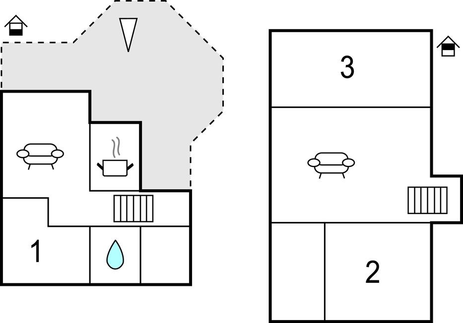 Soveværelse (nr. 2) - 1 Soveplads. (Enkeltseng(e)). 2 Sovepladser. (Dobbeltseng(e)).