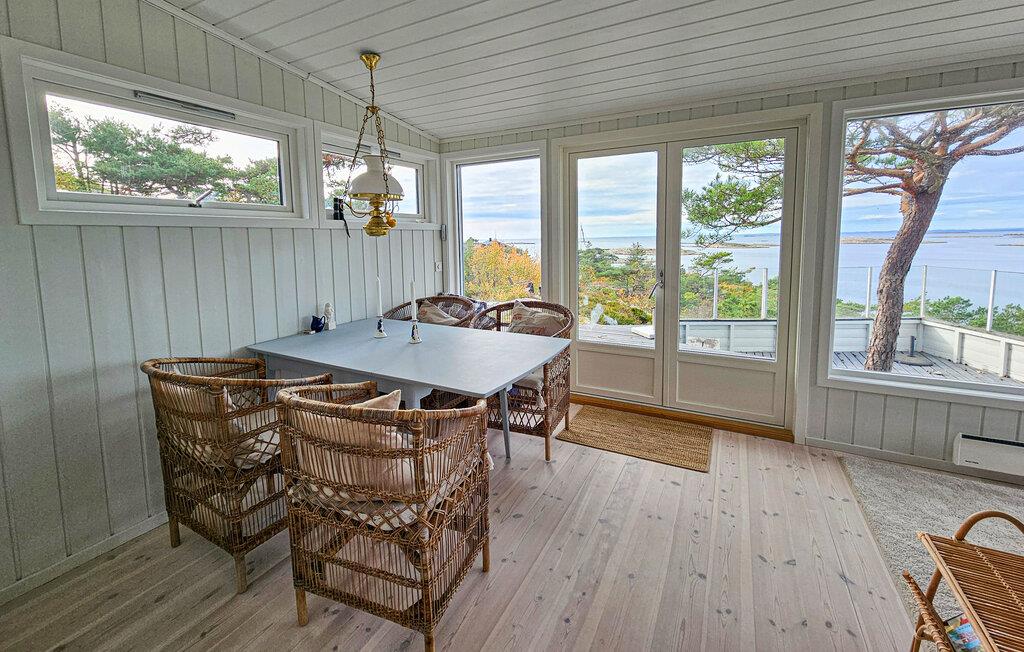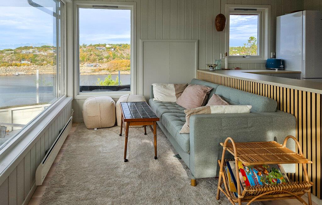 Nyd et afslappende ophold i dette feriehus med en betagende udsigt over fjorden. Dette idylliske hus er det perfekte tilflugtssted for en pause fra hverdagen. Nyd en kop kaffe eller te, mens I nyder den fantastiske udsigt over kystlandskabet og fjorden. Tilbered lækre måltider i køkkenet, og spis ved det store spisebord, mens solen langsomt går ned over havet. Fordyb jer i jeres feriebog, eller lyt til jeres yndlingsmusik. Start dagen på terrassen, og nyd morgenmaden i solskinnet. Lyt til naturens lyde, og observer de forskellige havfuglearter. De omkringliggende bugter indbyder til afslappende svømmeture og er også ideelle til fiskeri. I kan bruge kajakkerne i det nærliggende sommerhus N37821, afhængigt af tilgængelighed. For dem, der søger et skifte i landskabet, ligger den charmerende by Fredrikstad med dens historiske fæstningsværker, idylliske gyder og små caféer kun en kort køretur væk. Bemærk venligst: Dette hus ligger ved siden af sommerhus N37821 og kan bookes sammen med det.
