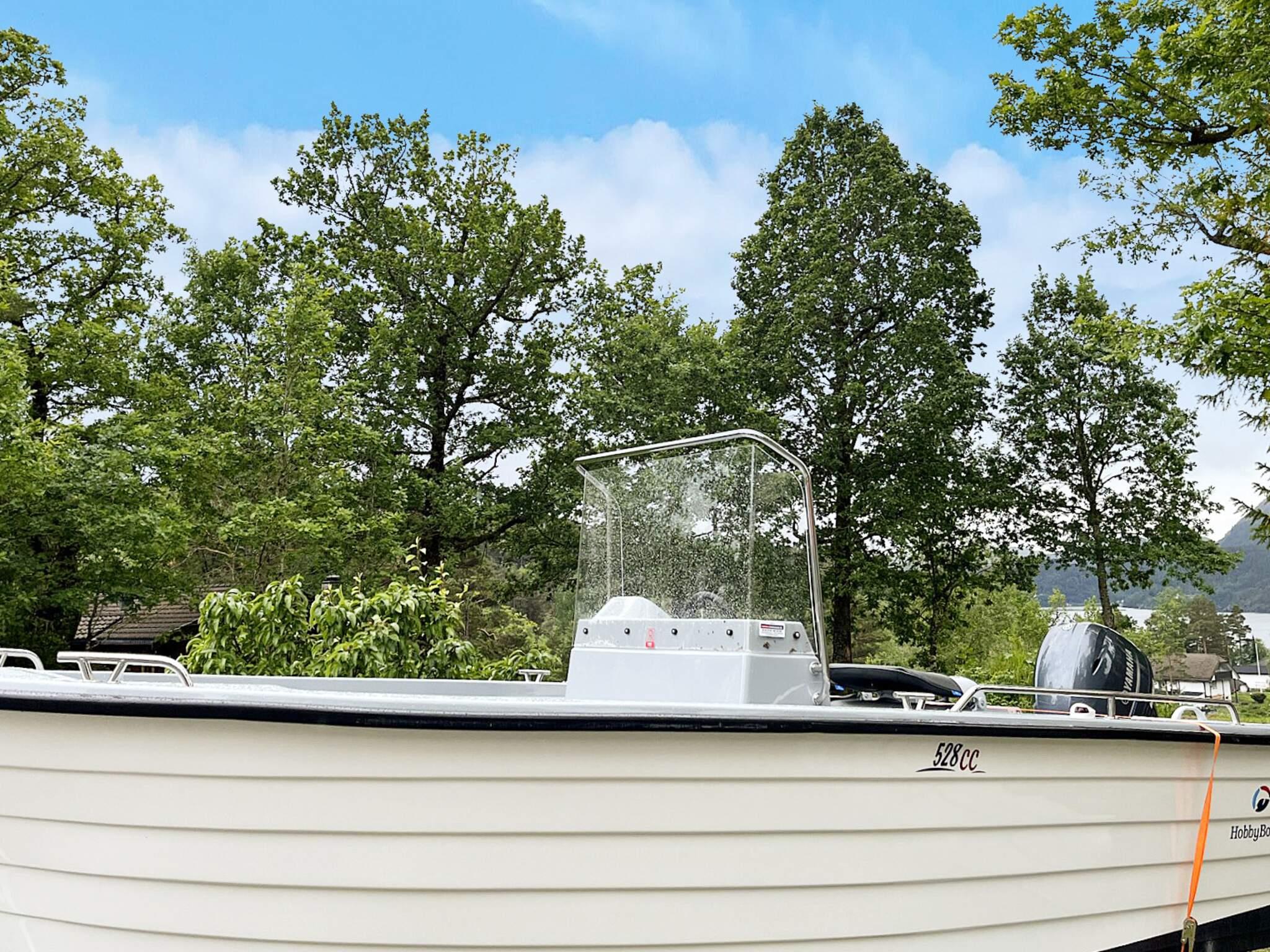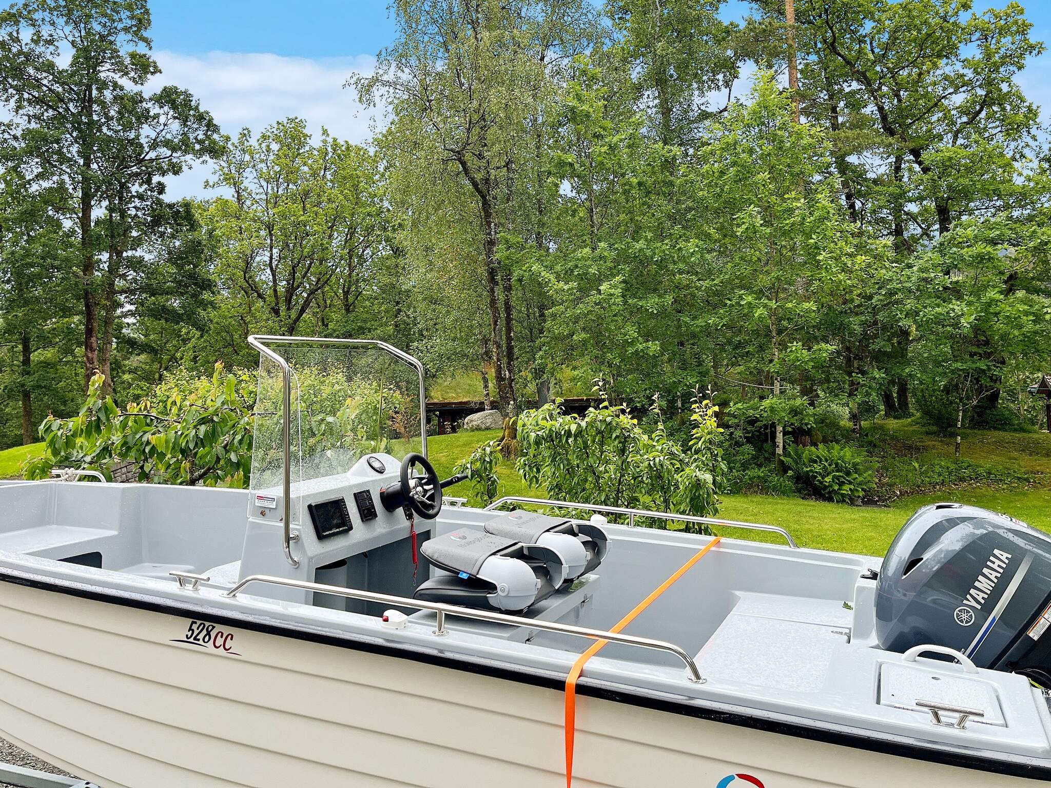 Til leie ca. 1.5.-1.10: 1x18 fots Hobby 528CC med 60 HK Yamaha, Garmin 7-tomms kartplotter, GPS og ekkolodd. Båten ligger på bøye og flytebrygge ved land for å gå ombord og ut av båten. Det er fileteringsbord med lys og vann i garasjen (20 m fra hytta) samt stor frysekapasitet.