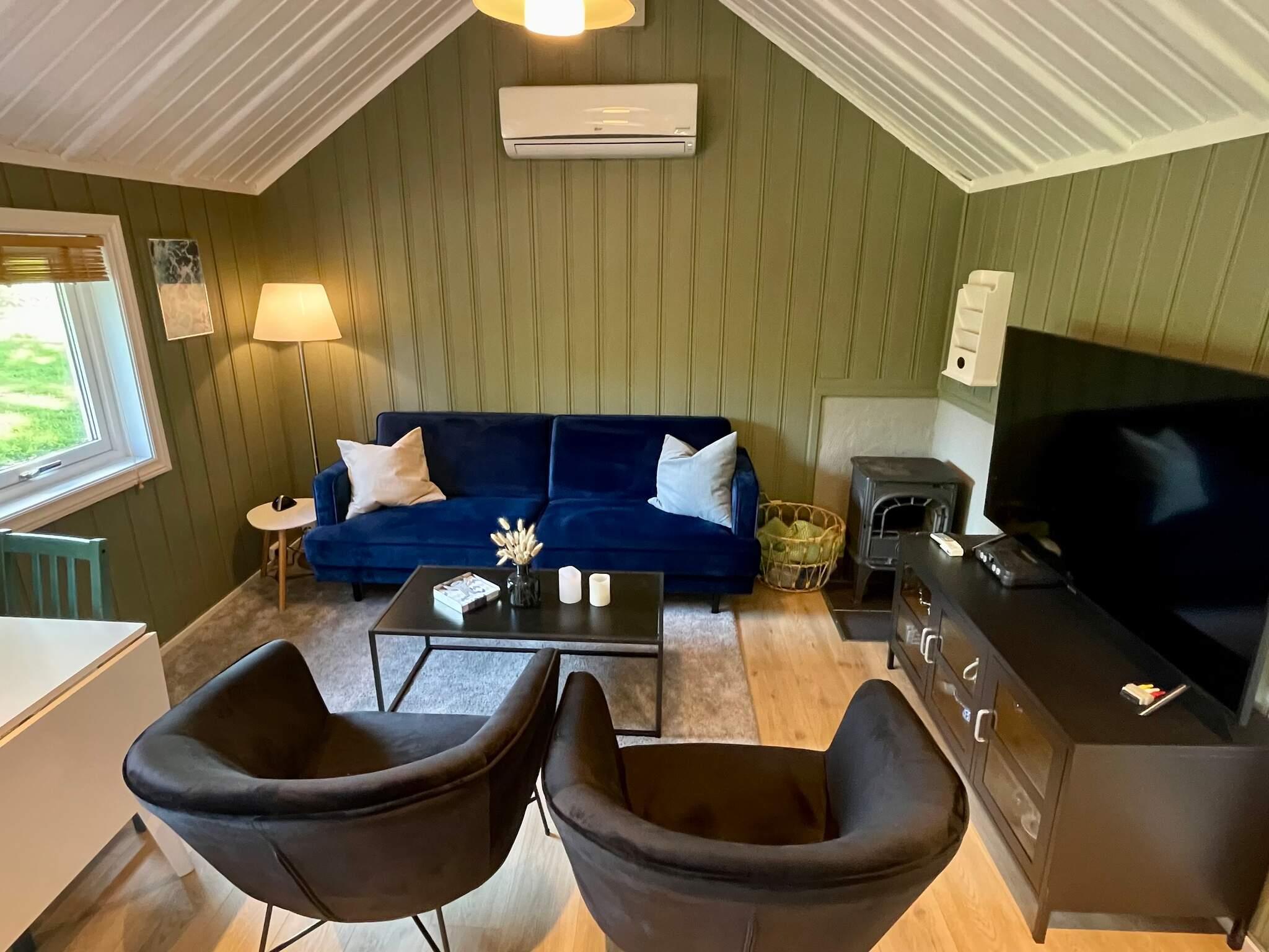 Feriehuset er koselig innredet og har flere store uteplasser, hvor du kan sitte og høre på det yrende fuglelivet mens du nyter dagens fangst. Gassgrill og bålpanne tilgjengelig. Flott kjøkken som er utstyrt med alt du trenger til et vellykket ferieopphold. Ett soverom med dobbeltseng med god skapsplass samt ett soverom med dobbeltseng på hemsen, merk vennligst at det er en bratt trapp/stige opp. Bad med dusj og WC. Ved inngangen er det bod med vaskerom.