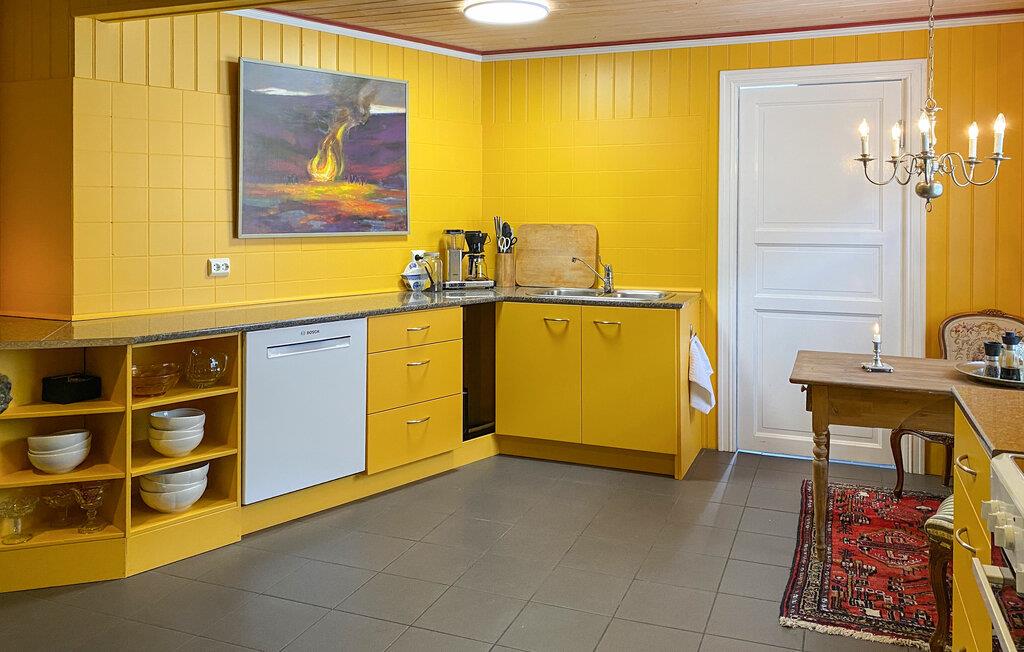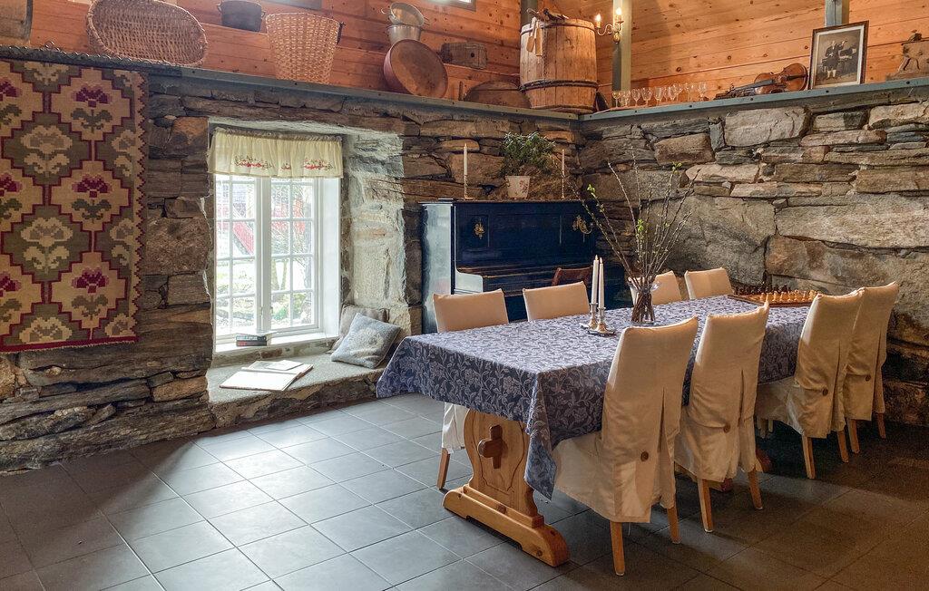 I dette usædvanligt hyggelige feriehus kan I flygte fra hverdagen og nyde en afslappende ferie. Gå ind i den rummelige stue med dens imponerende, tykke stenvægge, som skaber en helt særlig atmosfære af fred. Brug den smukke brændeovn her og tilbring hyggelige aftener i de komfortable sofaer. Det åbne, venlige køkken er stilfuldt indrettet. Tilbered nemt lækre retter selv og nyd hyggelige måltider ved det store spisebord, som er ideelt for hele familien.