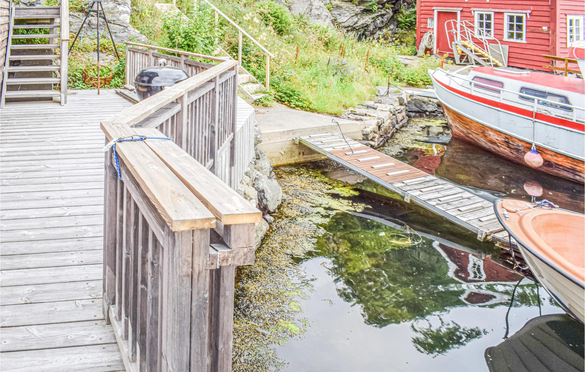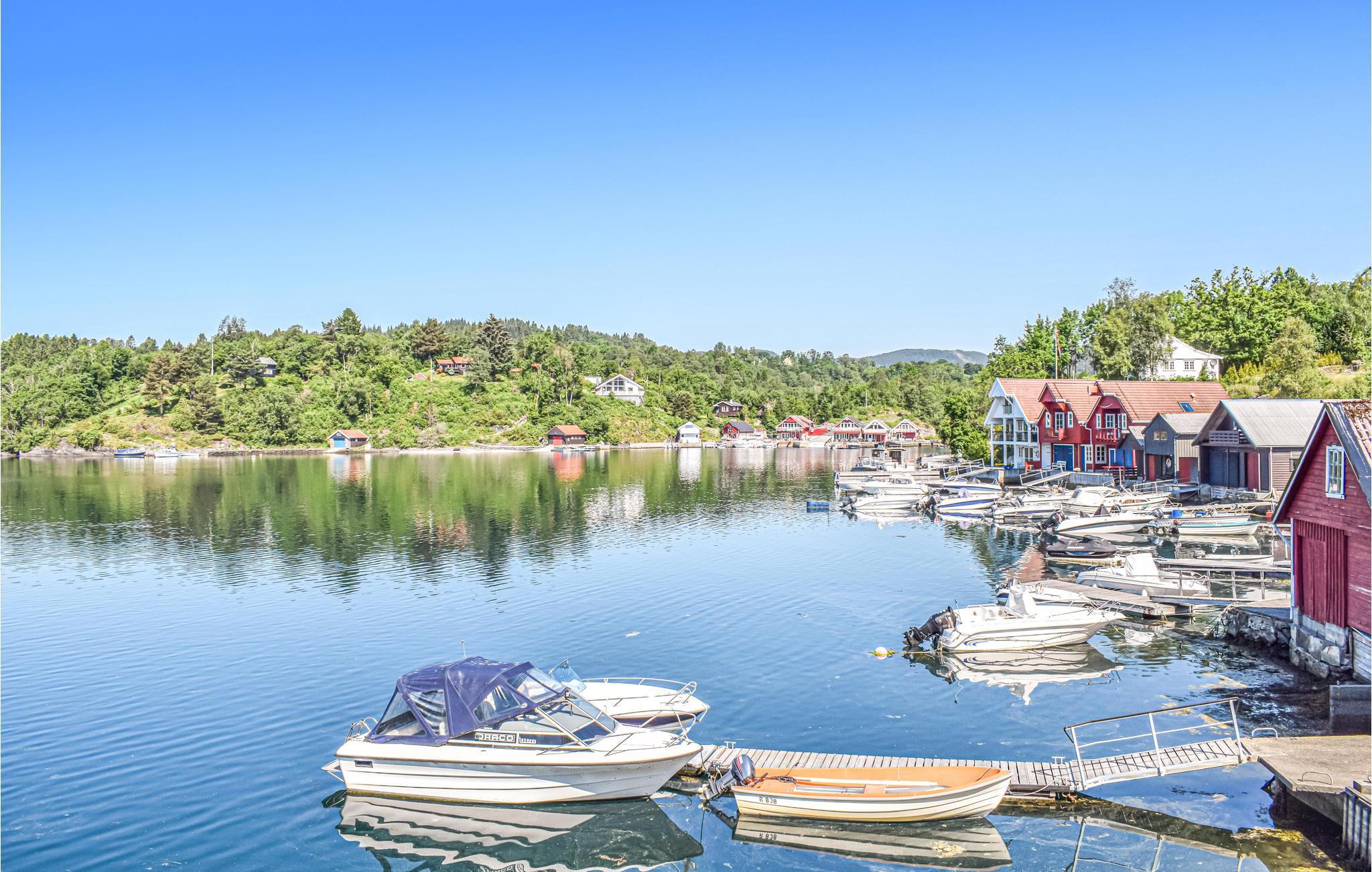 Stort og dejligt feriehus beliggende lige ved fjordbredden ved en hyggelig marina med flere bådhuse og både. Feriehuset er fritliggende og har en terrasse på kajområdet, men alligevel ugenert. I kan tage på fine fiske- og bådture ud i den smukke og rolige fjord.