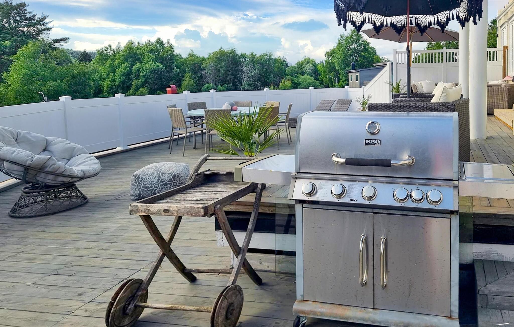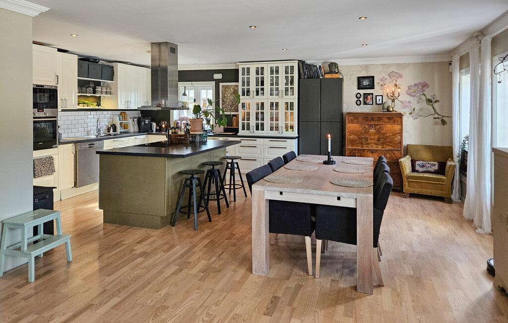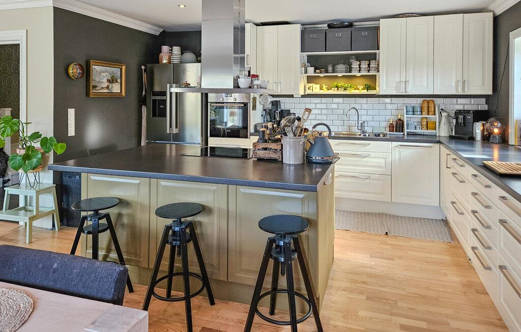Hvis I er på udkig efter en rummelig og komfortabel base til en ferie med den udvidede familie, er I kommet til det helt rette sted. I denne villa uden for Porsgrunn får I masser af kvadratmeter og moderne faciliteter, der gør jeres ophold helt og aldeles bekymringsfrit. Indretningen fremtræder virkelig flot med et vellykket mix af det rustikke og det moderne, at det mørke og det lyse, og med det komfortable møblement får I nemt ved at slappe af med det samme, I ankommer. Lad familiens kokke kræse om livretterne i det rummelige køkken og rund aftenen af i stuen med en god film eller brætspil. Eller måske I har en pianist i familien, der kan spille op til fællessang? Skal det være lidt ekstra lækkert, kan I sætte jer godt til rette i spabadet med en god drink, før I går til køjs.