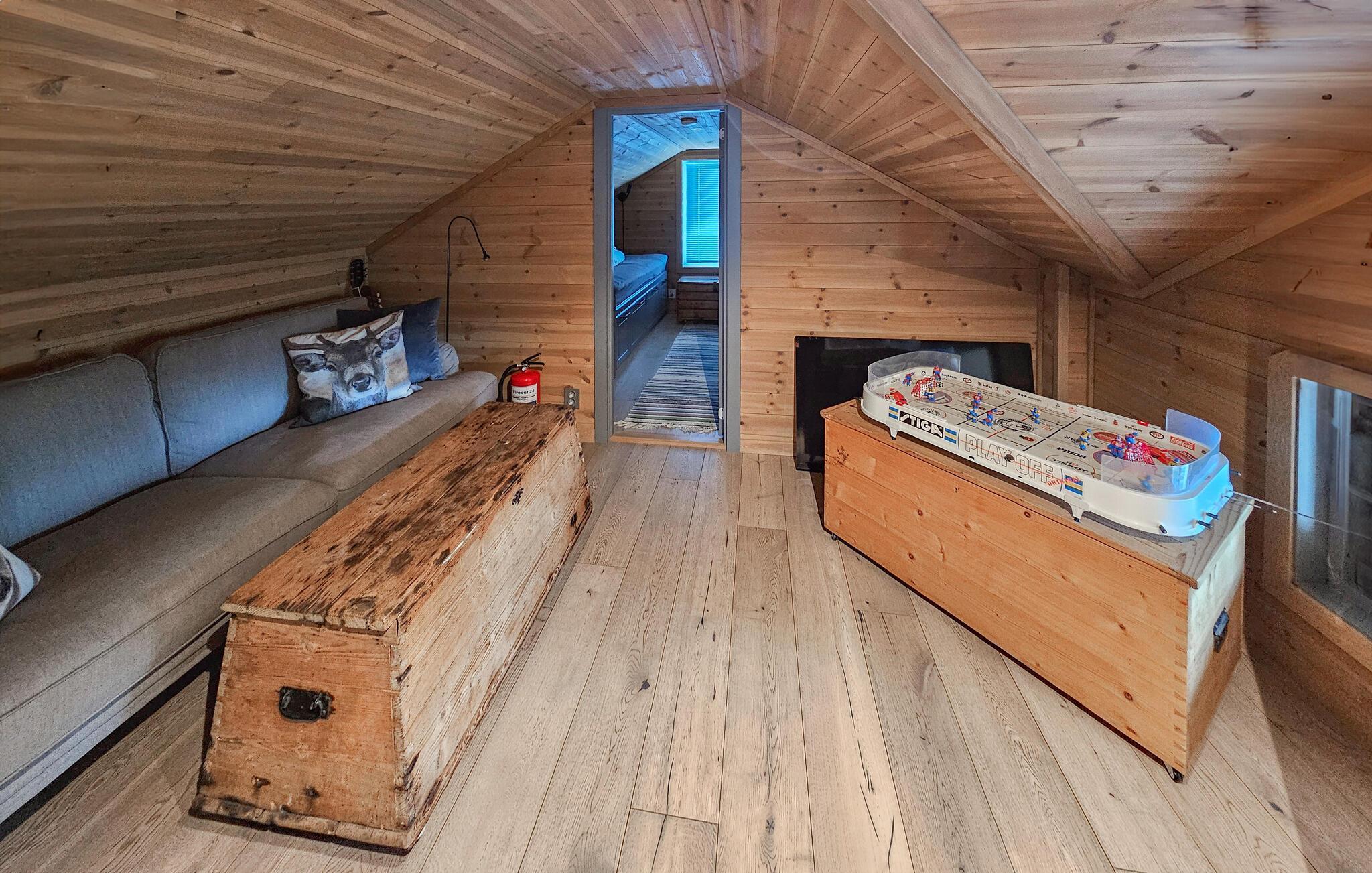 Dette charmerende træhus i Raje tilbyder jer en viInderlig kombination af tradition og moderne indretning. Den luftige stue, der er oversvømmet med naturligt lys, giver jer en viInderlig udsigt over det omkringliggende landskab og inviterer jer til at tilbringe hyggelige aftener med en stor pejs. Det åbne køkken skaber plads til at lave mad sammen, mens spisebordet er perfekt til familiens brætspil.
