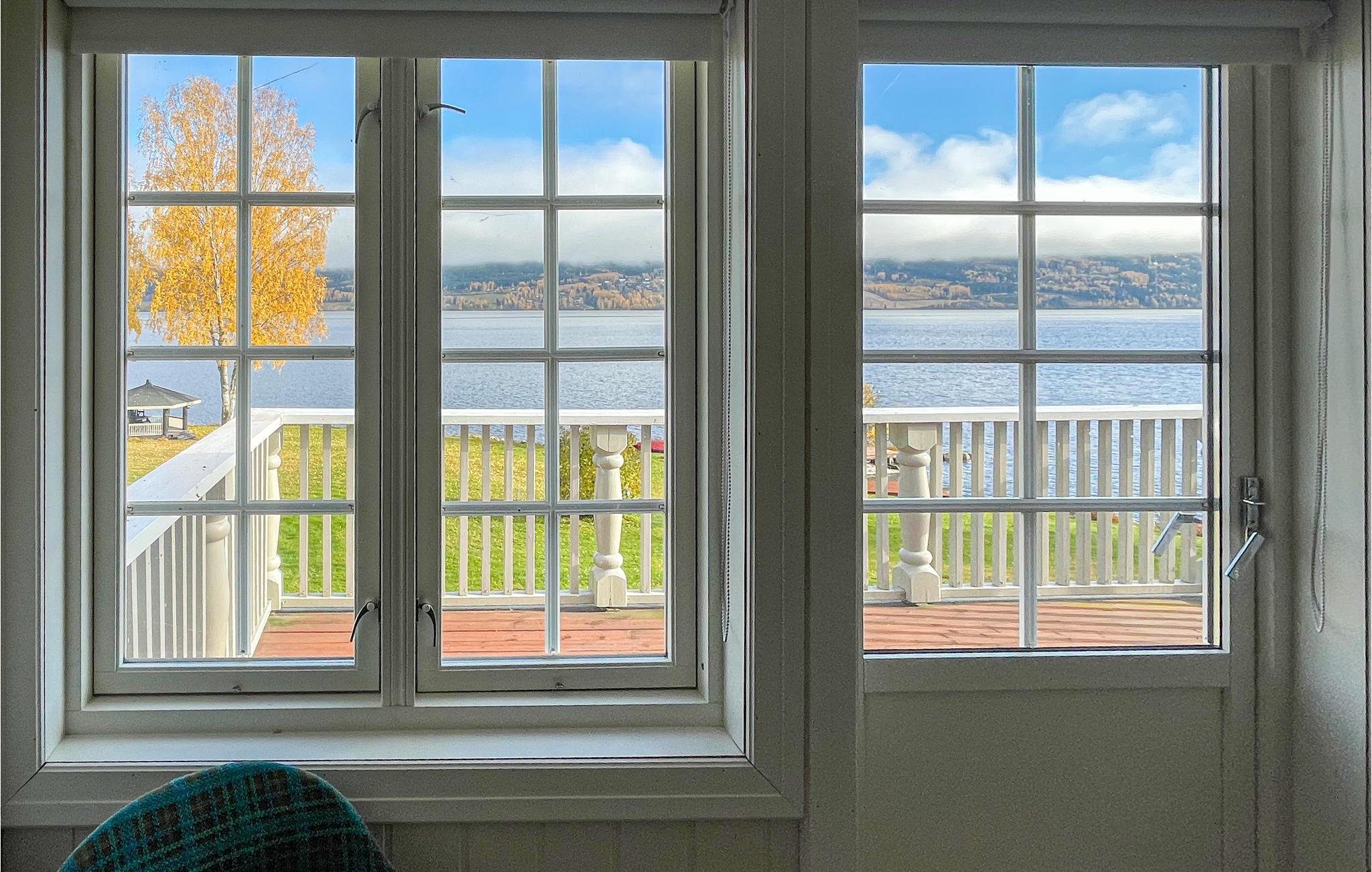 I kan også nyde udsigten udenfor på terrassen. Huset har egen badebro og badeområde, så man altid kan køle ned på varme dage I kan desuden leje kanoer hos ejeren og begive jer ud på Randsfjorden.
