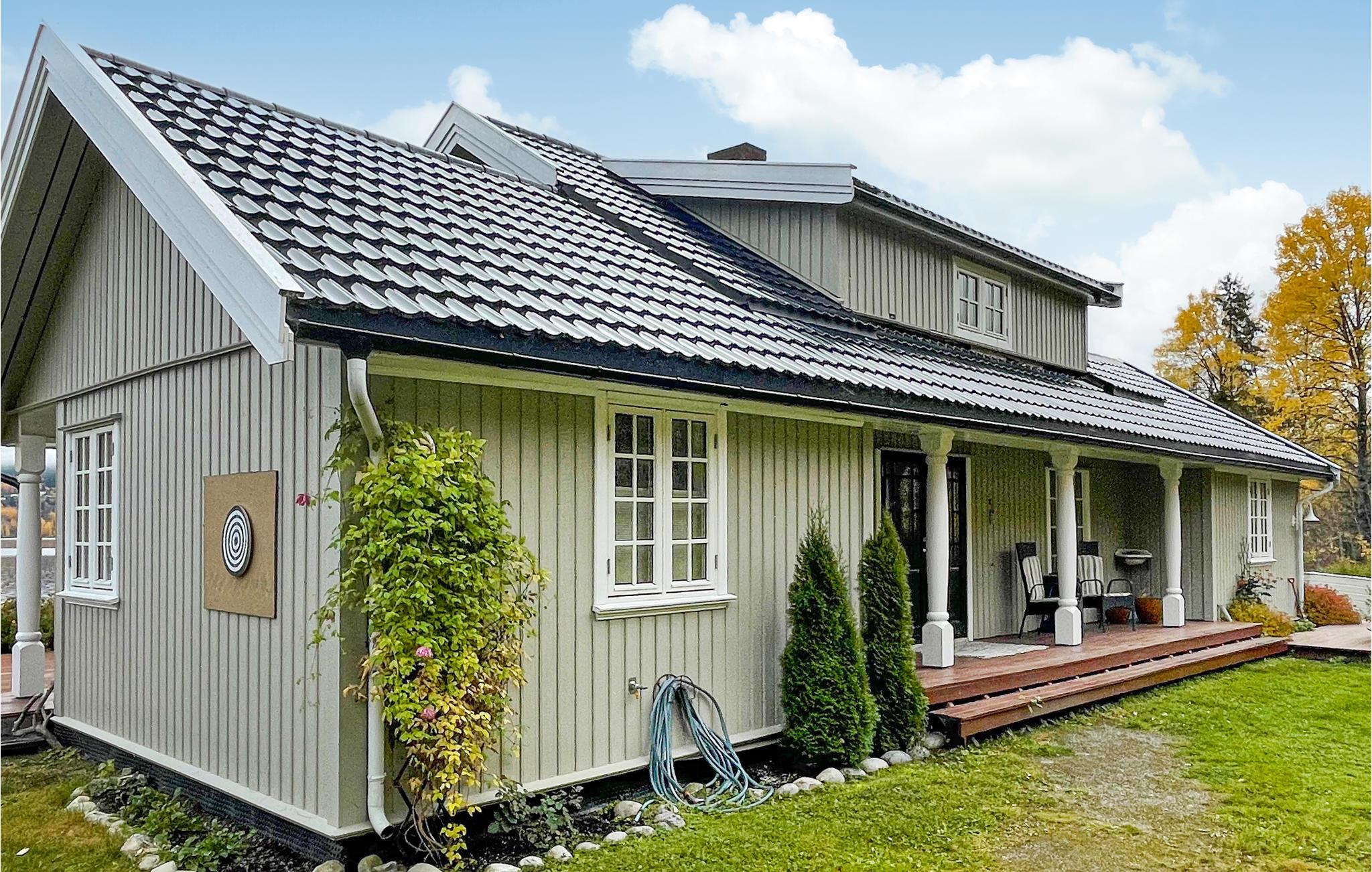 Dette hus er lyst og venligt indrettet og har en fantastisk beliggenhed i udkanten af ??skoven og Randsfjorden, som er Norges fjerdestørste sø. Huset har fine charmerende detaljer og er lidt i stil med et landsted. Her kan I slappe af og nyde den smukkeste panoramaudsigt efter en lang, aktiv dag. Sæt en god film på eller planlæg de næste dages oplevelser, mens ilden knitrer hyggeligt i pejsen.