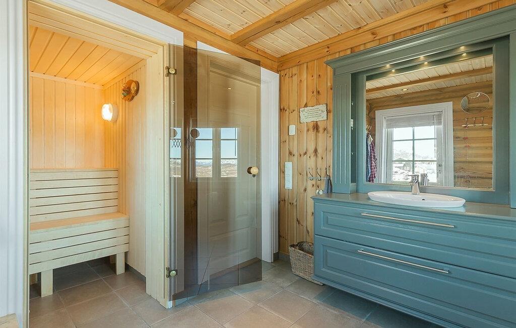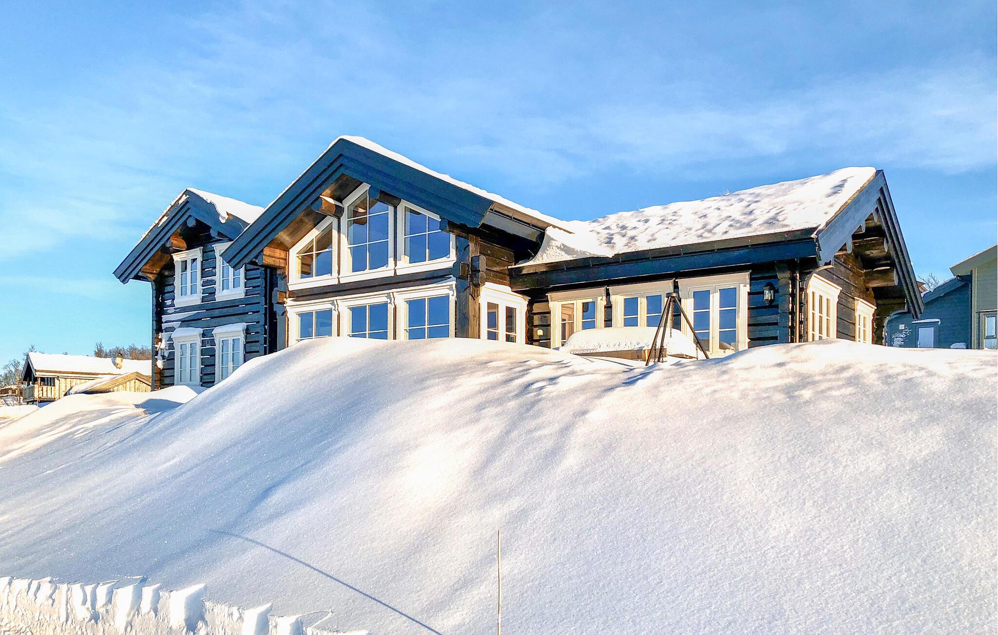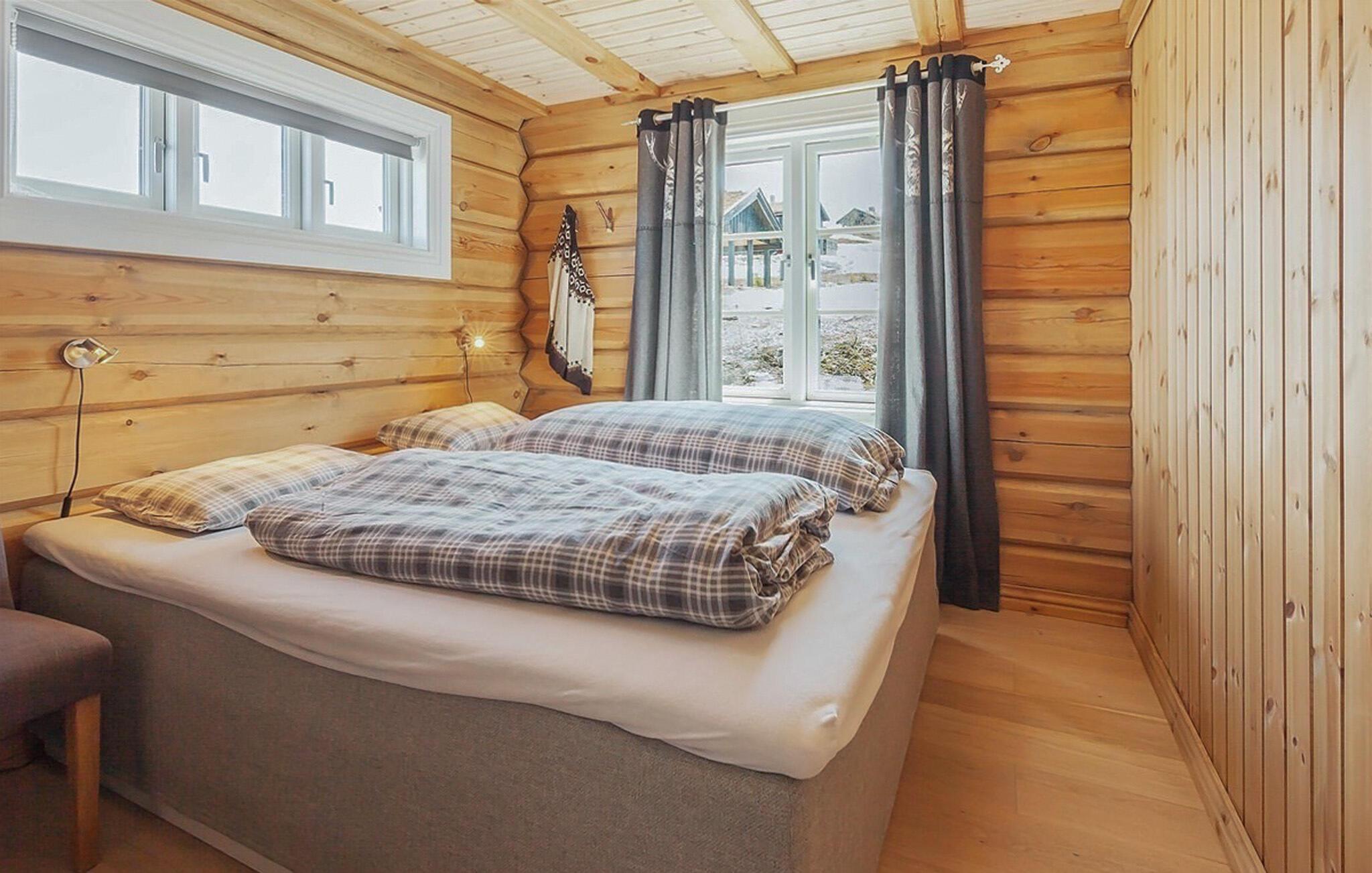 Dette indbydende feriehus ligger 1.000 meter over havets overflade og byder på en fantastisk udsigt over Raulandsfjell og Hardangervidda. Den hyggelige og smagfulde indretning og den varme atmosfære skaber det ideelle sted for en afslappende ferie. Sammen med jeres store familie kan I nyde jeres feriehverdag fuldt ud her, lave mad, spise eller lege sammen. Tilbring afslappende aftener i stuen, slap af foran pejsen eller nyd bjergluften på terrassen. Nærheden til alpine pister og langrendsløjper gør dette hjem perfekt til vinteraktiviteter.