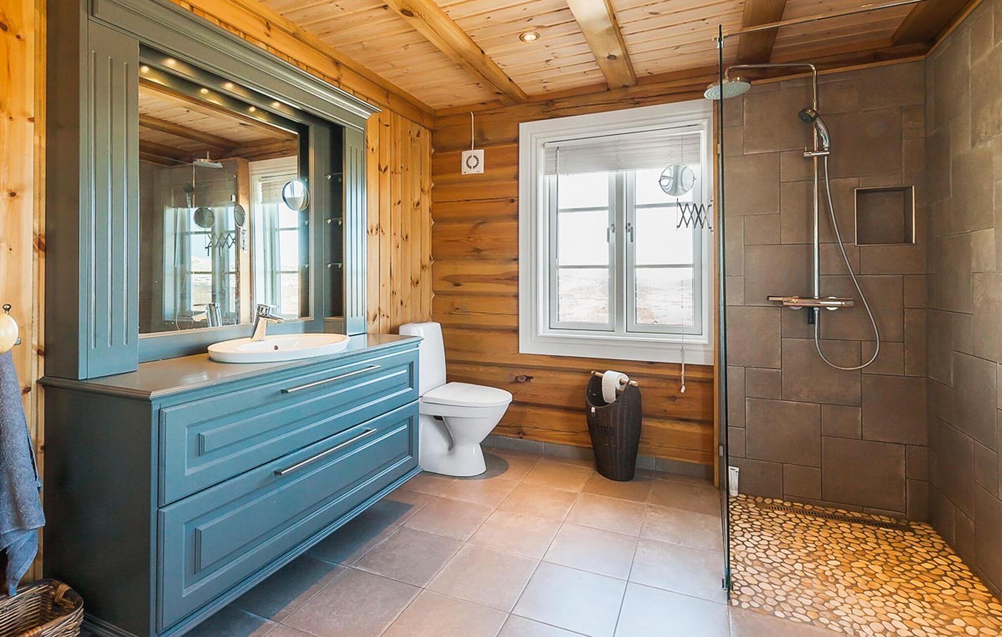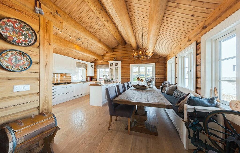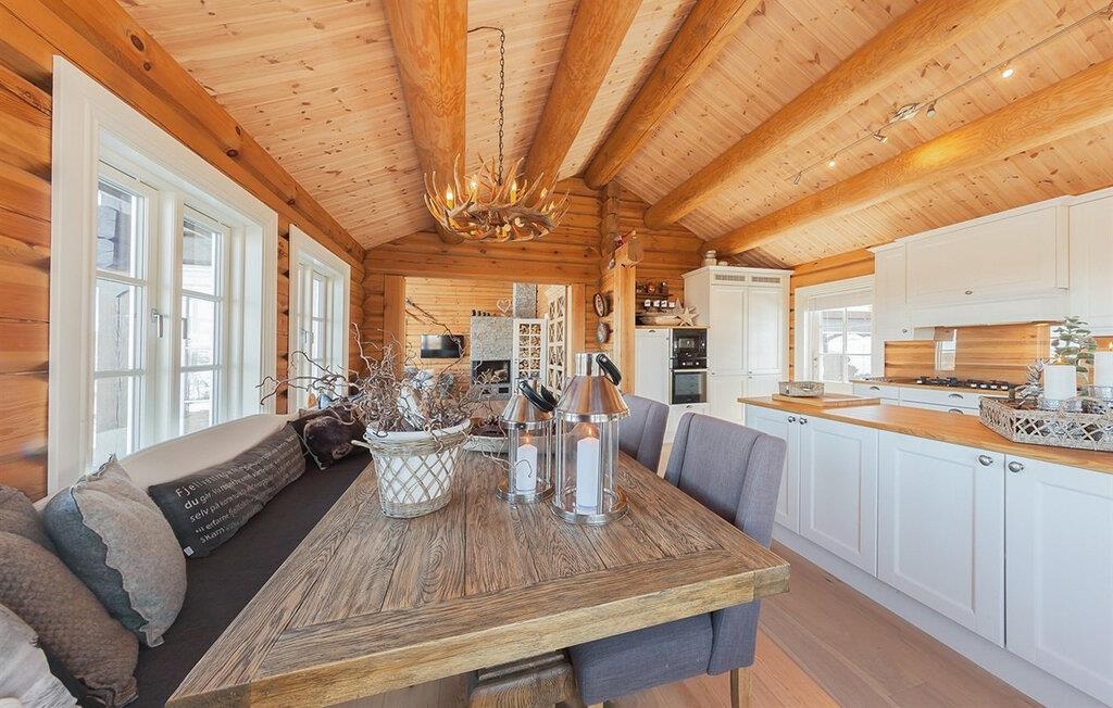Nyd den betagende udsigt i denne store og komfortable bjælkehytte i Vierli.