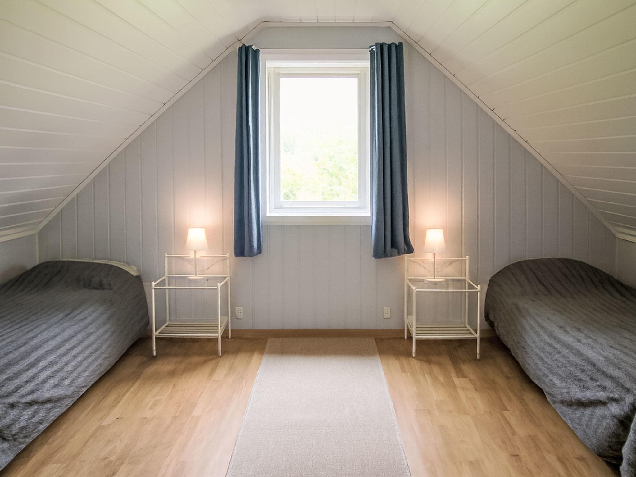 "Laksevågen", 3-room house 72 m2 on 2 levels. Bright, renovated in 2015, cosy furnishings: living/dining room with Scandinavian wood stove, dining table, TV and CD-player. Kitchen (oven, dishwasher, 4 ceramic glass hob hotplates, toaster, kettle, microwave, freezer, electric coffee machine) with dining nook. Shower/WC. Upper floor: 1 room with sloping ceilings with 3 beds (75 cm, length 200 cm). 1 room with sloping ceilings with 2 beds (75 cm, length 200 cm). Forced-air heating. Wooden floors. Beautiful view of Bjørnafjord. Facilities: washing machine, baby cot. Please note: non-smoking house. Smoke alarm, fire extinguisher. Freezer approx. 300 l. 924531169
