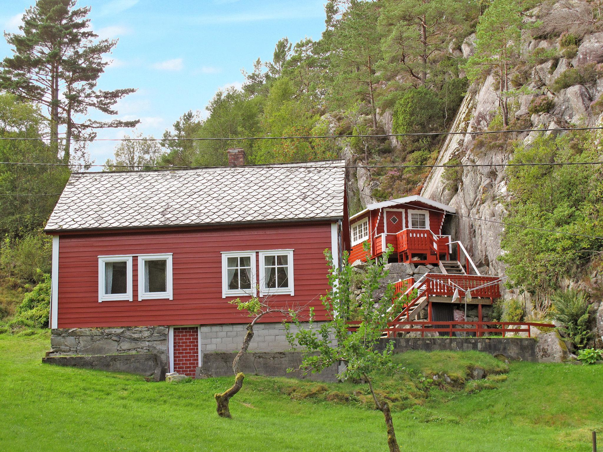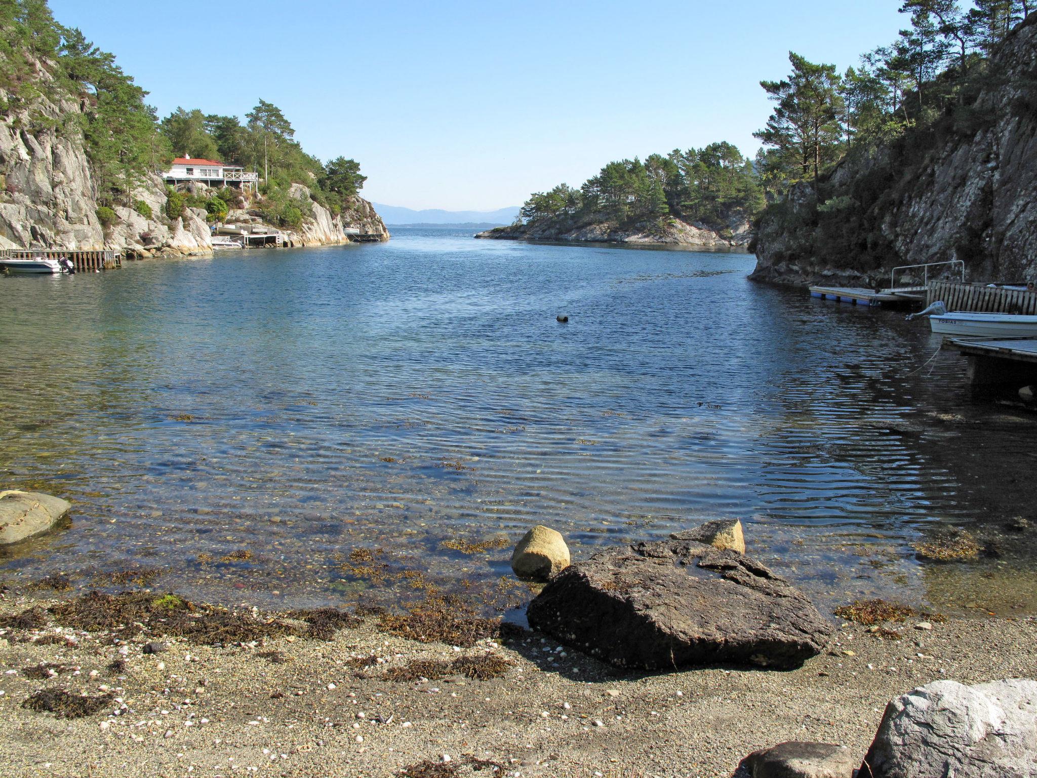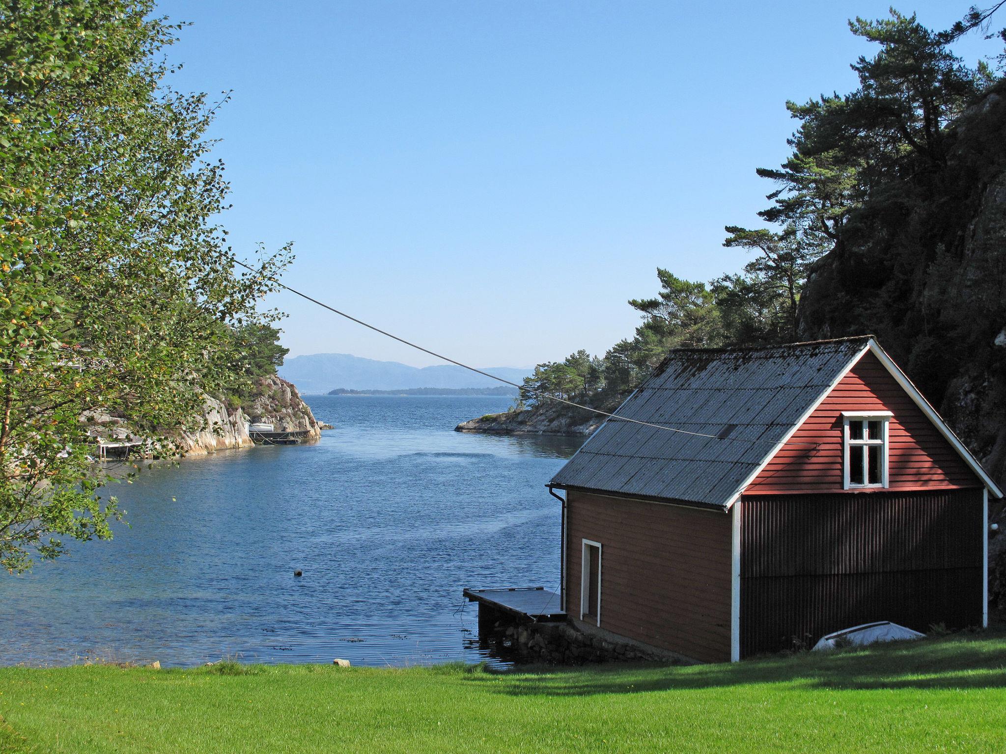Certified fishing house "Laksevågen", 11 m a.s.l.. 900 m from the centre of Bruntveit/Reksteren, 26 km from the centre of Våge, 73 km from the centre of Bergen, in a secluded position on a slope, 50 m from the sea, 50 m from the fijord. Fish-processing table. Private: property with meadow. Patio, garden furniture, barbecue, bathing place, fish-processing table. Motor boat (on order), parking at the house at 25 m. Parking space or garage only for small to medium-sized cars. Shop 900 m, bus stop "Bruntveit" 700 m, railway station "Bergen" 73 km, ferry "Bergen" 73 km, pebble beach 50 m (small), lake Storevatn 3 km. Fishing possibilities 50 m. Please note: private mooring.