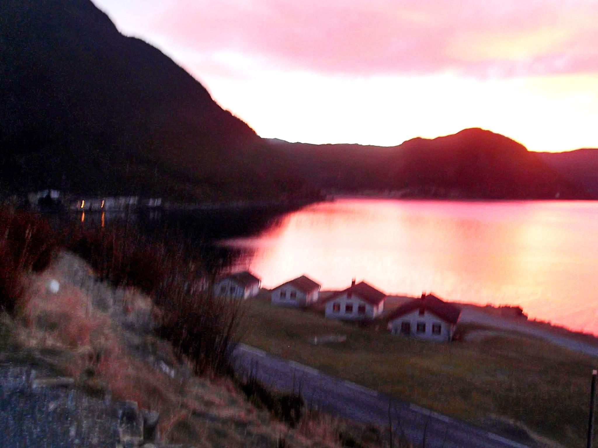 Fin hytte med nydelig utsikt og 8 kvm stor åpen terrasse, beliggende til ytterst til høyre sett fra sjøen/fjorden.