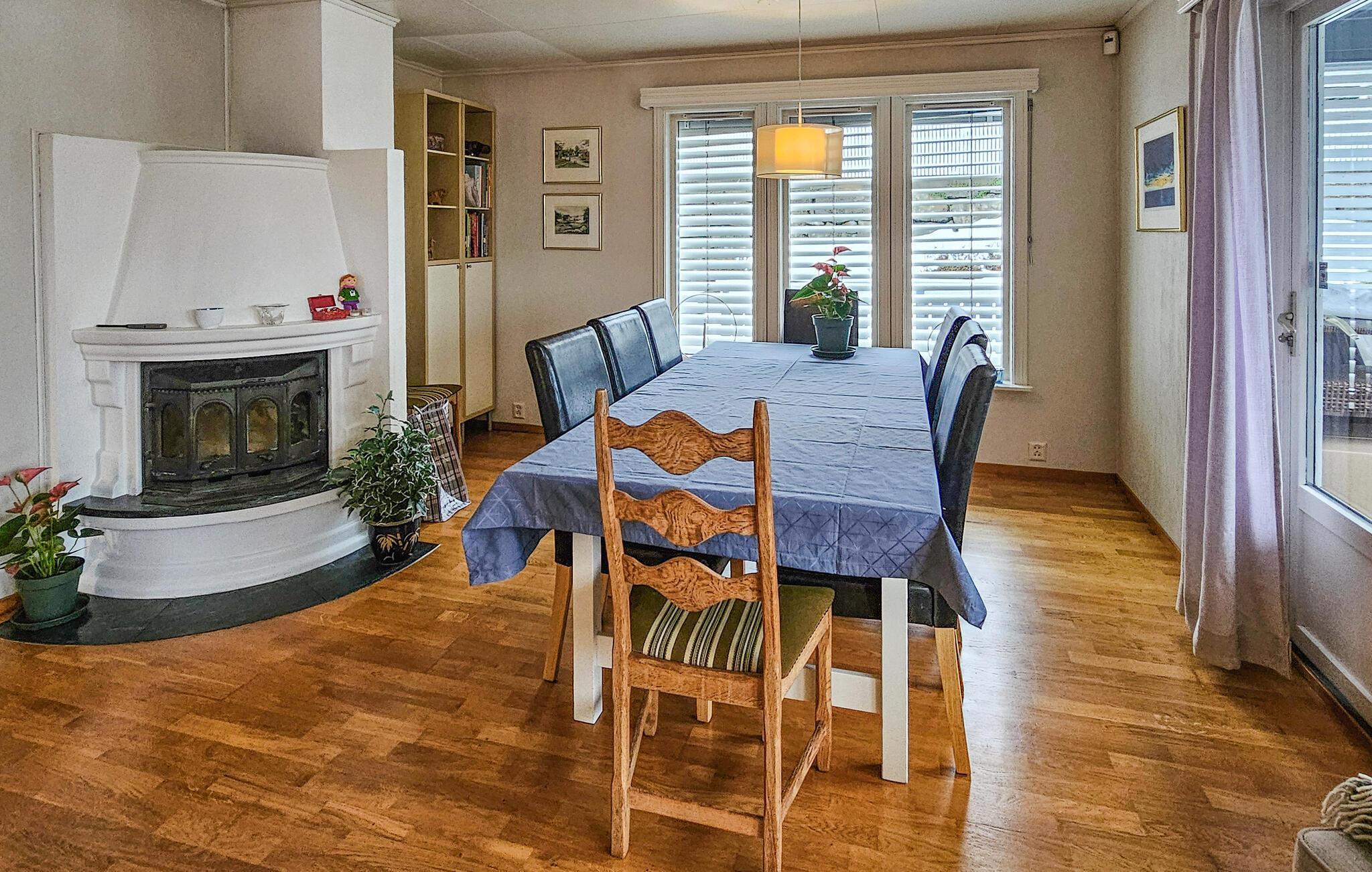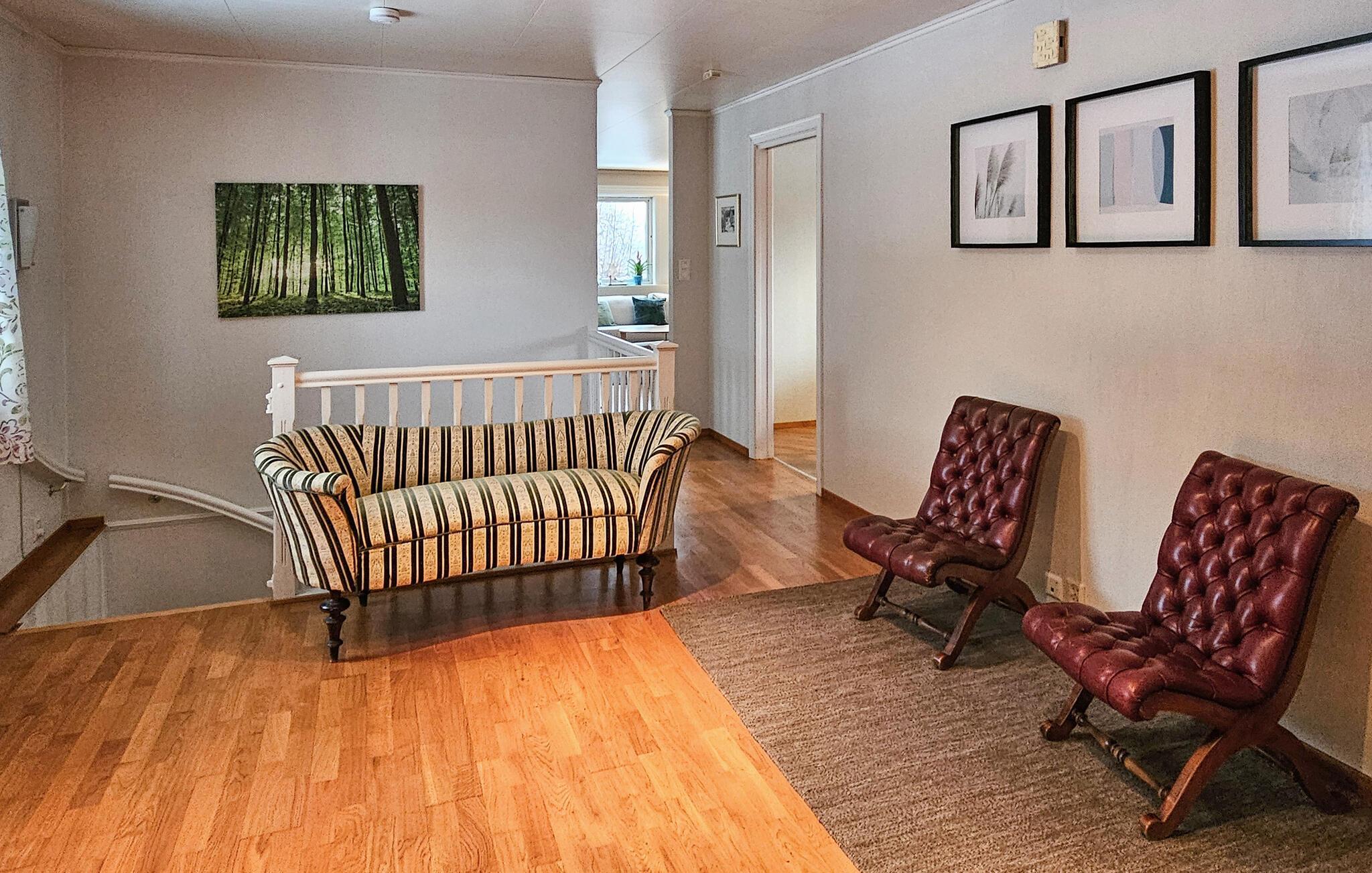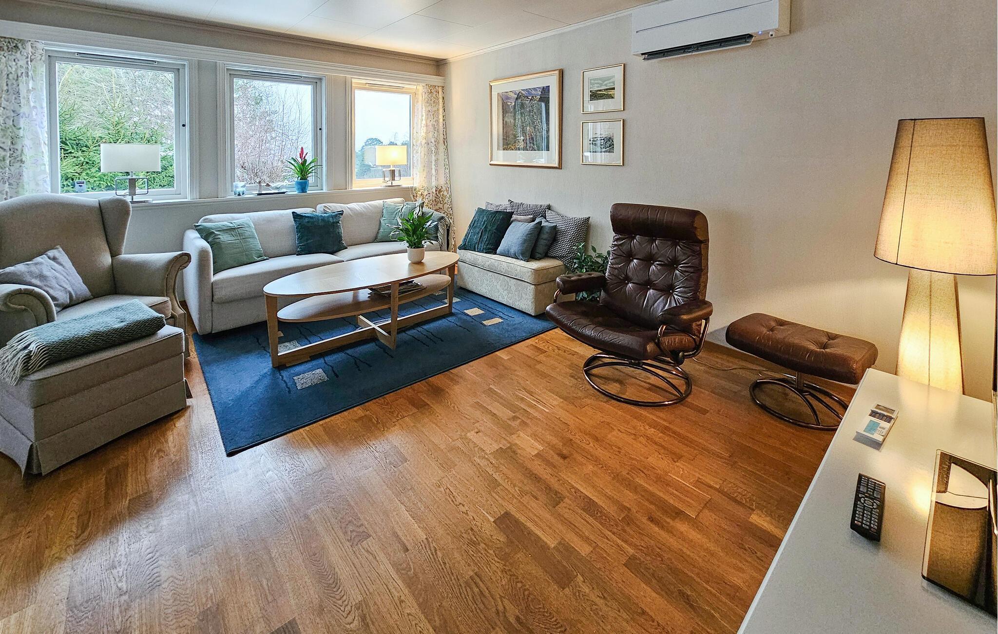 Dette charmerende feriehus, lige syd for Sandefjord, tilbyder jer en ideel blanding af komfort, natur og afslapning. Uanset om I planlægger en badeferie, udforsker kystlandskabet eller bare vil slappe af, er I kommet til det rette sted. Husets indretning er hyggeligt og stilfuldt indrettet. Den lyse opholdsstue lægger op til gode hyggestunder med komfortable sofaer, et stort fjernsyn og kærlige detaljer. Nyd den varme atmosfære ved brændeovnen i spisepladsen, og tilbring hyggelige aftener sammen med familien eller venner. Det veludstyrede køkken med en generøs arbejdsflade byder på alt, hvad I behøver for at tilberede lækre måltider. I den rummelige spisestue er der plads til fælles måltider.