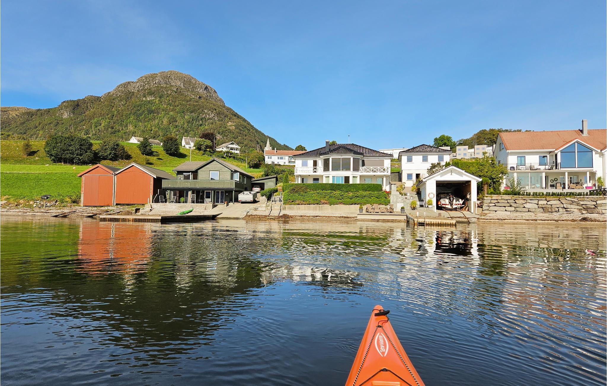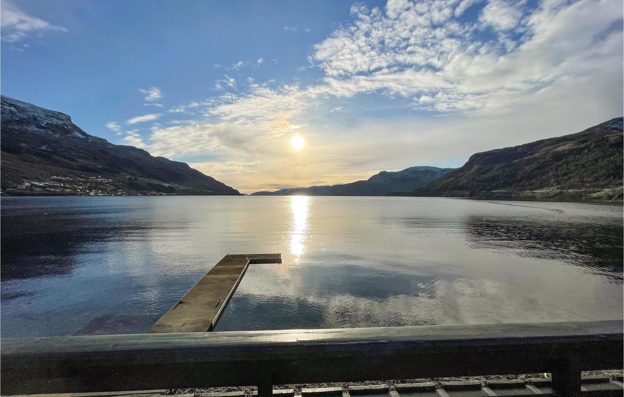 Hvis I elsker vandet, og hvis I elsker at fiske, er I kommet til det helt rette sted! I kommer til at bo lige ved den funklende Sandeidsfjord, hvor I finder flere gode fiske- og bademuligheder. Lejligheden, som ligger på en fælles grund ved stranden, bliver en hyggelig base for jeres familie. Her kan I trække jer tilbage og bare lade hverdagen blive derhjemme. Boligen er smukt oplyst af de mange vinduer, så I kan skue langt ud over fjorden, når I nyder jeres fælles måltider.