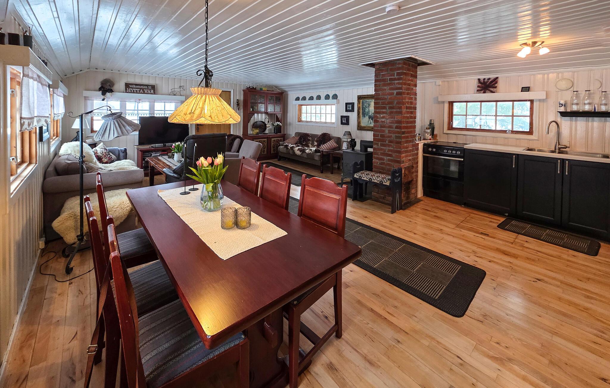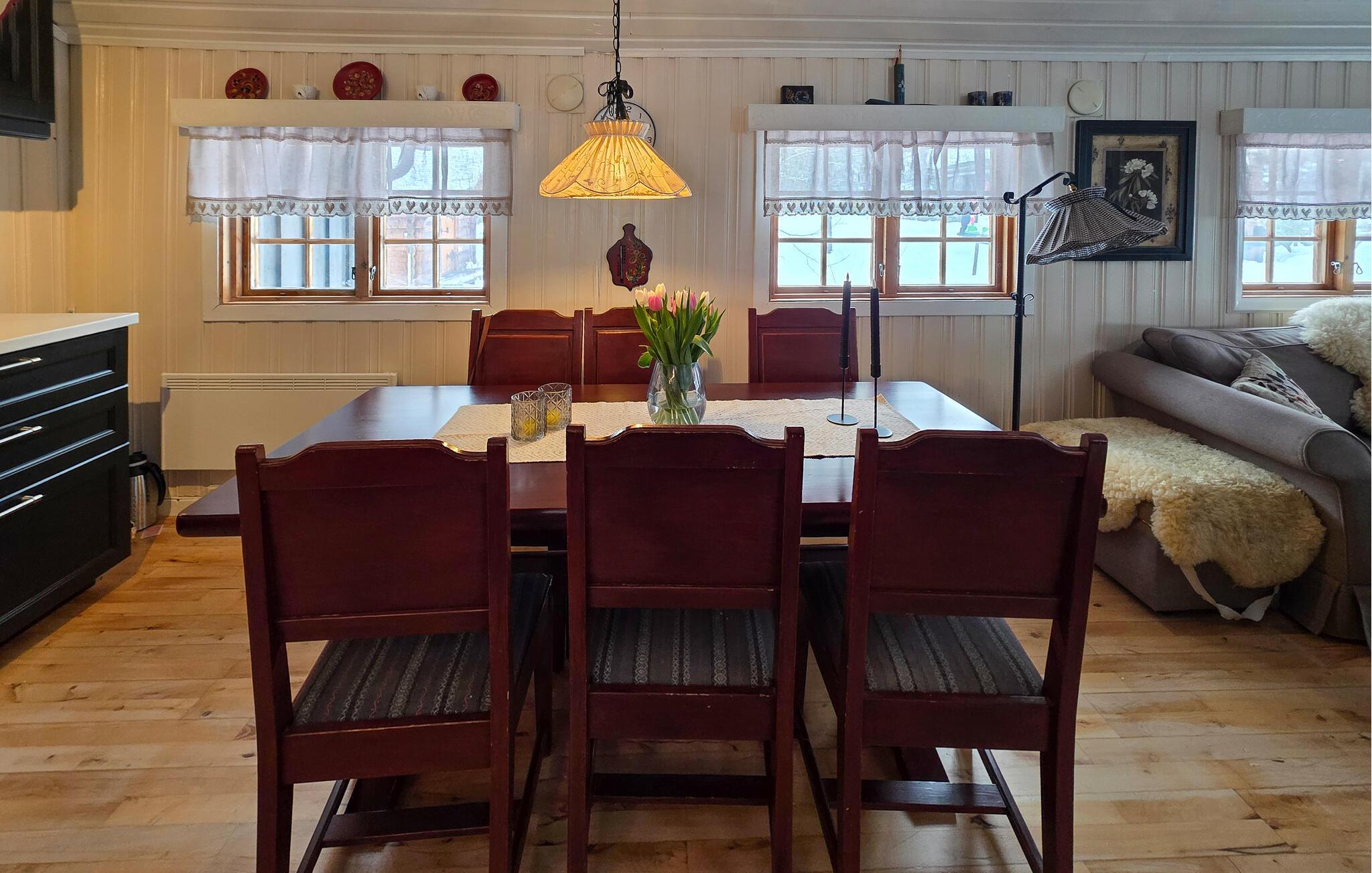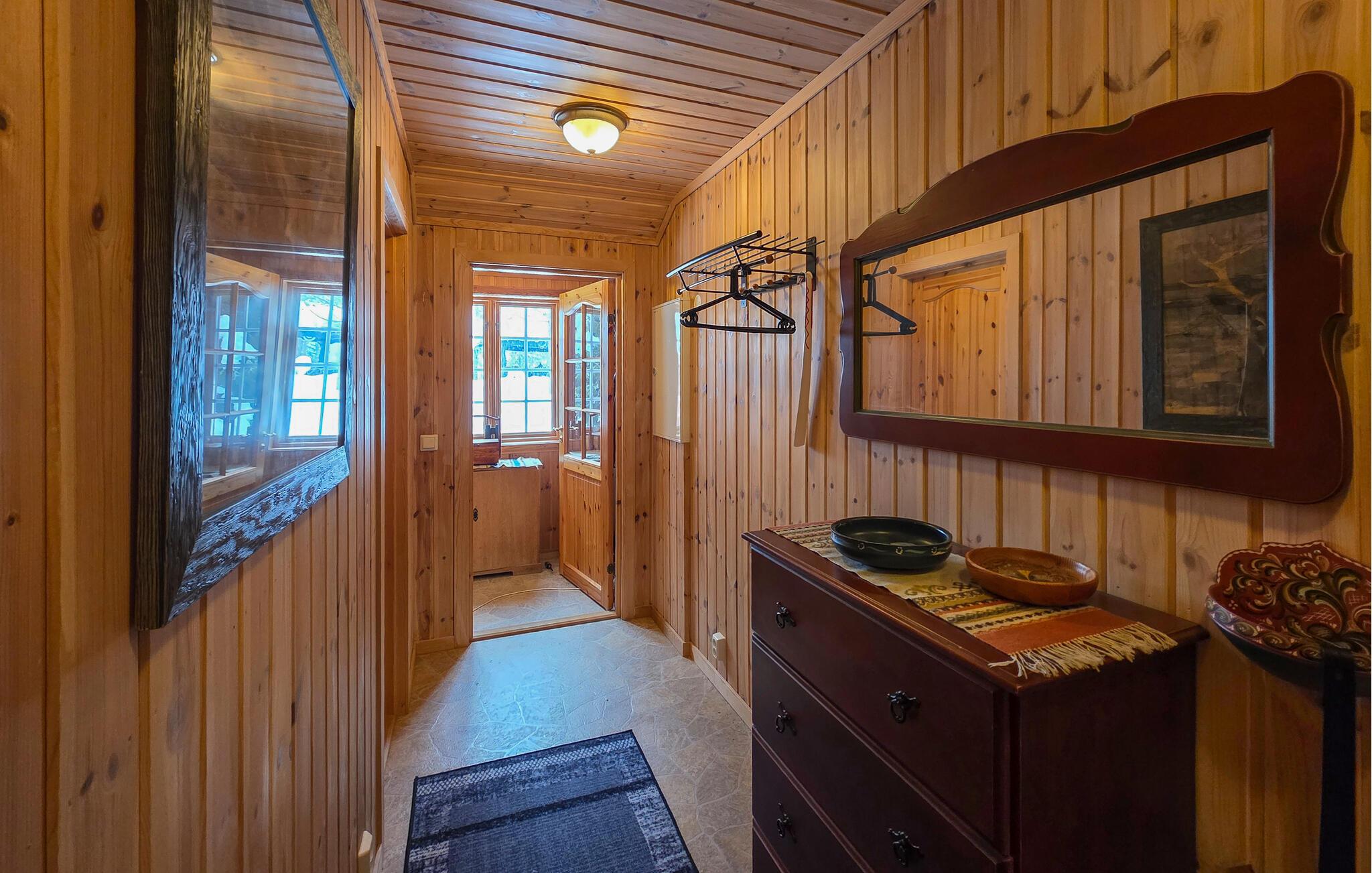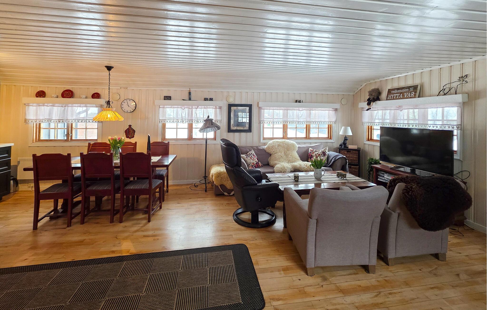 Træd indenfor og oplev den varme, autentiske atmosfære i denne hytte nær Sundsbarmvatnet. Den åbne opholdsstue er møbleret med komfortable sofaer og rustikke træmøbler. Sæt jer til rette ved brændeovnen og lyt til den knitrende ild. Find sammen omkring spisebordet og nyd måltiderne sammen. Det veludstyrede køkken har alt, hvad I behøver for at tilberede jeres egne måltider. Efter en aktiv dag kan I forkæle jer selv med den beroligende varme fra saunaen med træpaneler og lade jeres muskler slappe af.