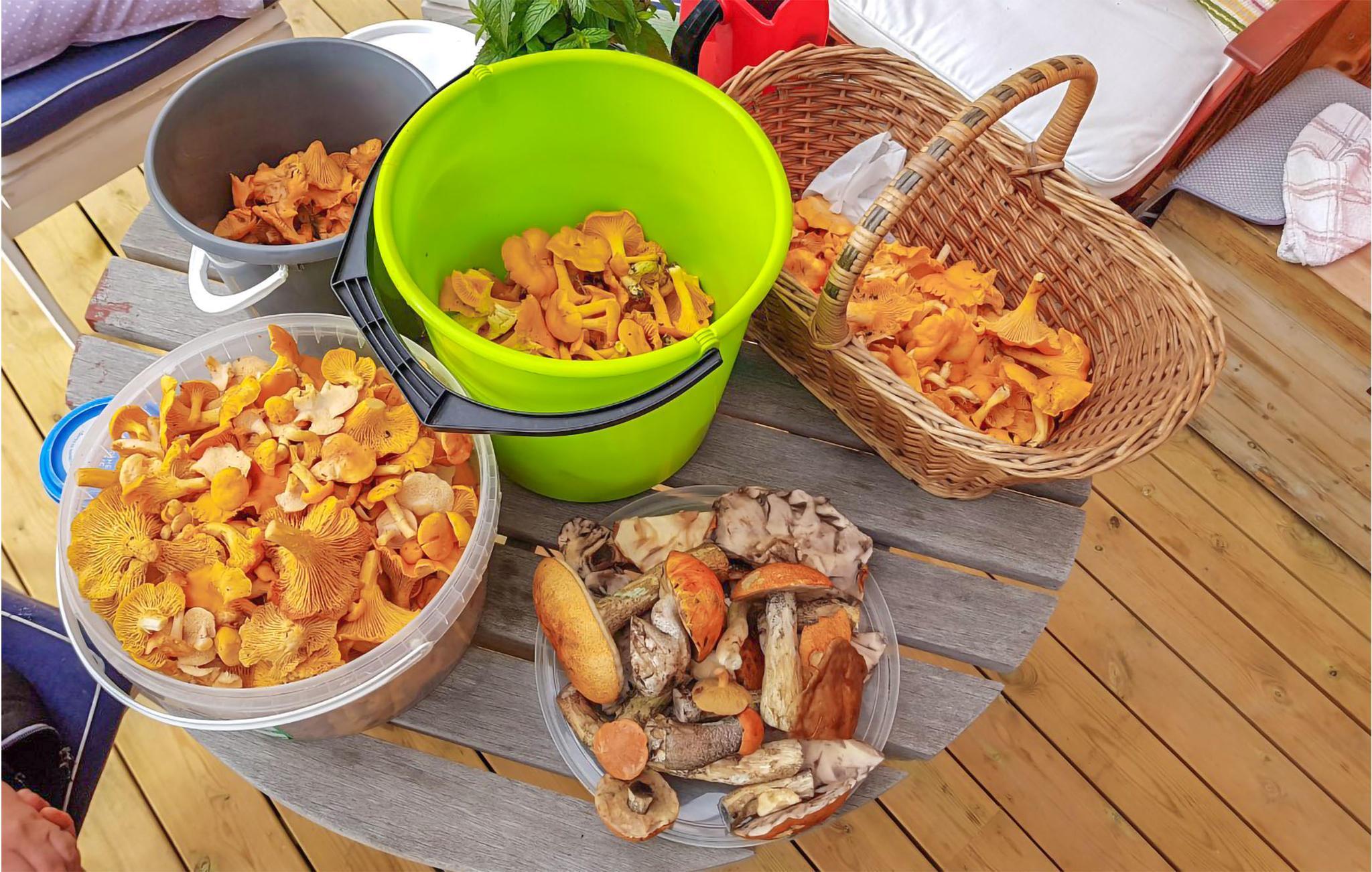 I sommermånederne kan I også nyde dagens måltider på den overdækkede terrasse og lægge jer fast på aktiviteter til dagen. I finder mange dejlige strande i nærheden. Når I er ude at gå, kan I samle bær og svampe og bruge dem i dagens måltider. I kan også leje kanoer og robåde. Her kan I bade og fiske lige neden for feriehuset. Omkring feriehuset kan I opleve egern og fugle.