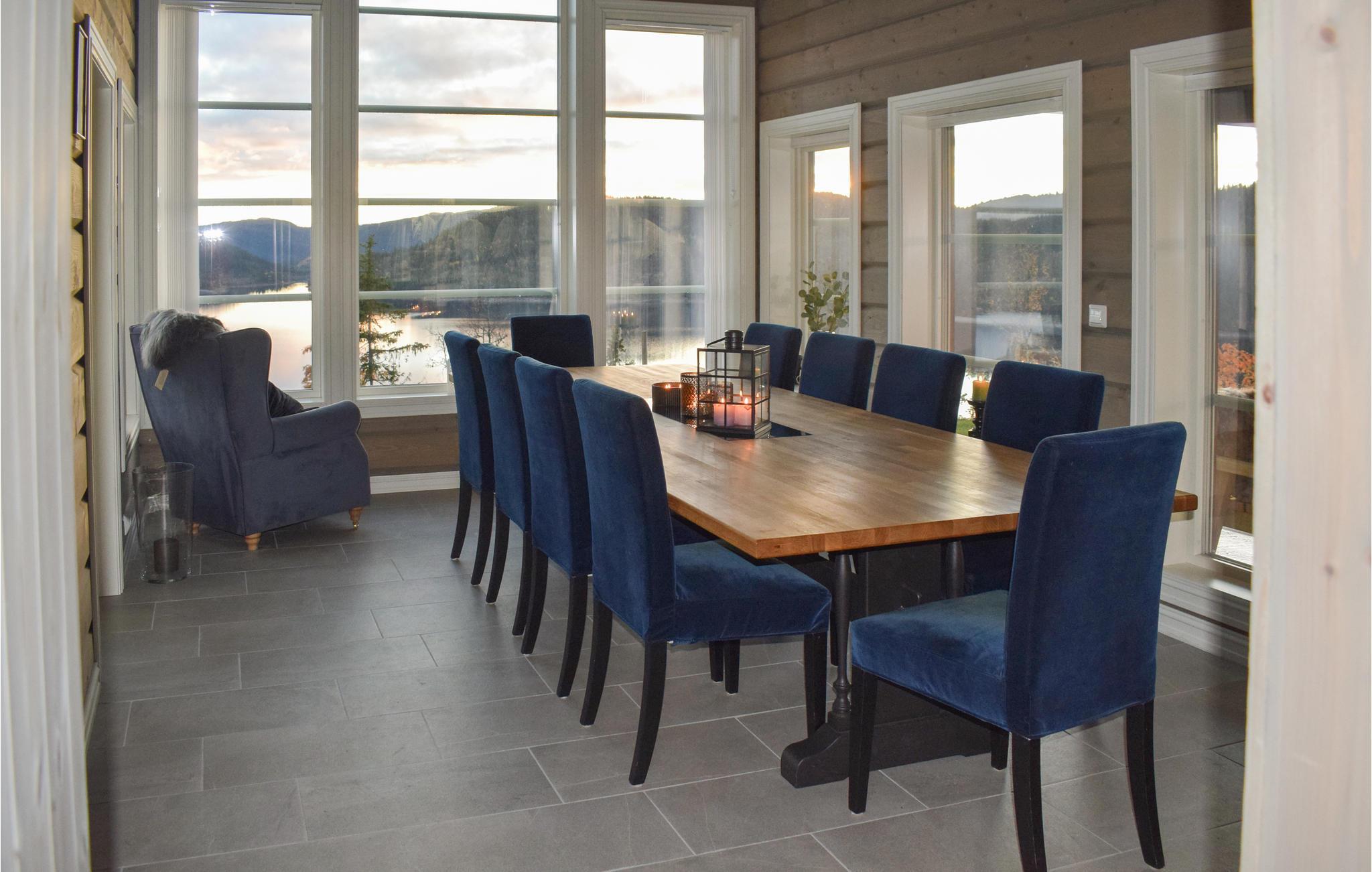Velkommen til dette rummelige feriehus, der er det ideelle hjem for en storfamilie eller familier, der rejser sammen. Møblering og udstyr i det smukke hus er smagfuldt og udsøgt. I kan glæde jer til, at I har en fantastisk udsigt over landskabet eller søen fra alle rum. Hvis I ikke vil forlade huset, vil I og jeres børn finde mange måder at have det sjovt på, her er nemlig både elektroniske spil og brætspil. I kan føle jer godt tilpas på den store veranda med en udendørs pejs eller i det varmende spabad og sauna indenfor.
