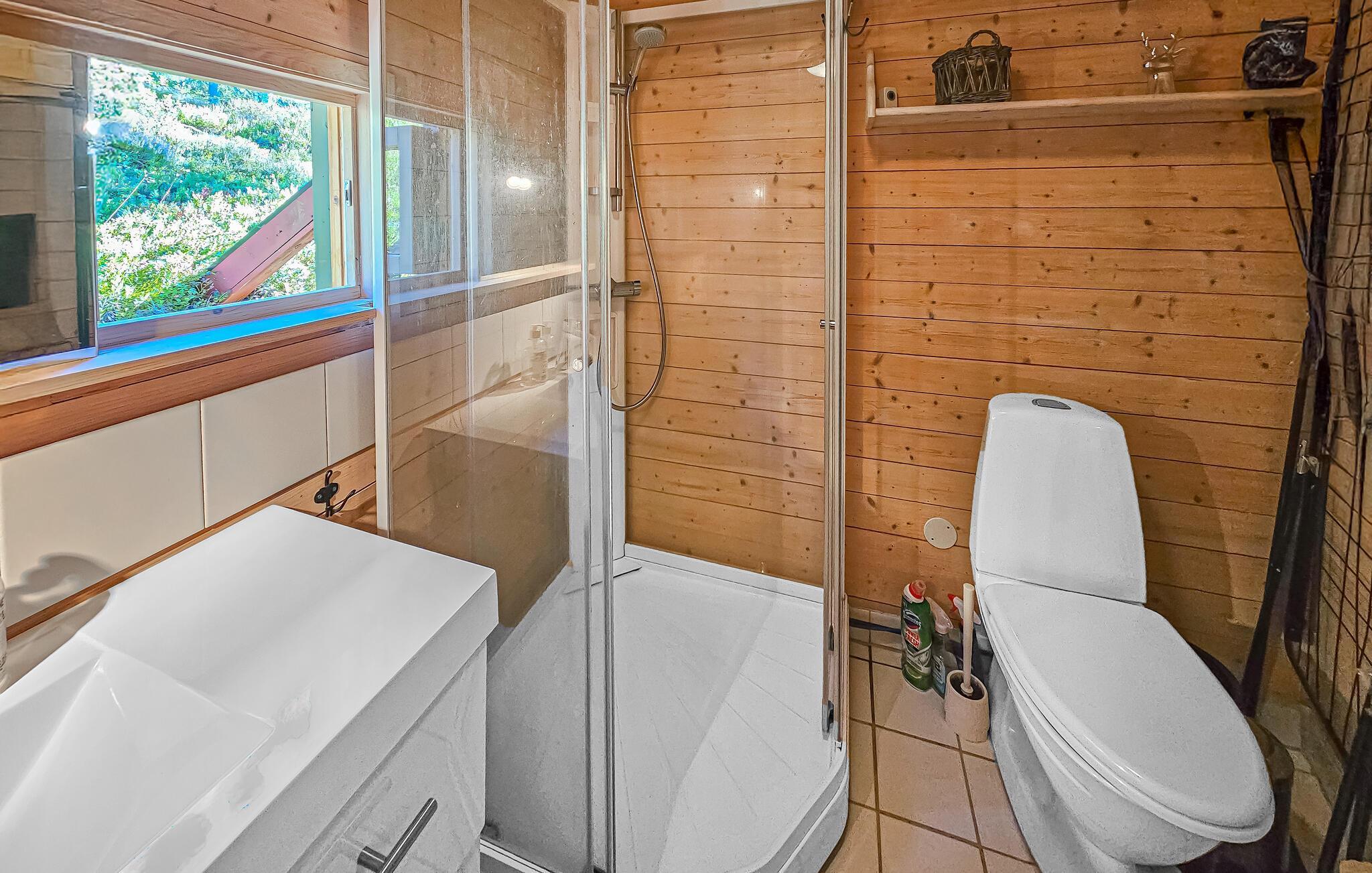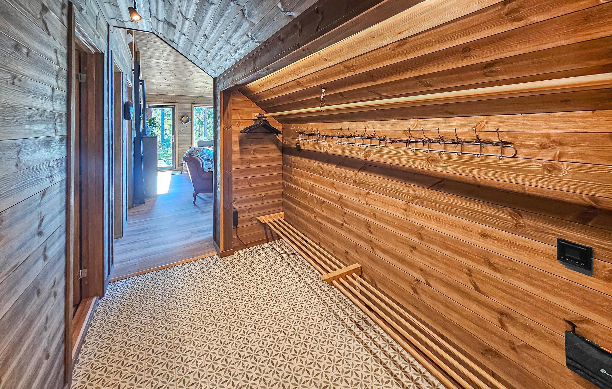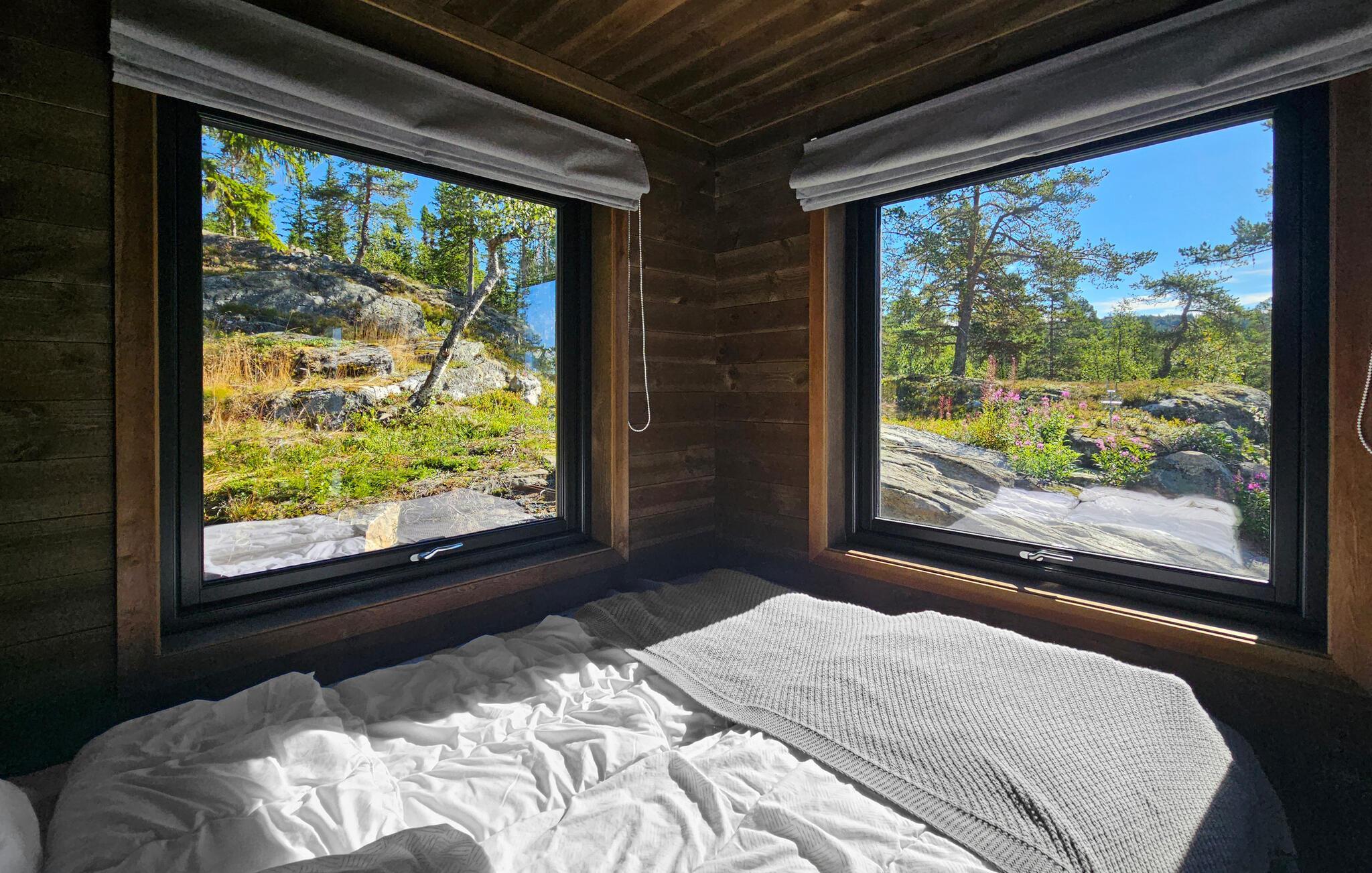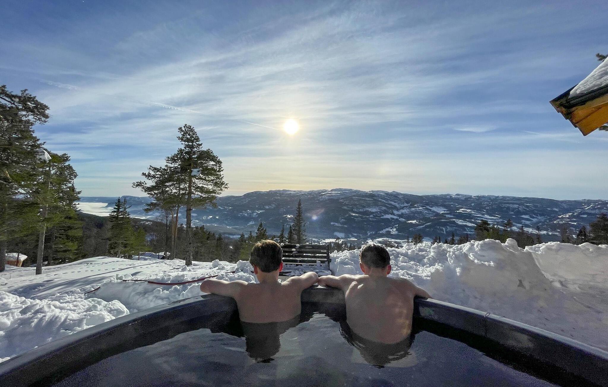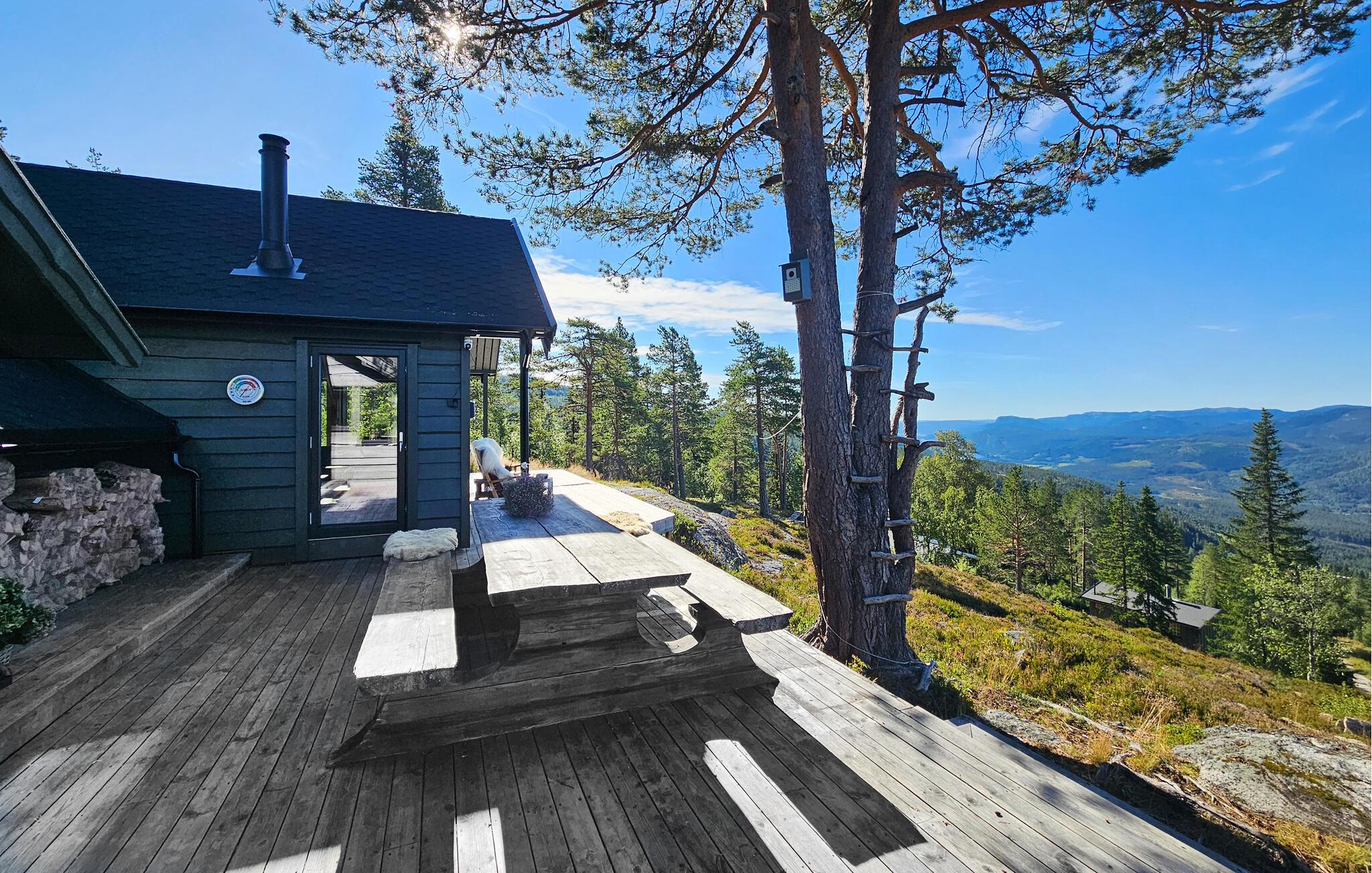 Udenfor kan I nyde den vidtrækkende udsigt over naturen. Også i vildmarksbadet kan I lade blikket glide over bjergene.