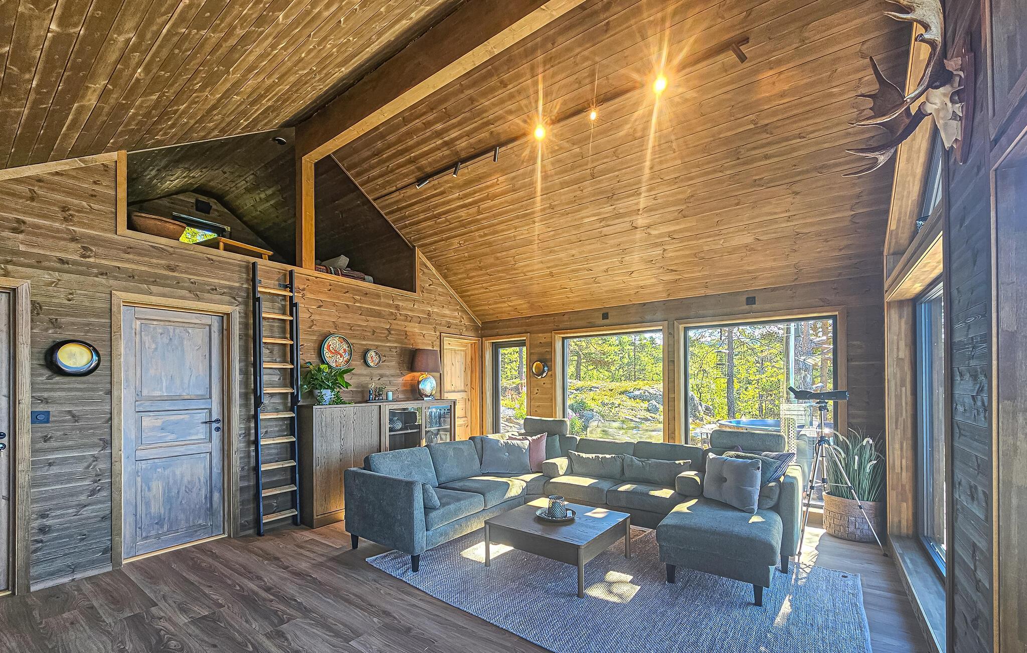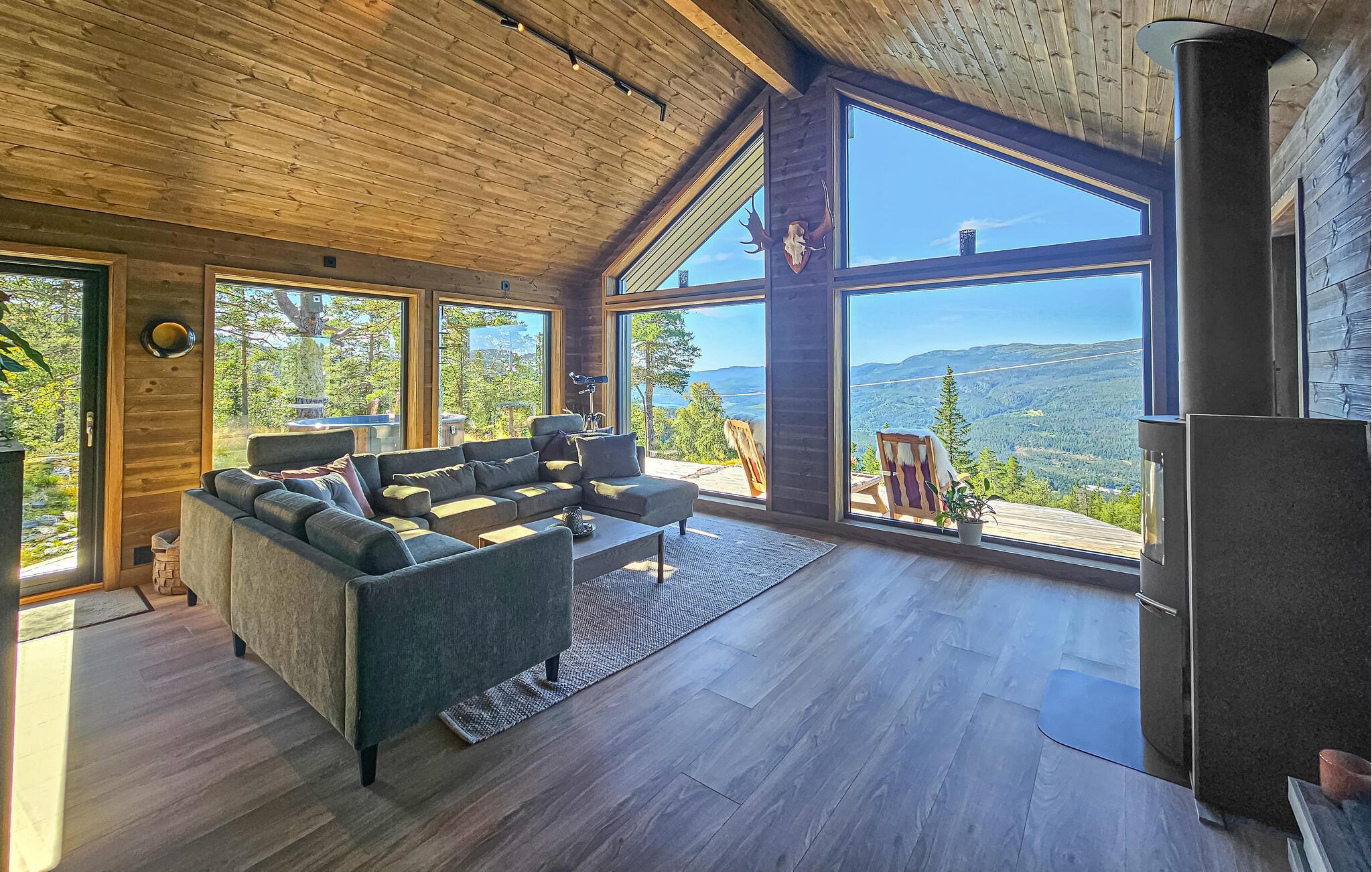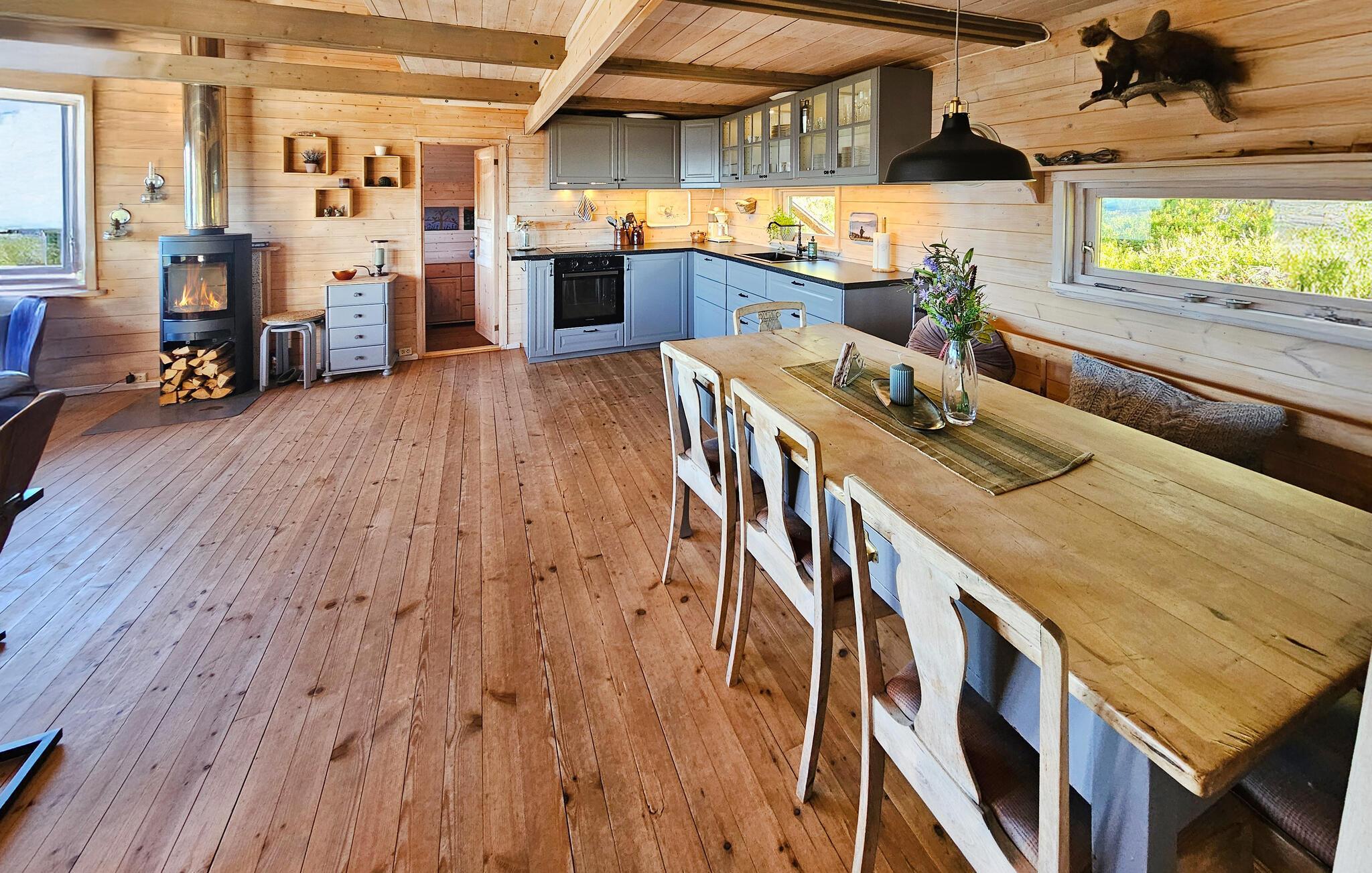 Det hyggelige hus er som skabt til en afslappende pause fra hverdagen. Store vinduespartier, en komfortabel sofagruppe og et moderne, veludstyret køkken skaber en atmosfære, hvor I hurtigt kan slappe af og finde ny energi. Nyd en kop kaffe, mens I beundrer den storslåede udsigt over landskabet. På kølige dage kan I tænde op i brændeovnen og vælge mellem et stort udvalg af brætspil.