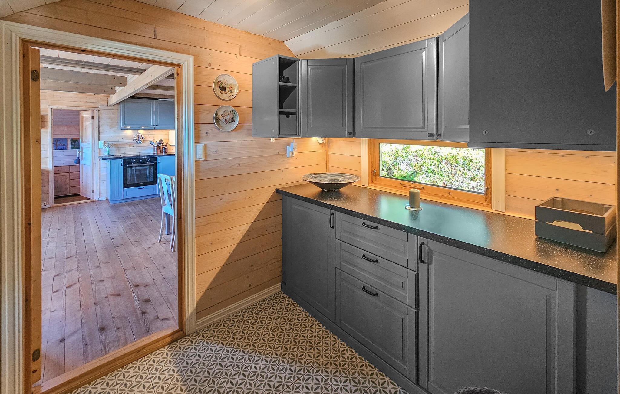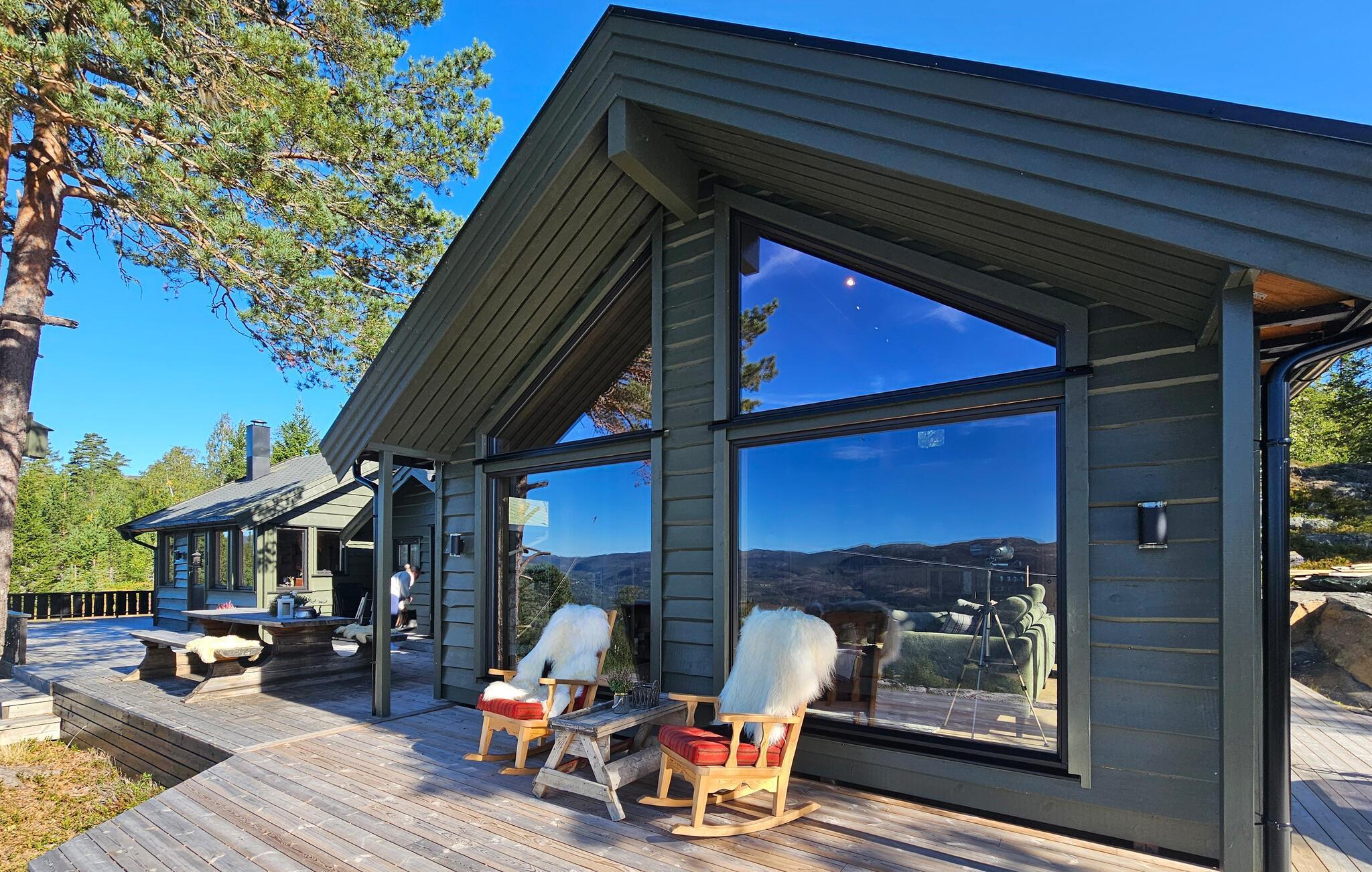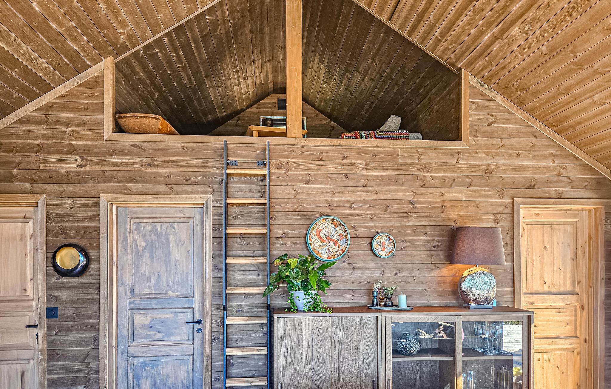 Det hyggelige hus er som skabt til en afslappende pause fra hverdagen. Store vinduespartier, en komfortabel sofagruppe og et moderne, veludstyret køkken skaber en atmosfære, hvor I hurtigt kan slappe af og finde ny energi. Nyd en kop kaffe, mens I beundrer den storslåede udsigt over landskabet. På kølige dage kan I tænde op i brændeovnen og vælge mellem et stort udvalg af brætspil.