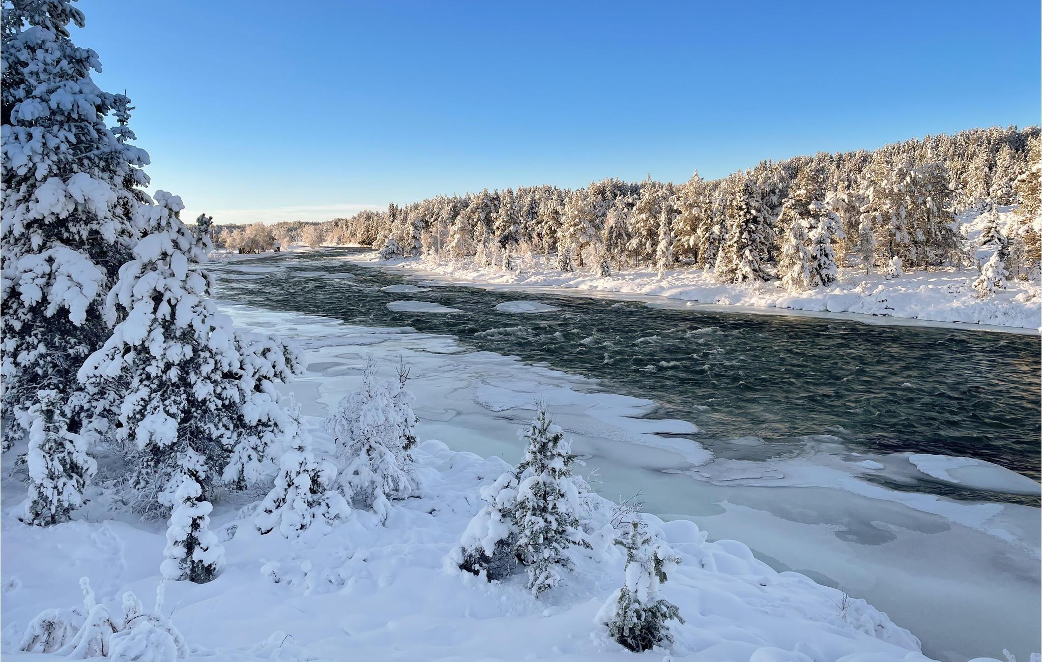 feriehuset har et meget veludstyret køkken, så der er gode madlavningsfaciliteter. Nyd de lyse nætter på verandaen, mens floden risler længere nede. Der er også højttalere udenfor på verandaen, så I kan sætte jeres egen musik på. Ved feriehuset er der kano og to cykler, som gerne må benyttes.