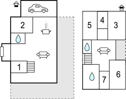 Soveværelse (nr. 6) - 1 Soveplads. (Enkeltseng(e)). 2 Sovepladser. (Dobbeltseng(e)).