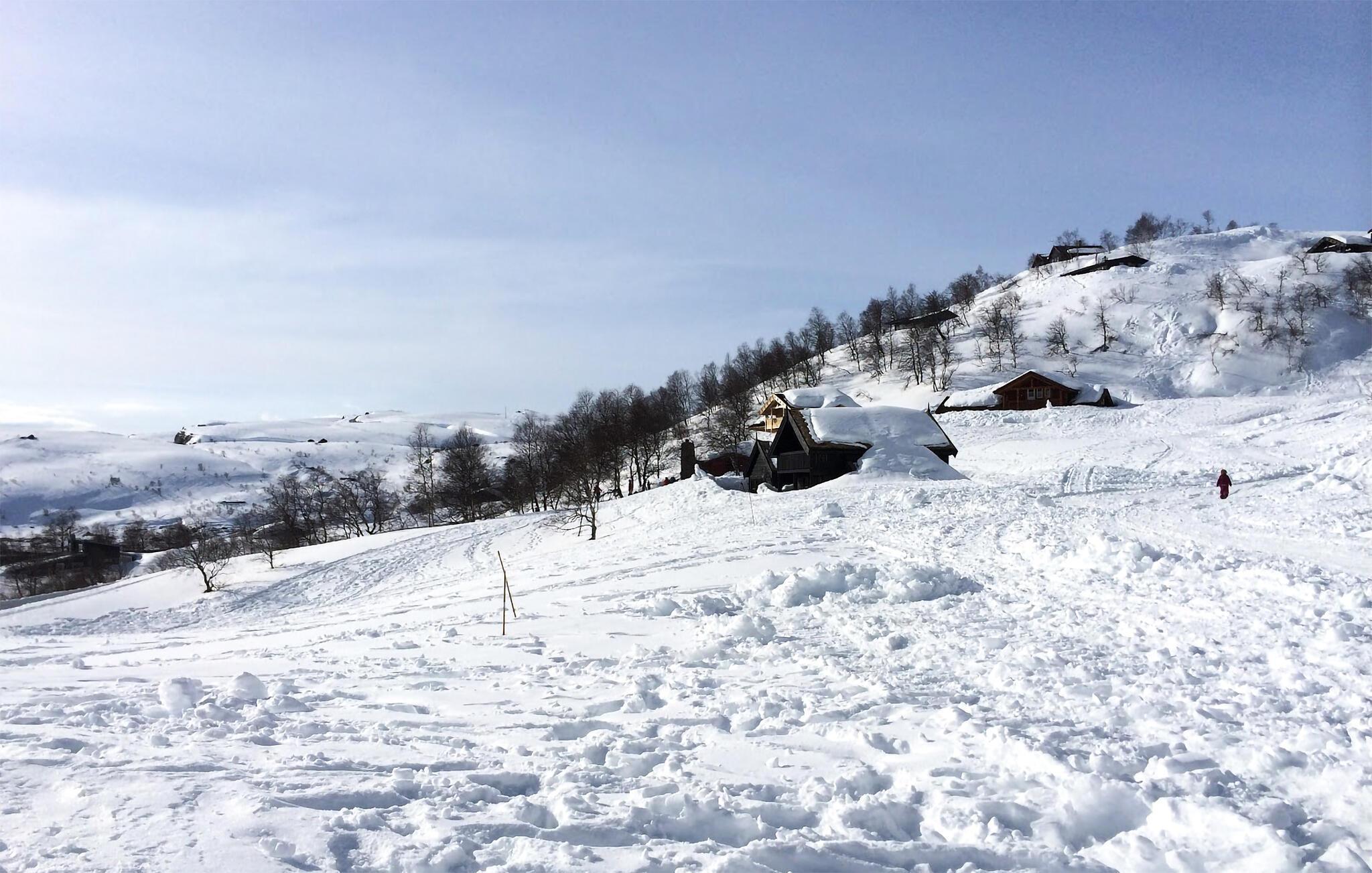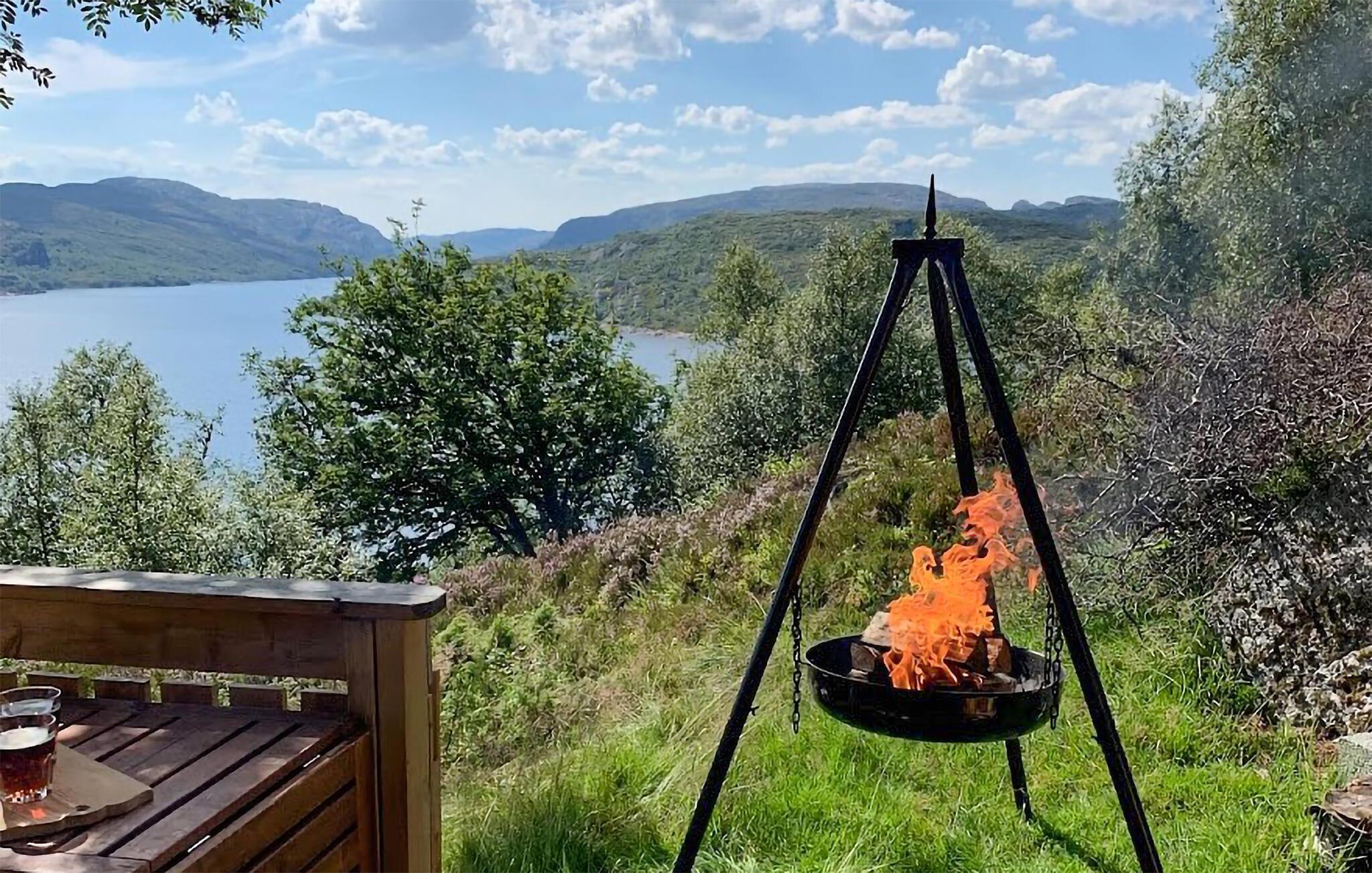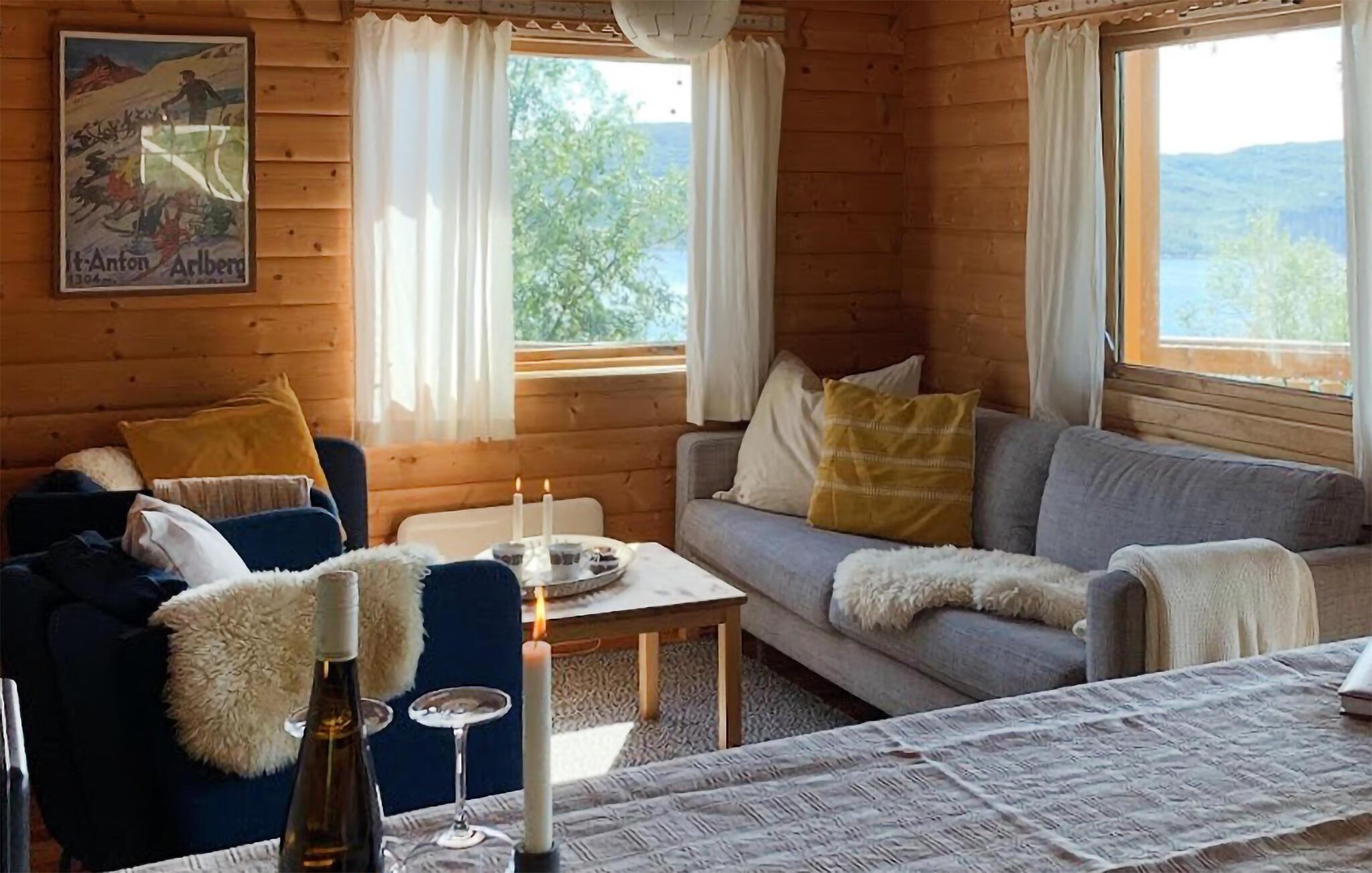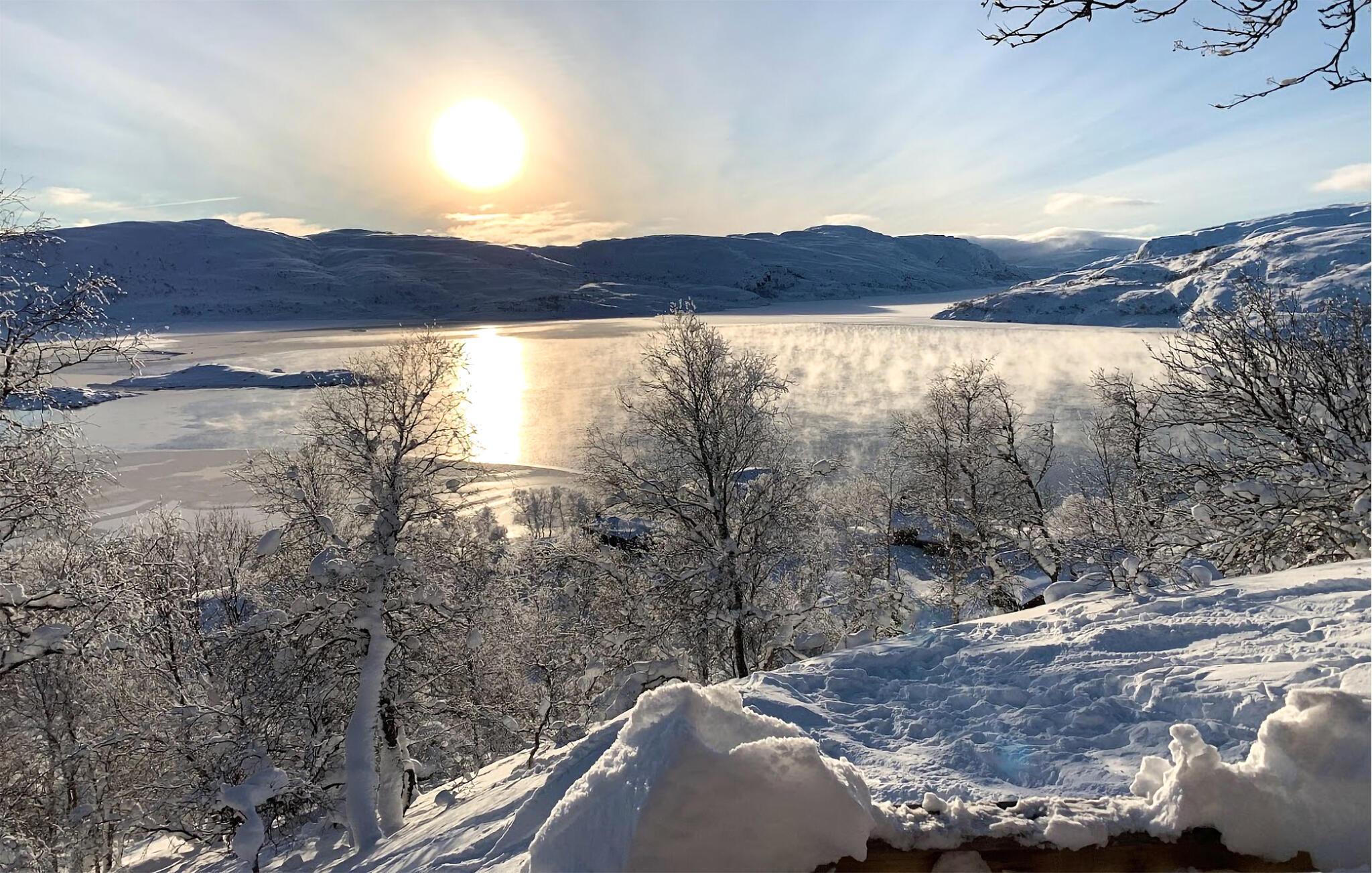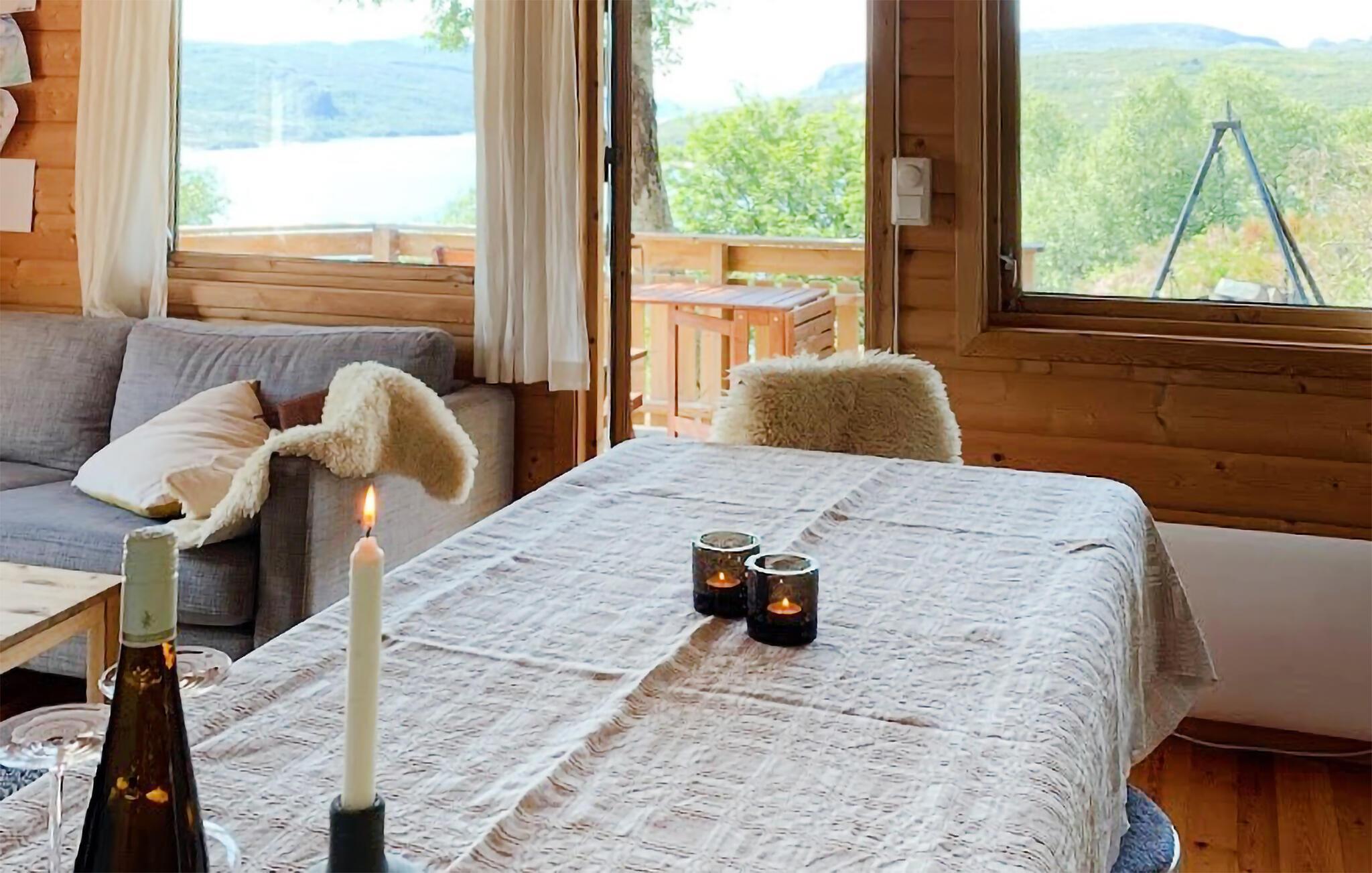 Den rummelige terrasse byder på en betagende udsigt over fjorden og de omkringliggende bjerge. Nyd jeres morgenkaffe i den friske luft, slap af i en liggestol, eller grill over åben ild. Gå direkte fra hytten ud på eventyrlige vandreture i den imponerende natur.
