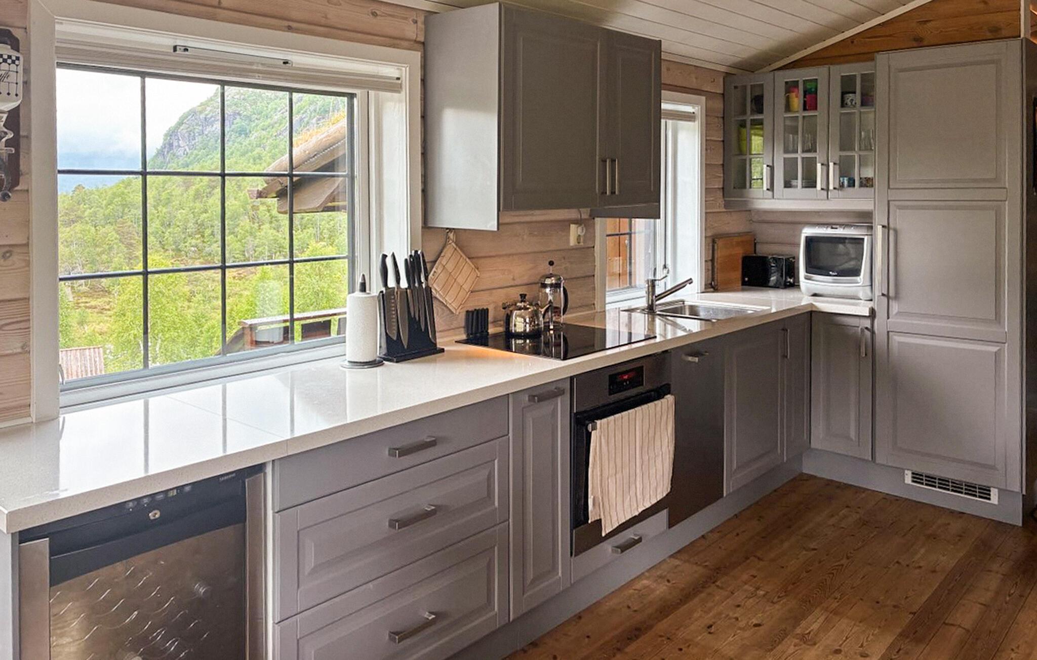 Nyd den imponerende natur omkring Tjørhom med bjerge, søer og fredfyldte vandrestier. I området finder I adskillige fiskepladser og forskellige muligheder for at udforske det uberørte landskab. Besøg den charmerende by Tonstad med dens butikker, caféer og lokale kulturtilbud. Uanset om I foretrækker fred og ro i naturen eller små opdagelser i landsbyen – her kan I designe ferien efter jeres smag.