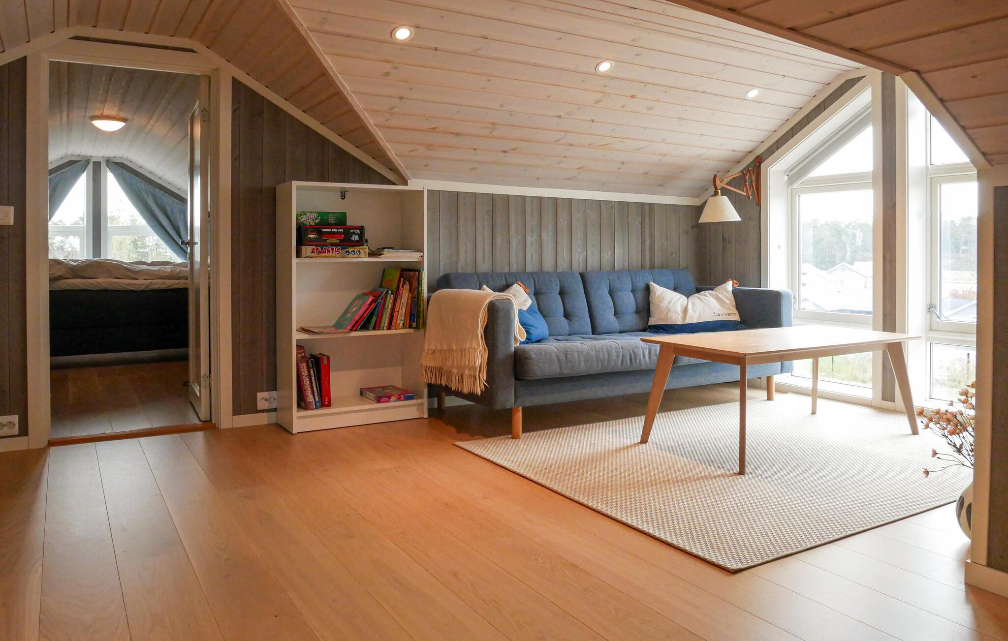 Dette stilfulde feriehus med moderne interiør og naturskønne materialer byder jer velkommen kun nogle få skridt fra havet. Tænd brændeovnen, Slå jer ned i sofaen og nyd udsigten over haven. En trappe fører op til det charmerende læsehjørne. Slå jer ned i sofaen med en god bog i hånden og kig ud af vinduet i det fjerne.