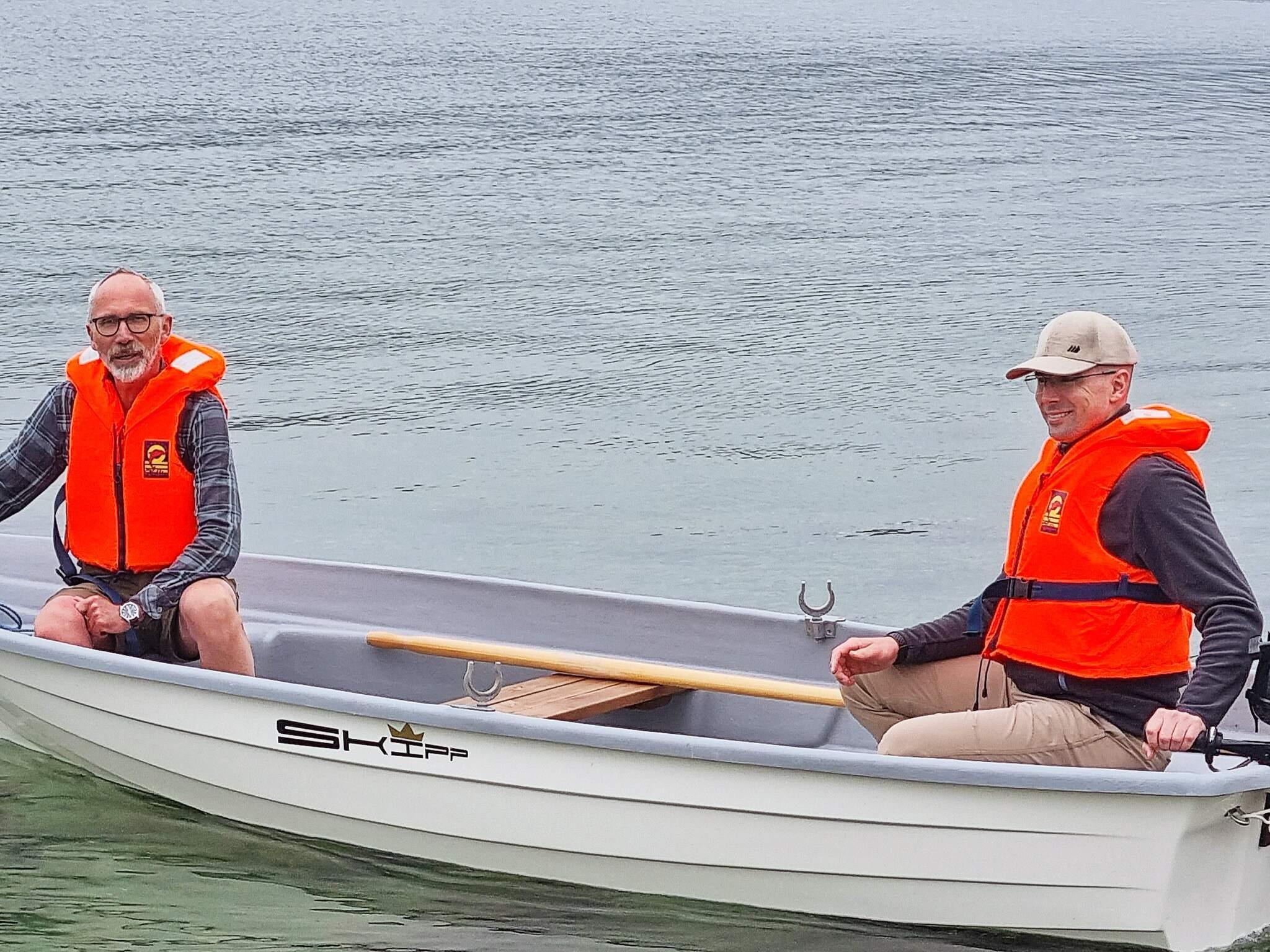 13 fots båt med elektrisk motor ligger fortøyd ved fjorden, 100 m fra huset, og kan leies. På grunn av langgrunn strandlinje, kan båten ikke benyttes ved lavvann. Båten er disponibel 1.5-1.10.