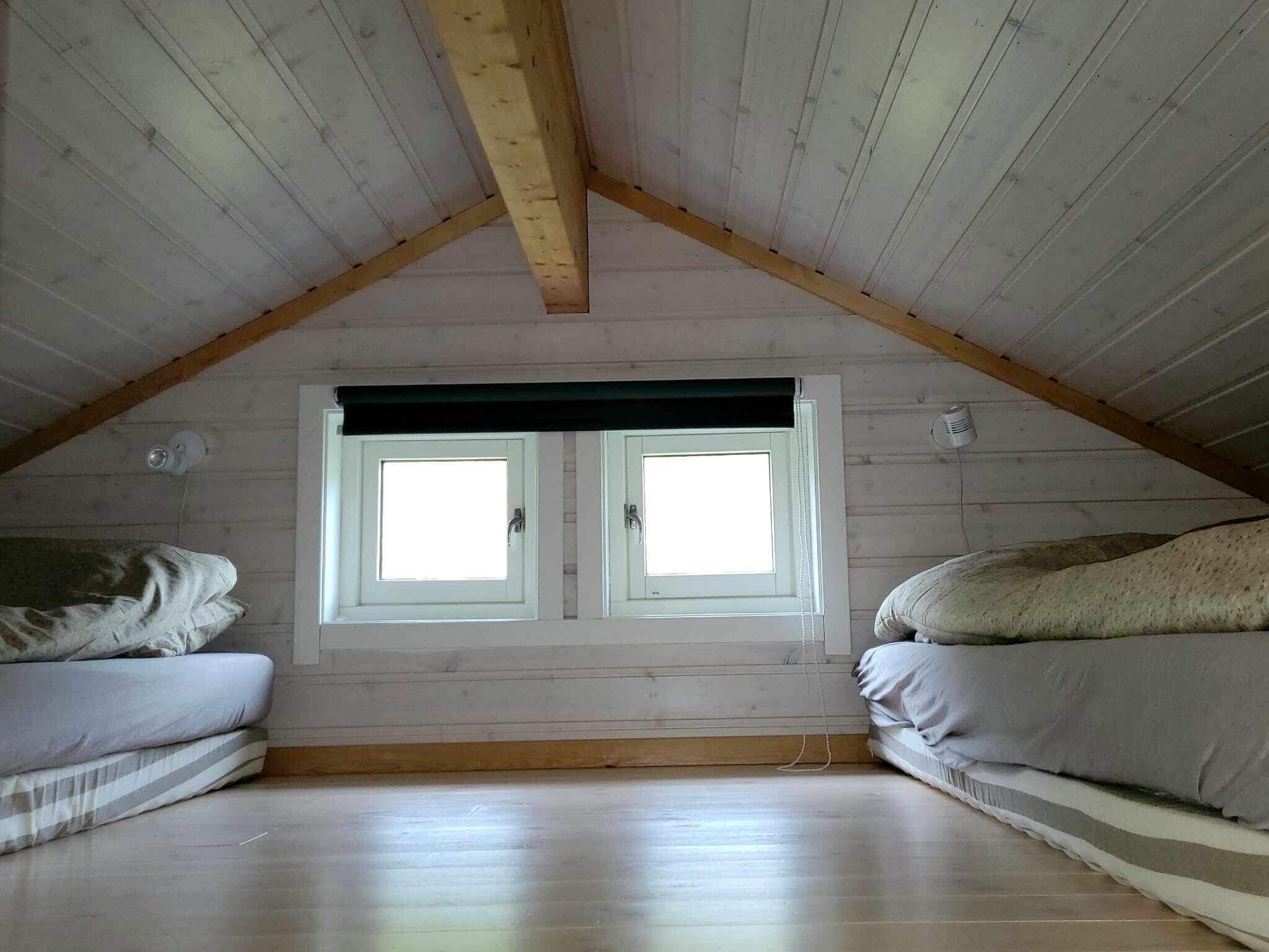 Hytta på 45 kvm er oppført i 2011 og rommer to soverom, stue med åpen kjøkkenløsning samt stor hems tilgjengelig med loftstrapp. Koselig stue med vedovn, Wifi og mulighet til å se TV via chromecast. Soverommene har dobbeltsenger, i tillegg er det soveplasser for to på madrass på hemsen, som har høyde på 1,28 m midt på.