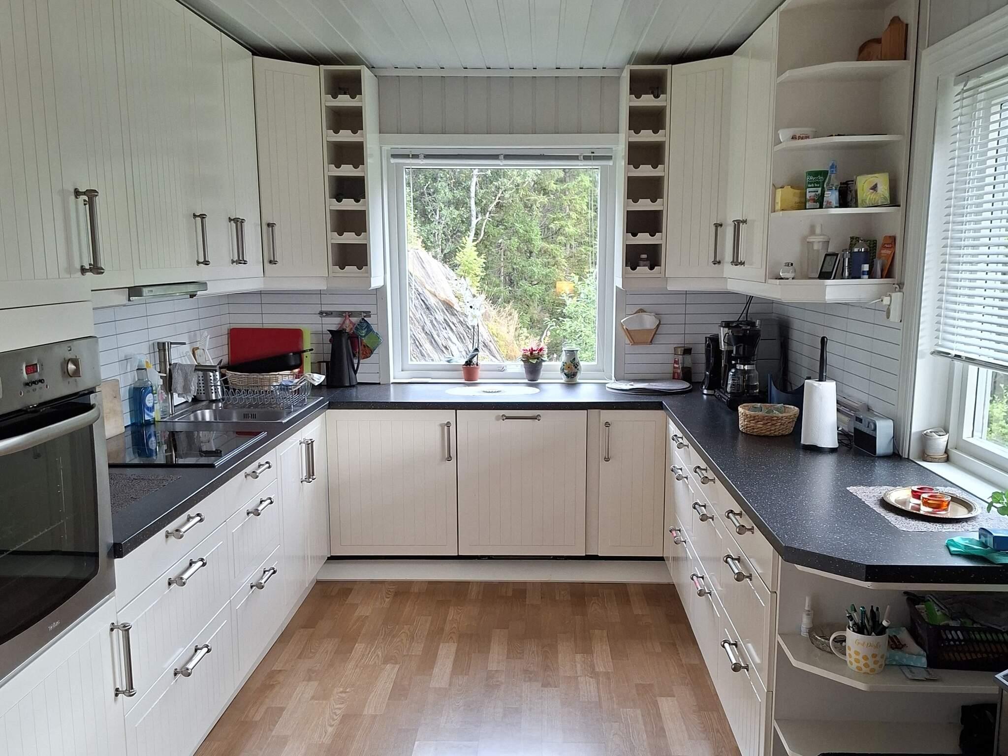 Huset er bygget 1968 og renovert 2025. 2 soverom i underetg. hvor ett har dobbeltseng og ett har 2 enkeltsenger. 2 soveroom i hovedplan hvor ett har har dobbeltseng og ett har en 1,20 m bred seng. Bad med varmekabler i gulv i begge etasjer, det ene med dusj og det andre har badekar. I huset er det 2 varmepumper og vedovn i stue. Gratis internet med god kapasitet og tv med norske og internasjonale kanaler, deriblant tyske. Stor terrasse vendt mot sjøen.